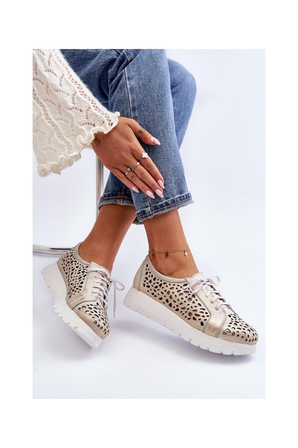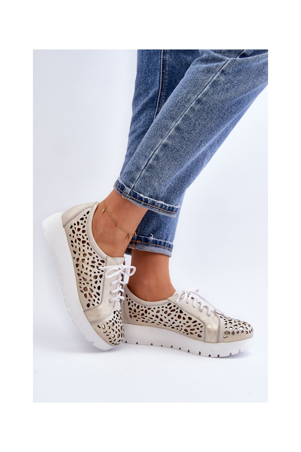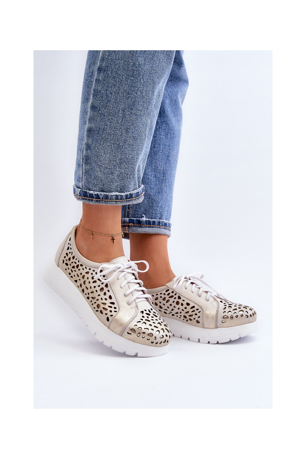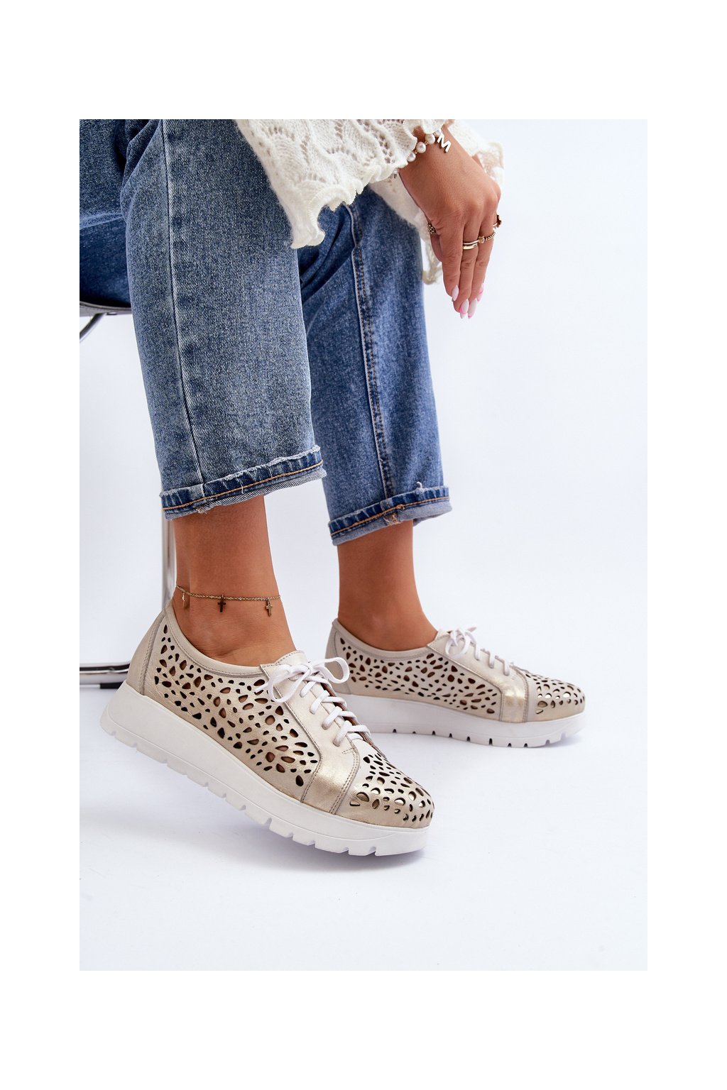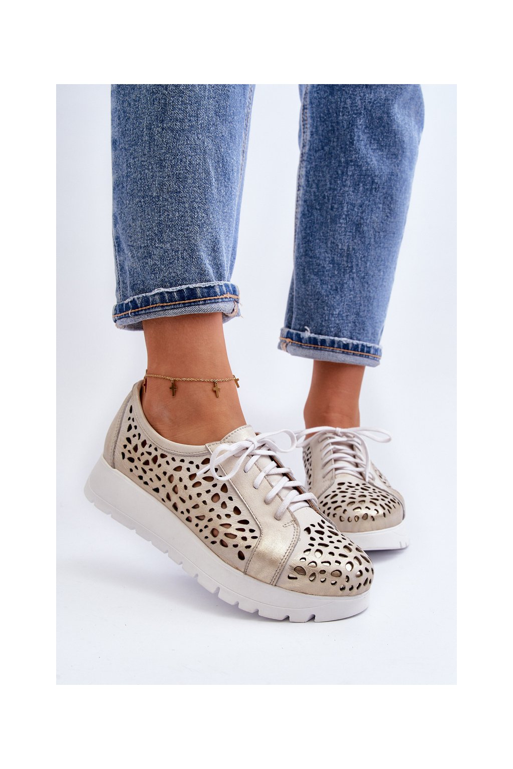 Kožené polobotky na platforme bežové hypnosis / 2821/004