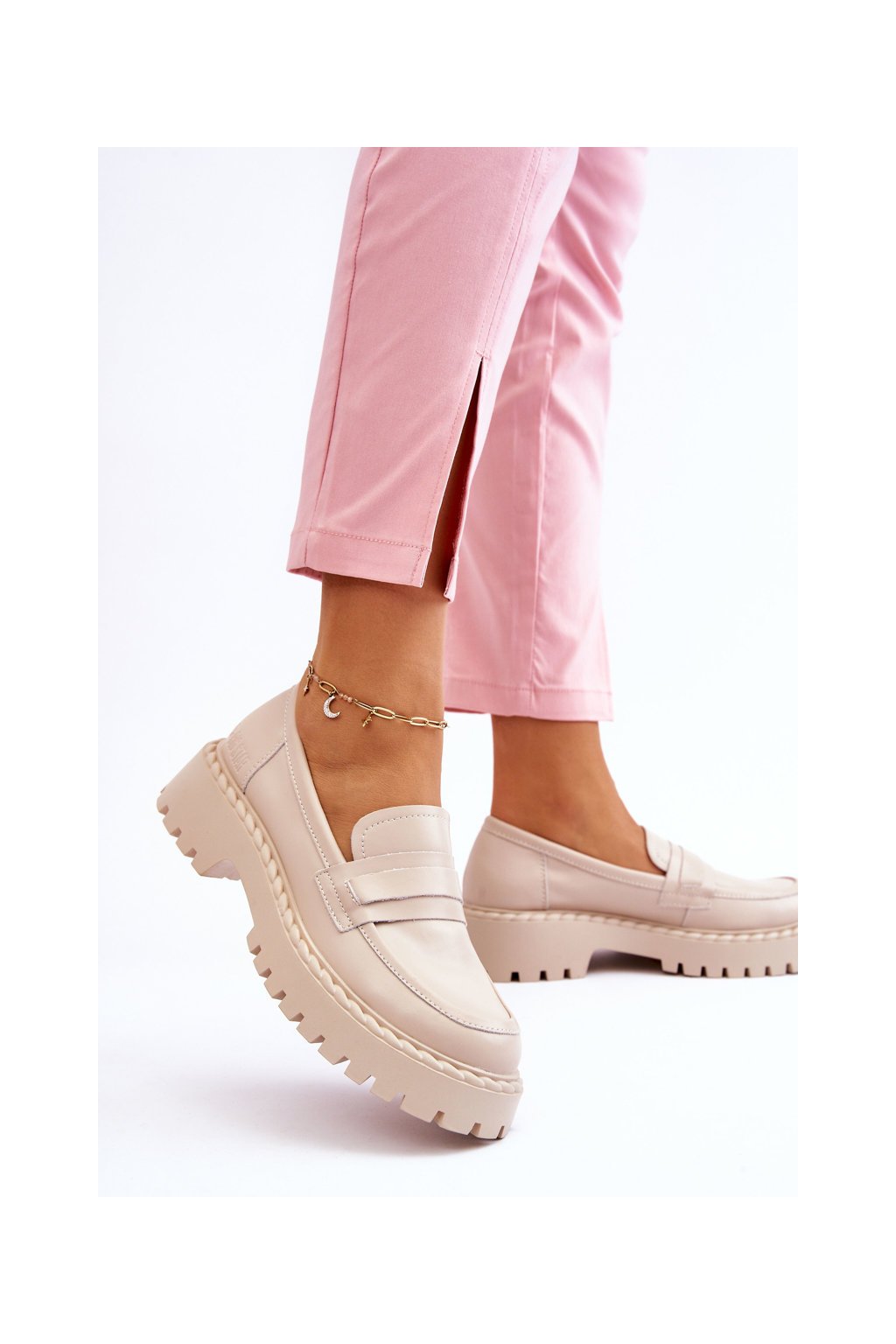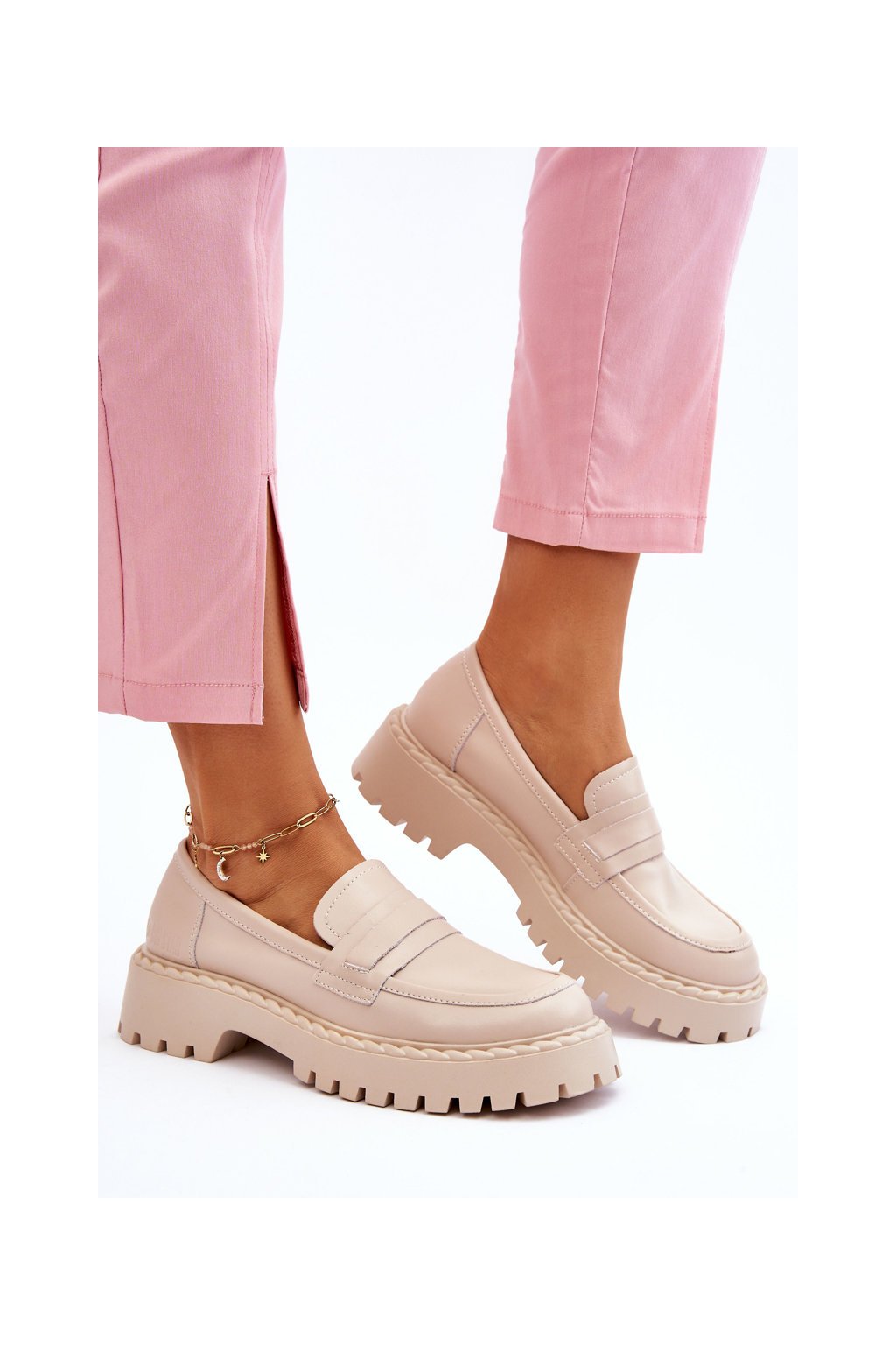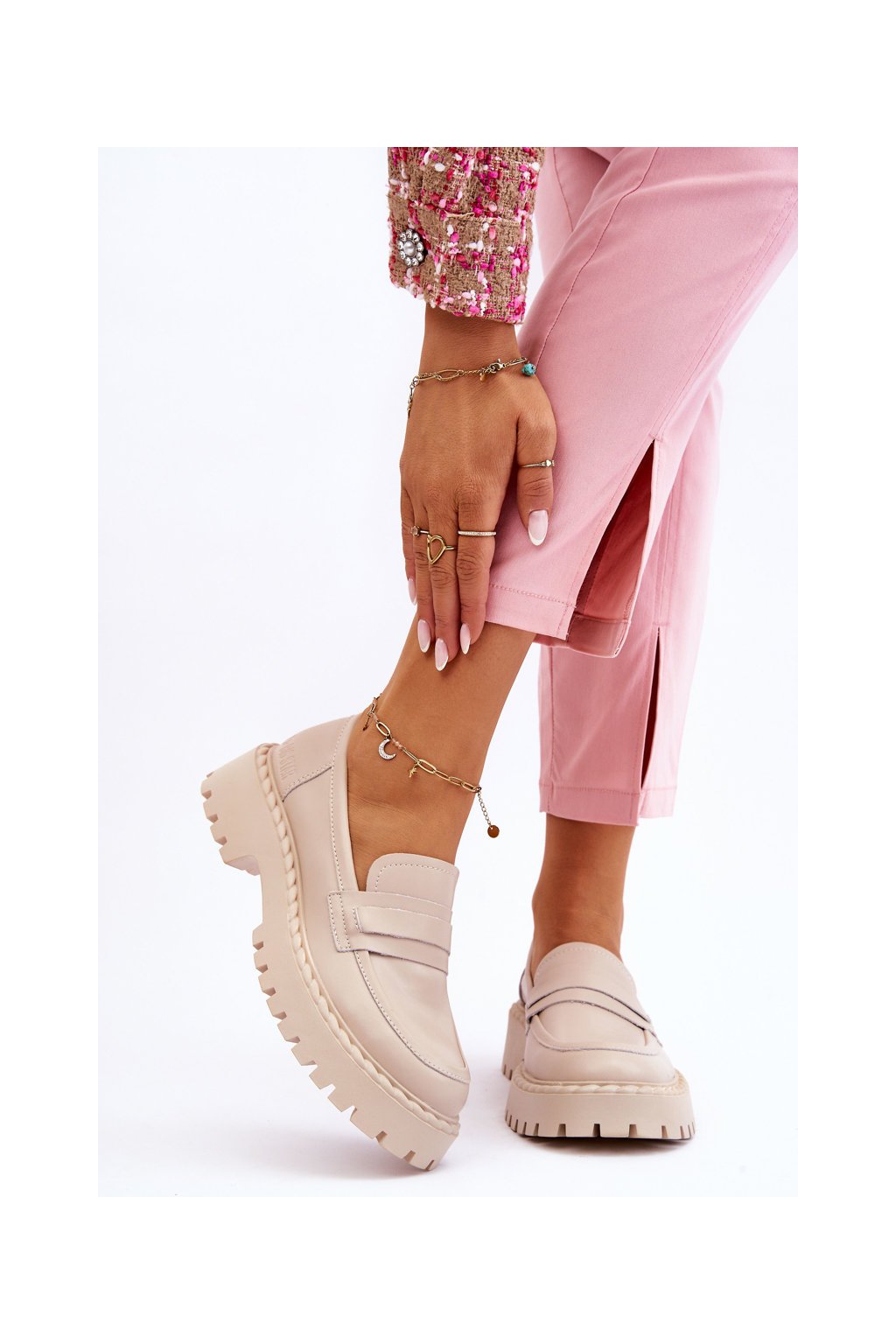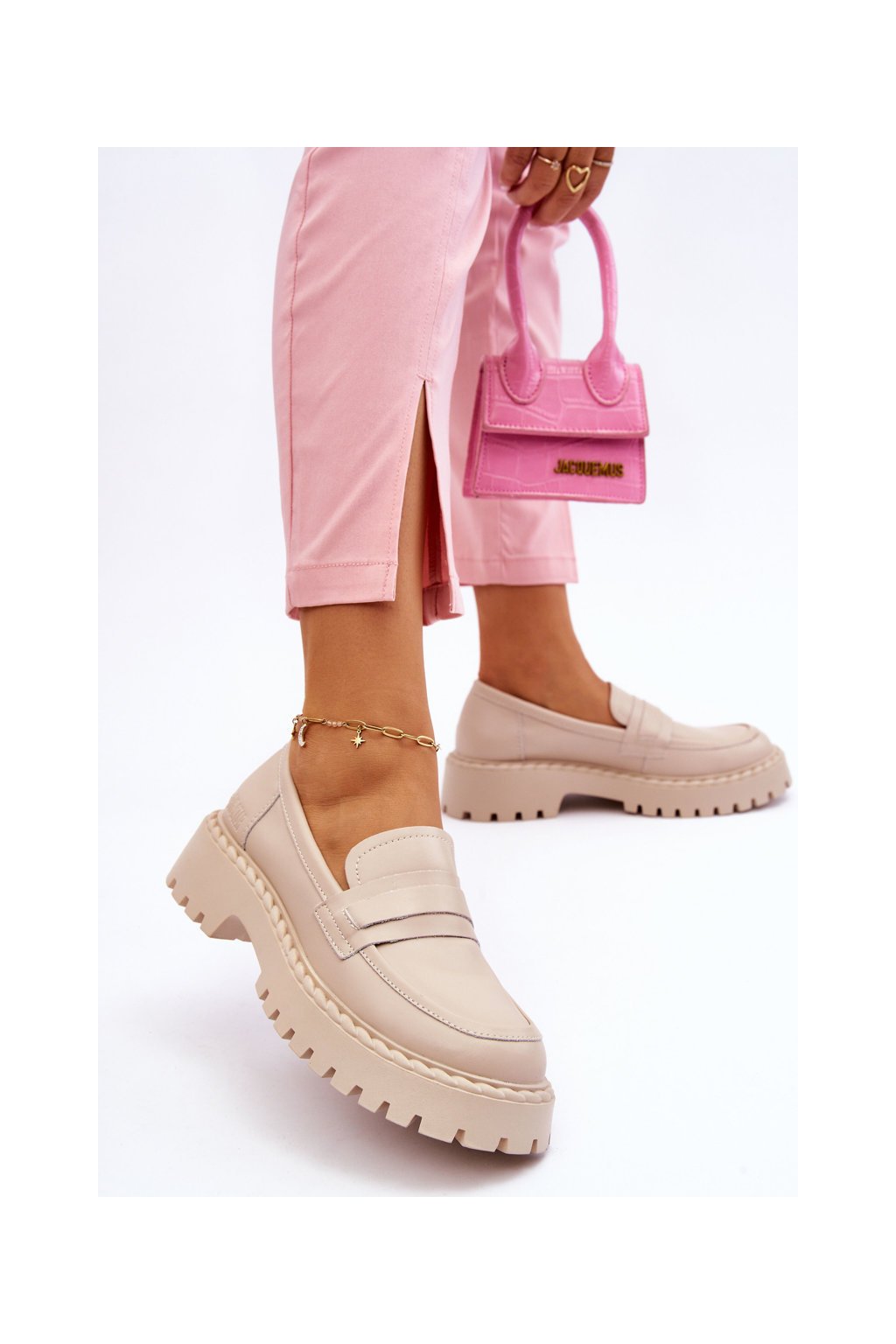 Béžové dámske poltopánky z prírodnej kože na rovnej podrážke LL274457 BEŻ