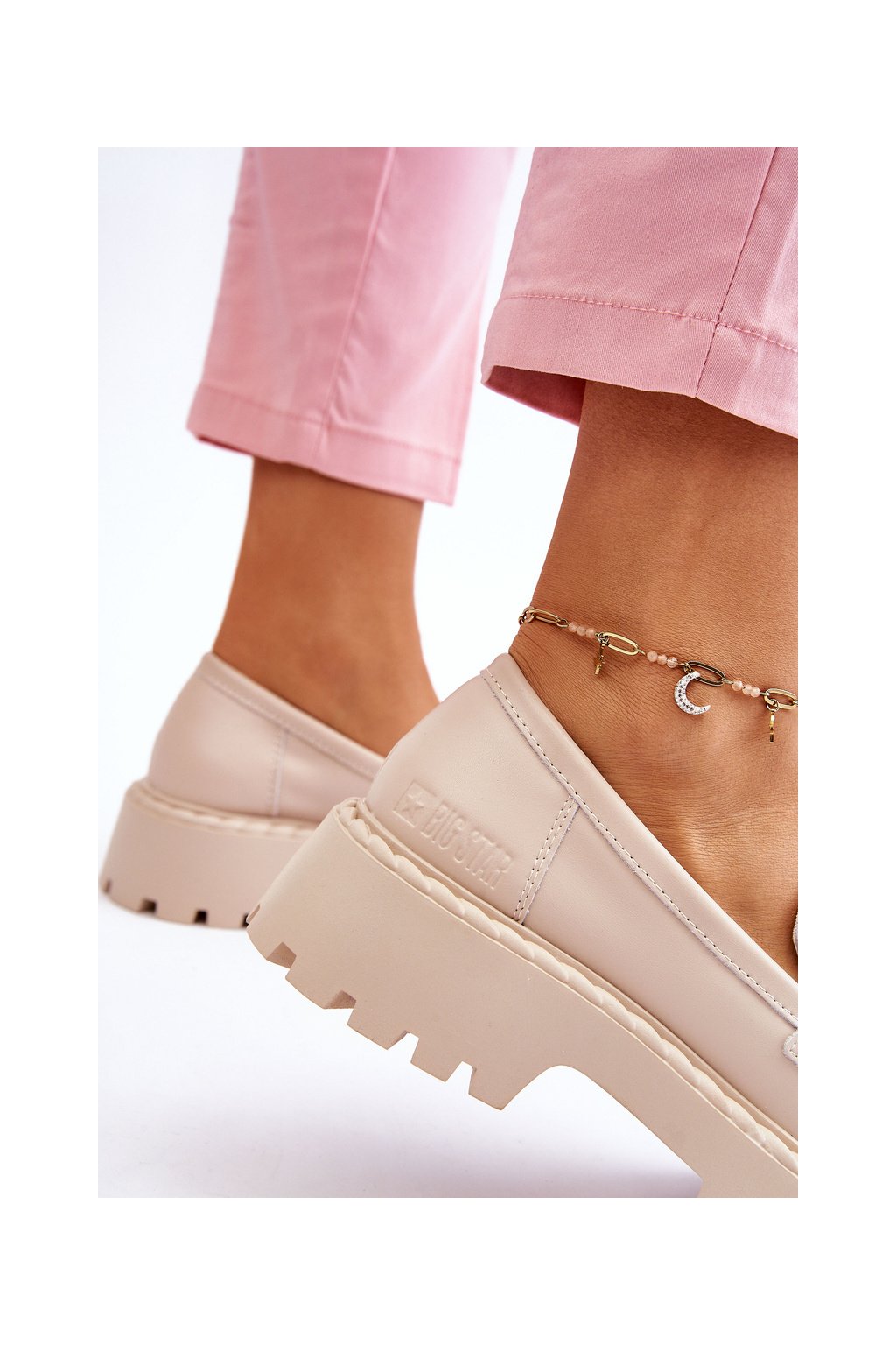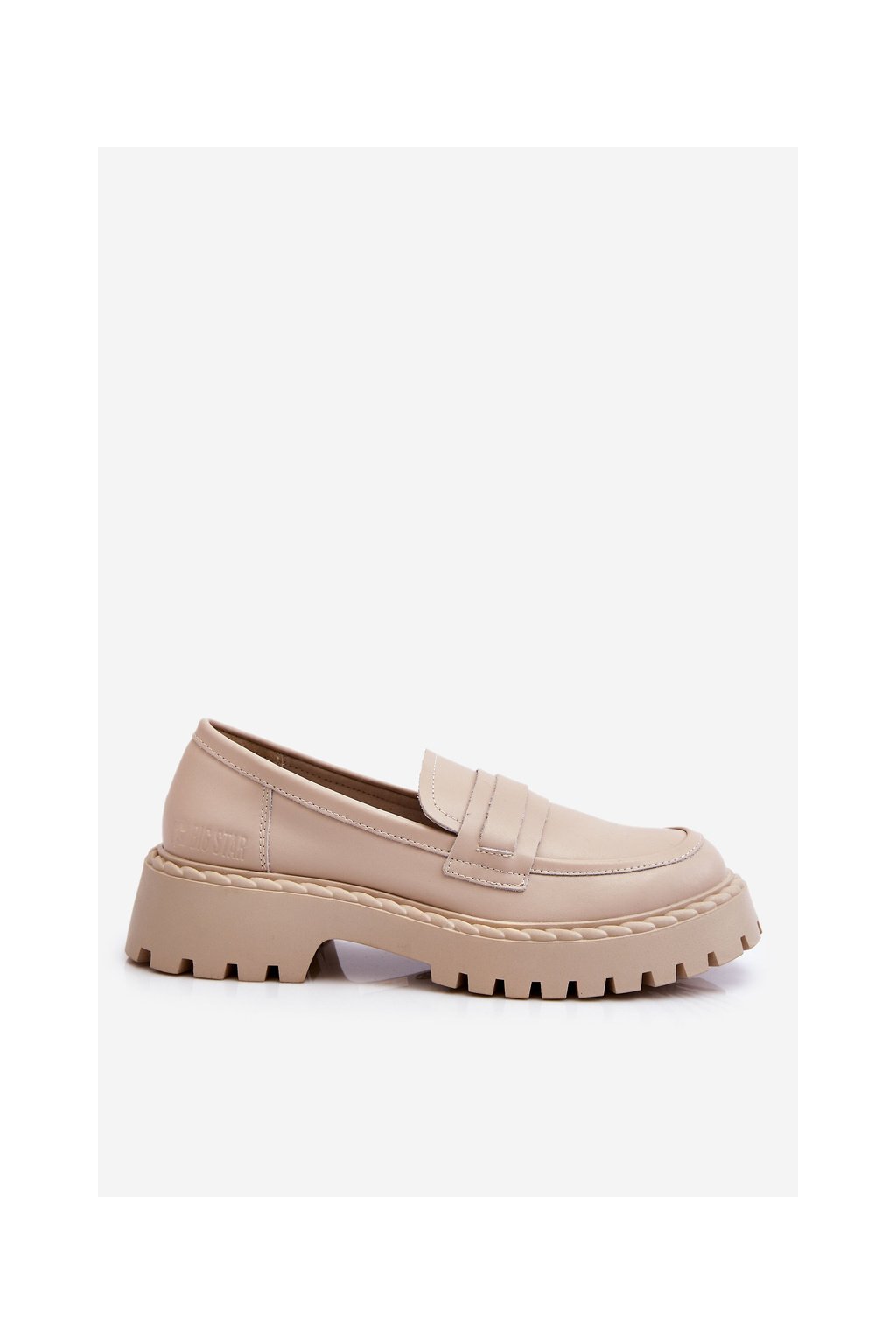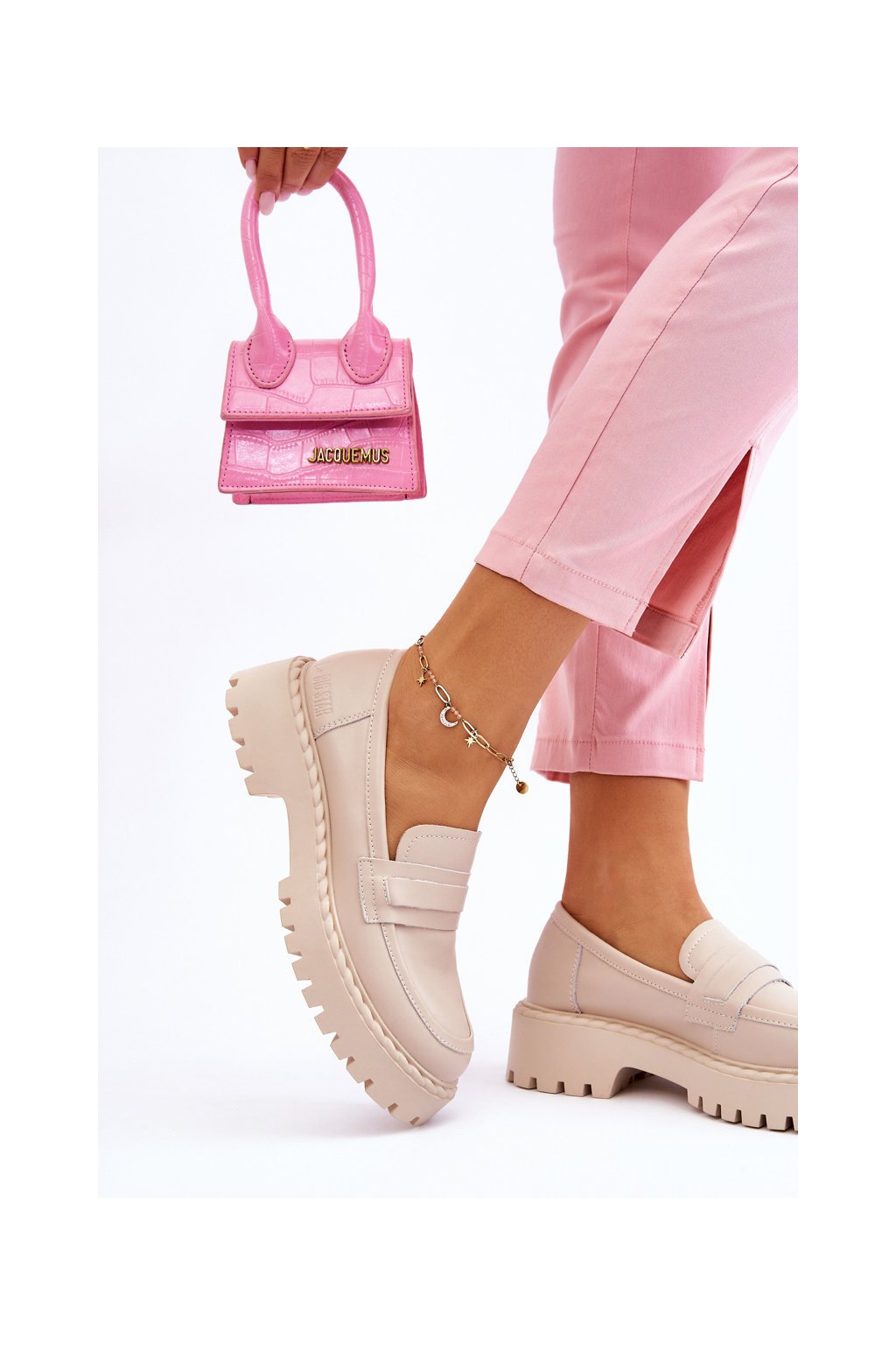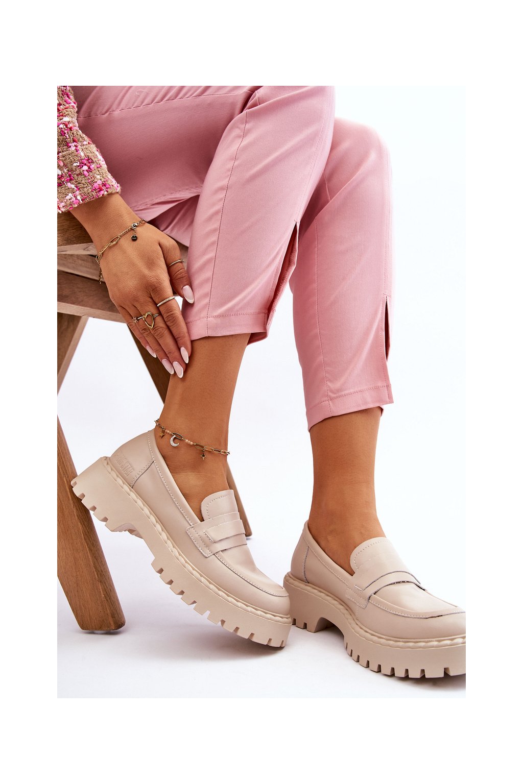 Béžové dámske poltopánky z prírodnej kože na rovnej podrážke LL274457 BEŻ