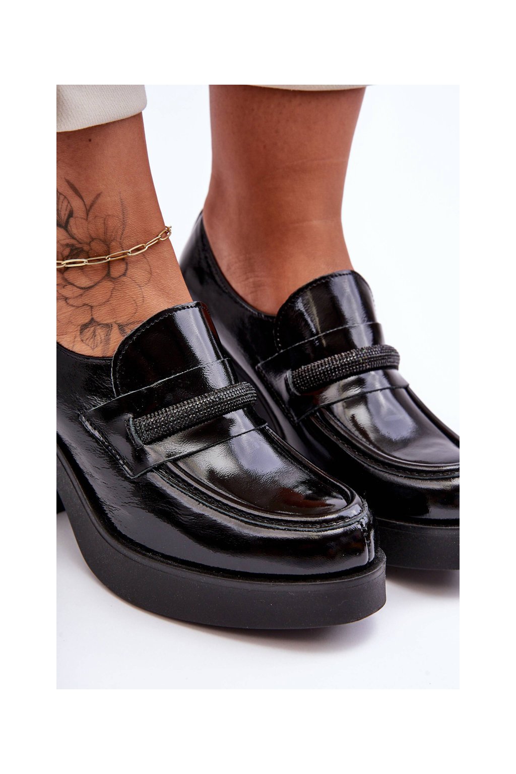 Kožené polobotky na stĺpiku s ozdobou čierne gelanor / 20157 NAPLAK CZARNY