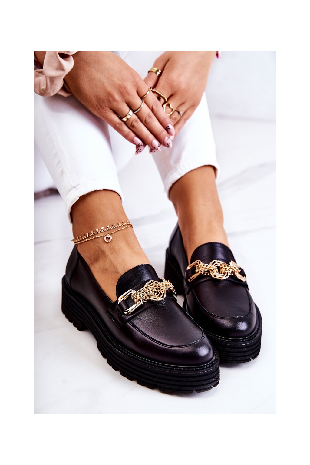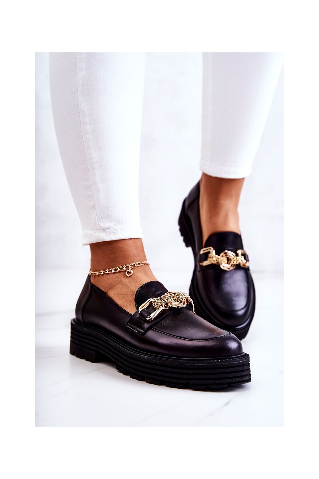 Dámské boty Brogues kožená zlaté dekorace Laura Messi 2383 Černá