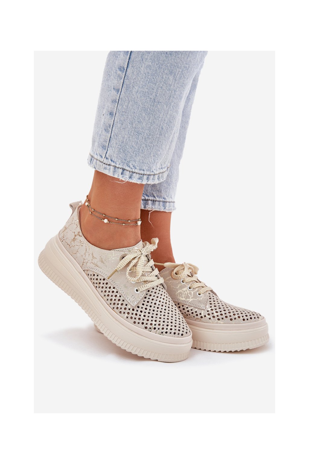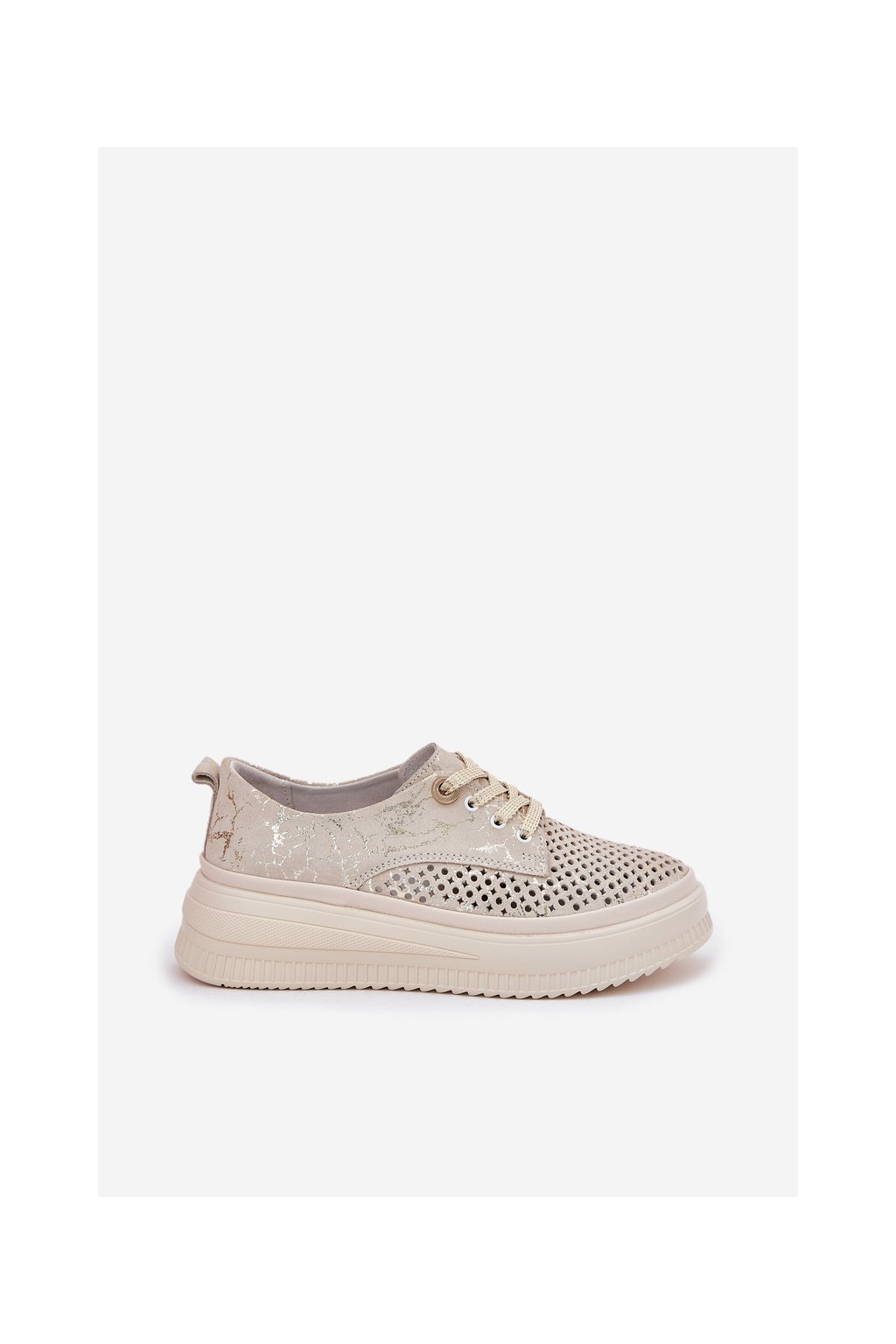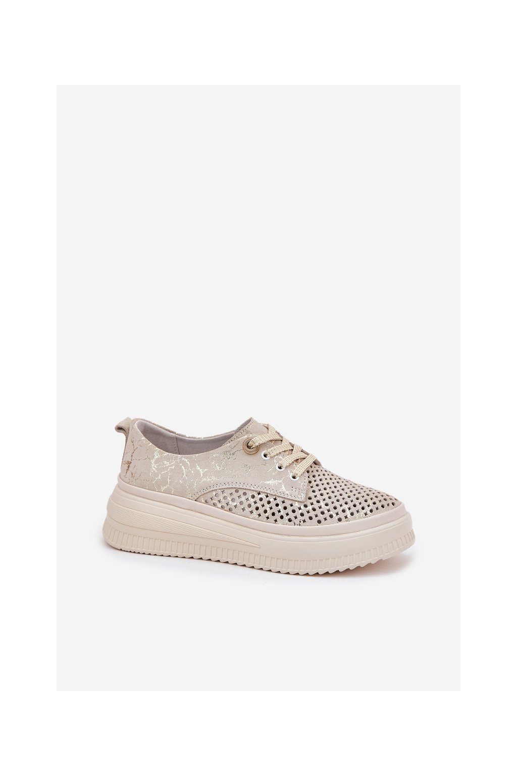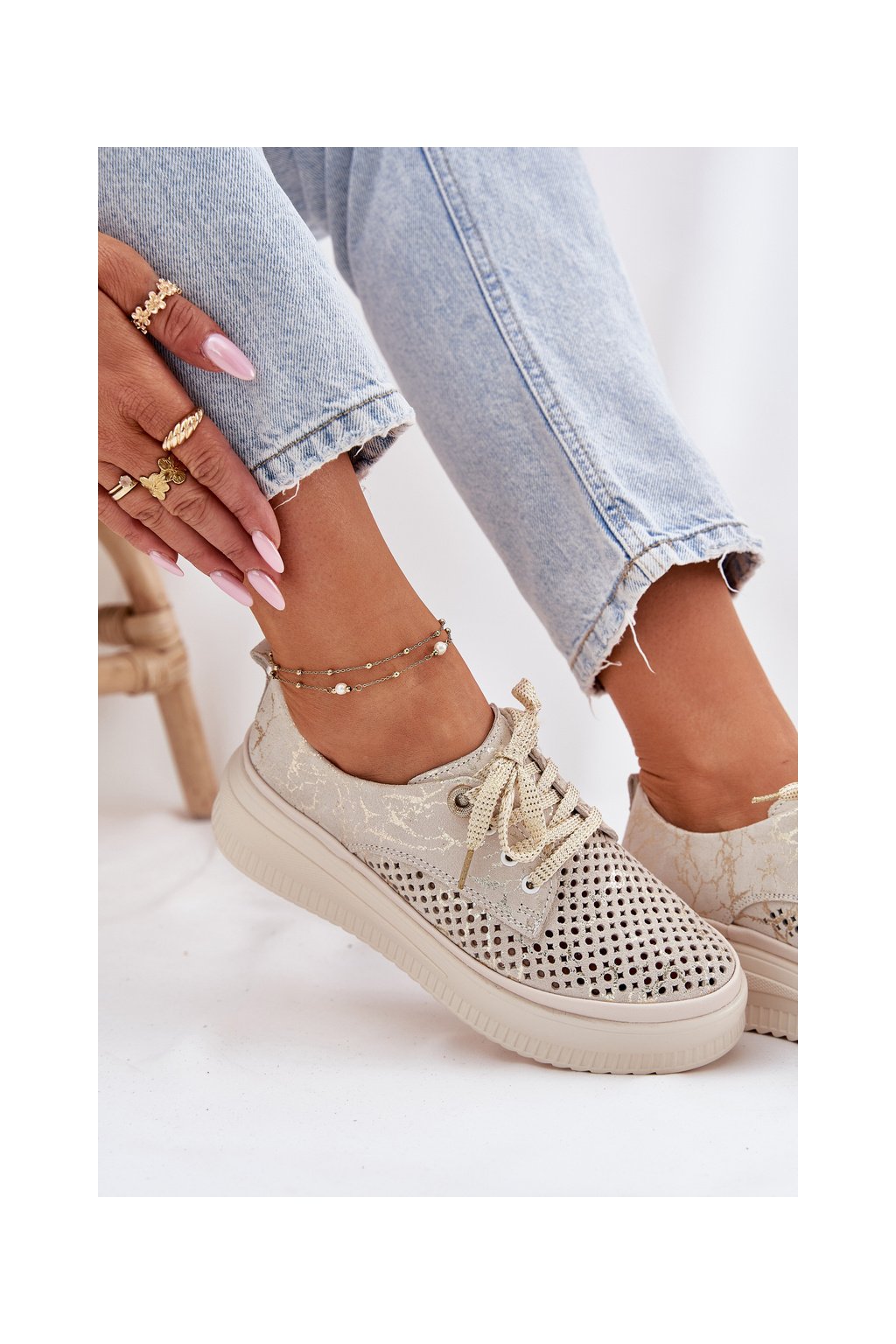 Béžovo-zlaté dámske semišové poltopánky na platforme s rovnou podrážkou, kód produktu 56C2108 BEIGE-GOLD