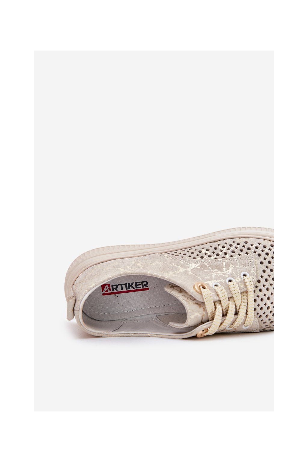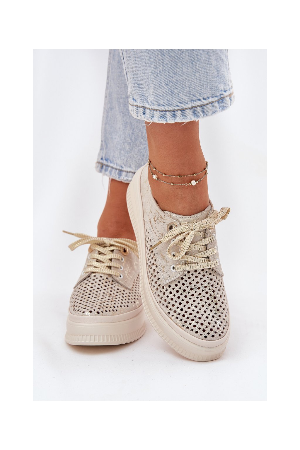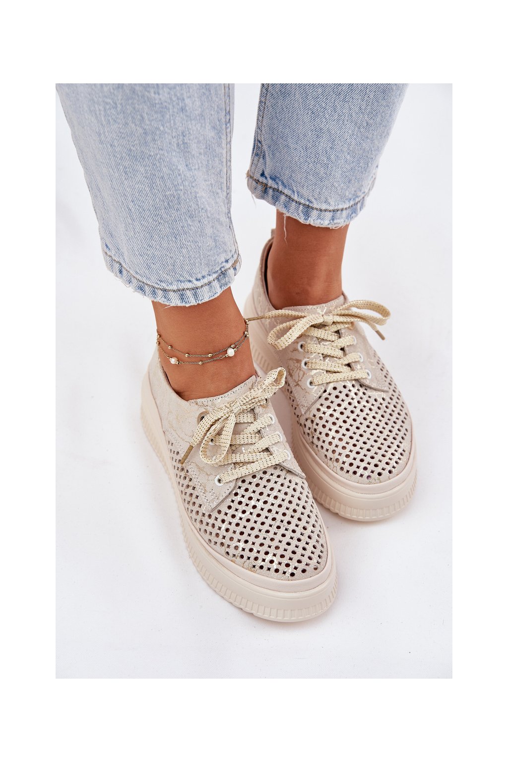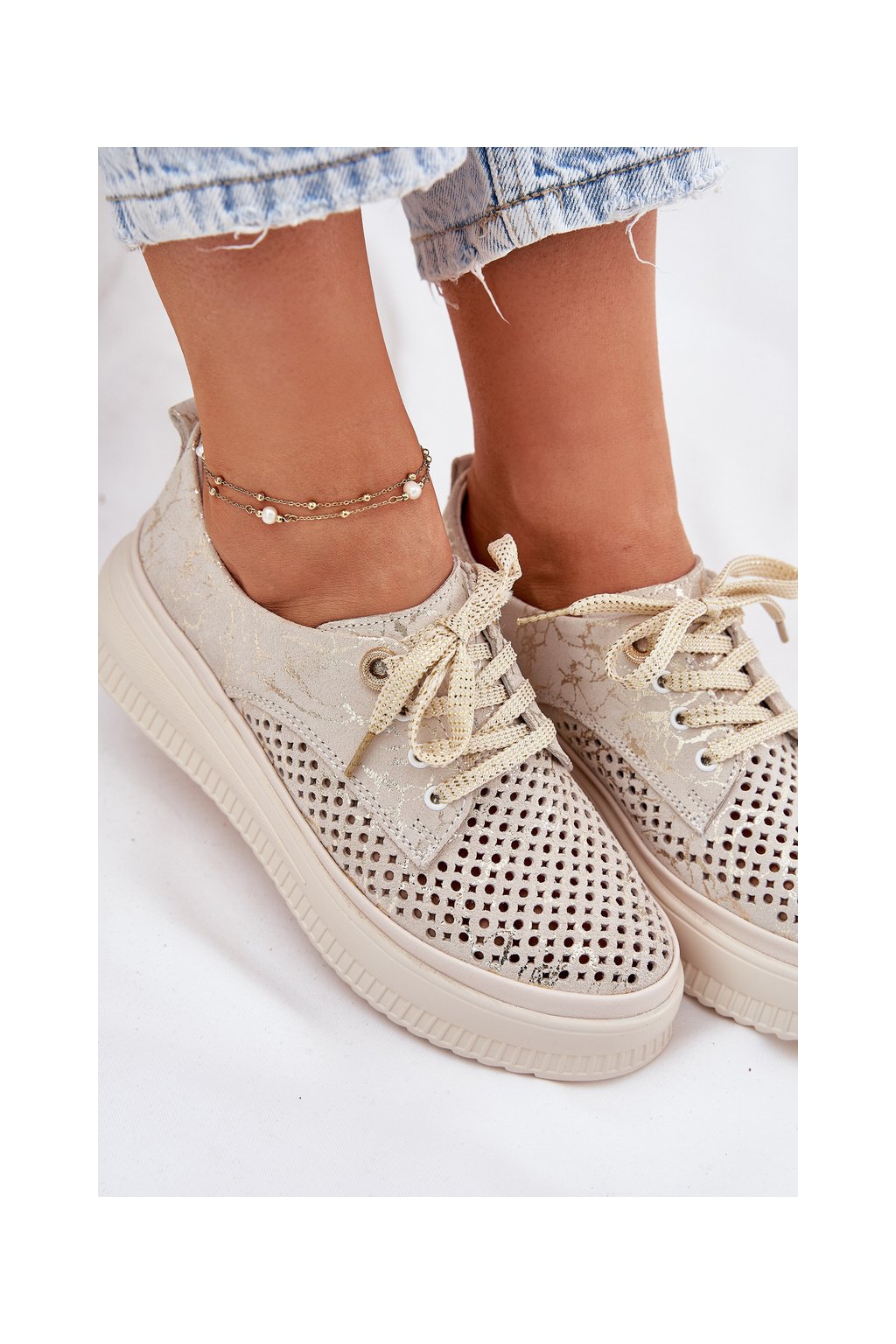 Béžovo-zlaté dámske semišové poltopánky na platforme s rovnou podrážkou, kód produktu 56C2108 BEIGE-GOLD