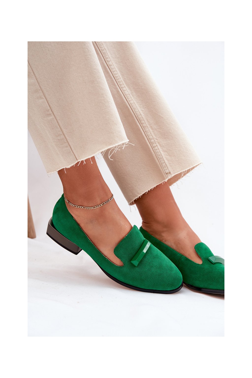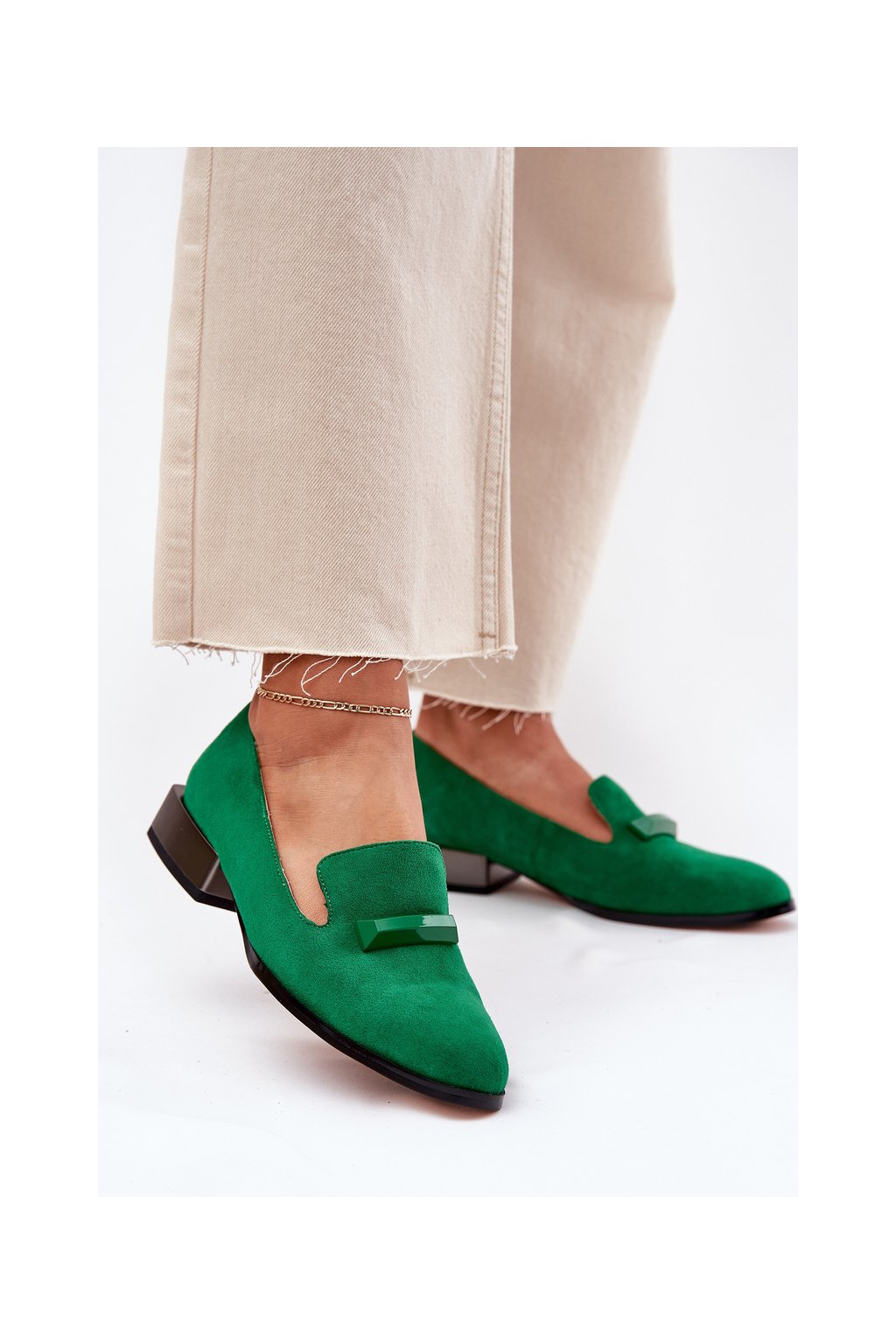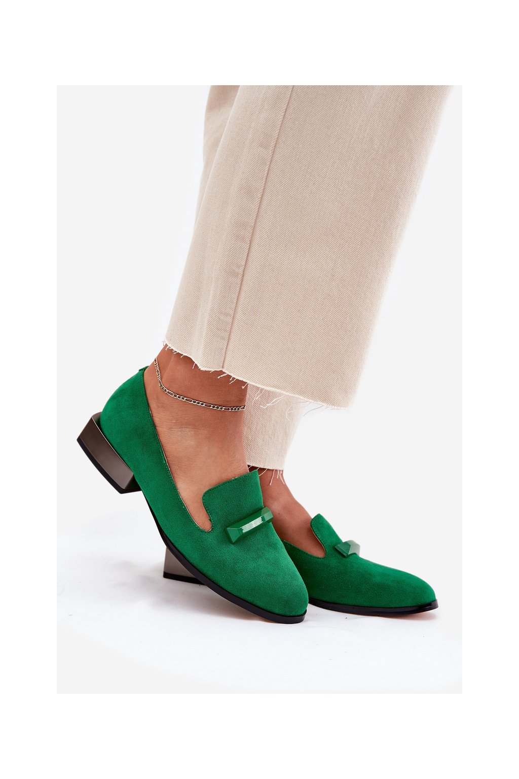 Zelené dámske semišové mokasíny s ozdobou, kód produktu LZ51-505 GREEN