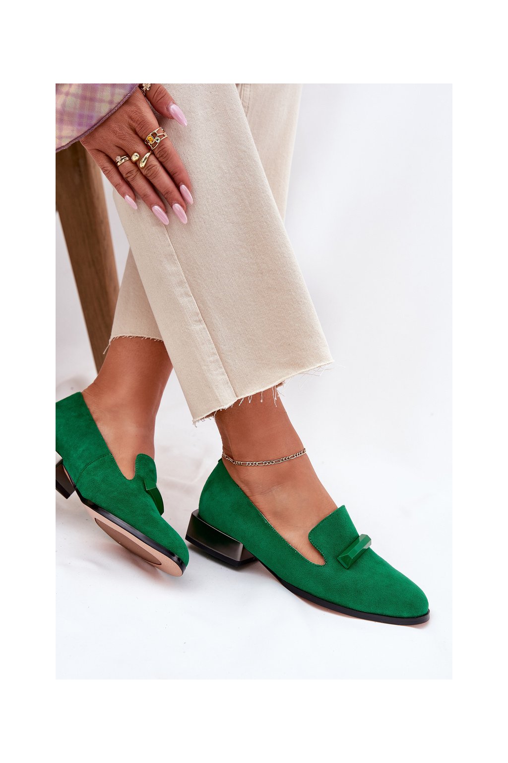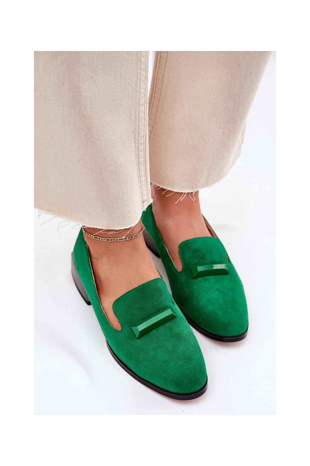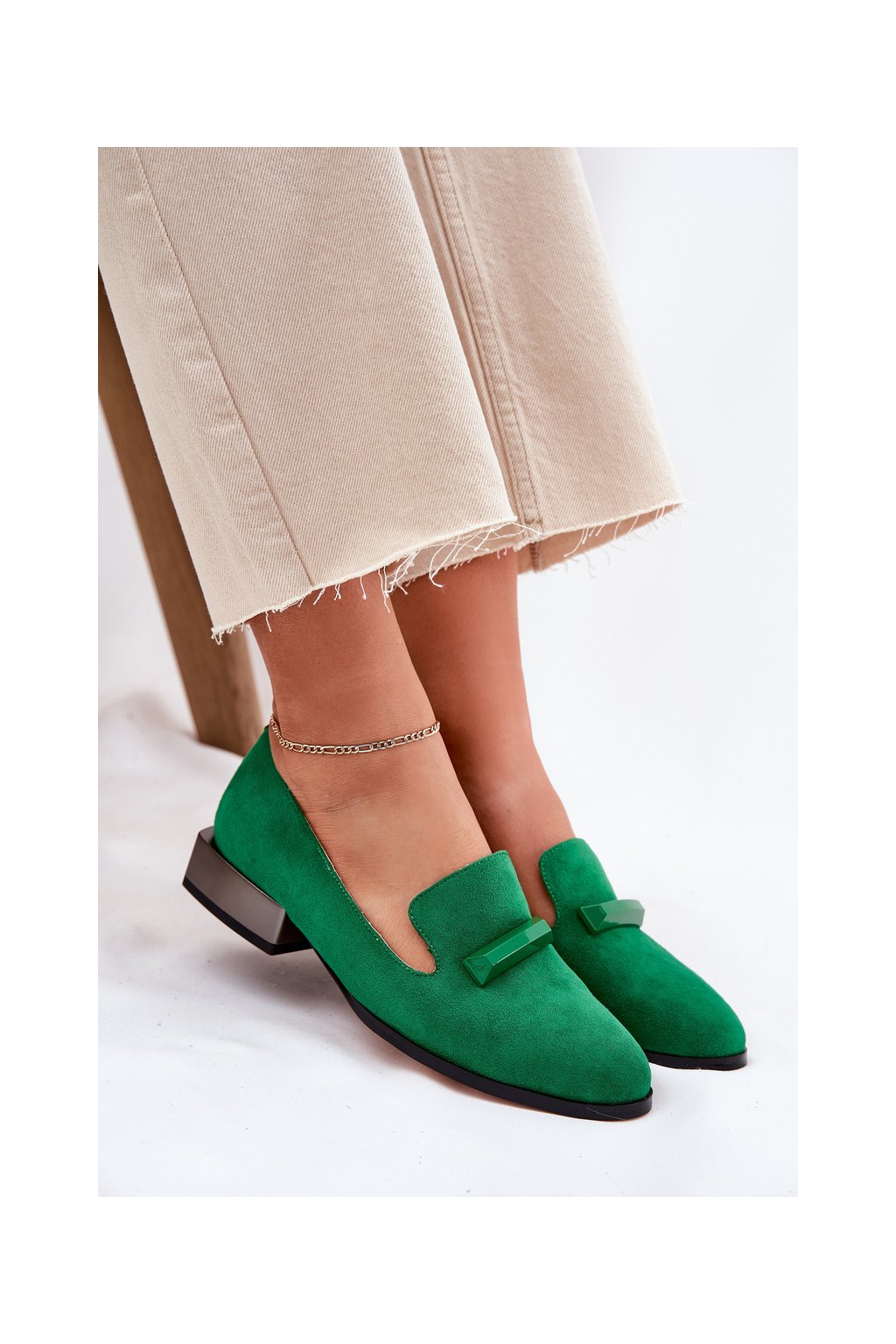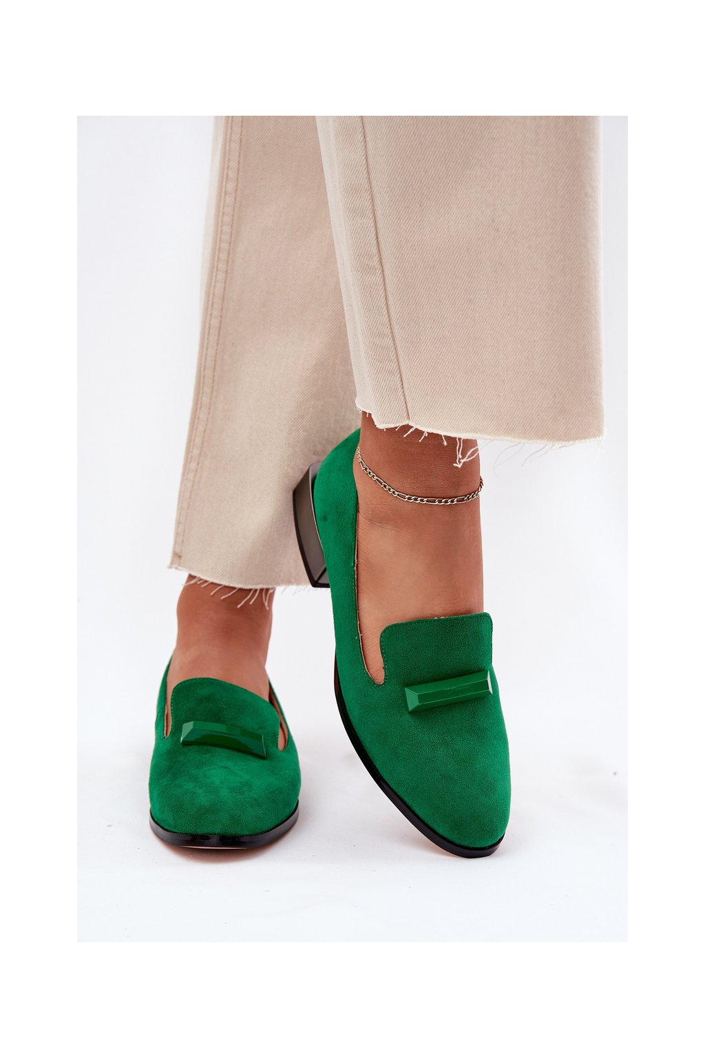 Zelené dámske semišové mokasíny s ozdobou, kód produktu LZ51-505 GREEN