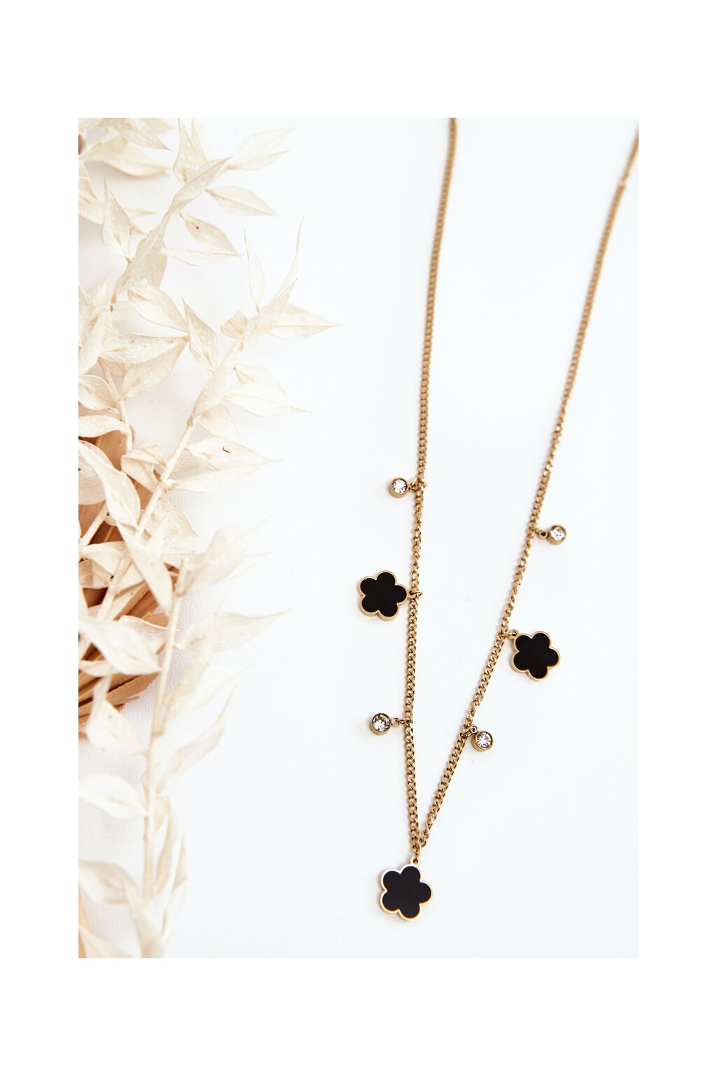 Dámske brnení řetízek s černými kvety zlato / ŁAŃ/GLD/BL/2266052