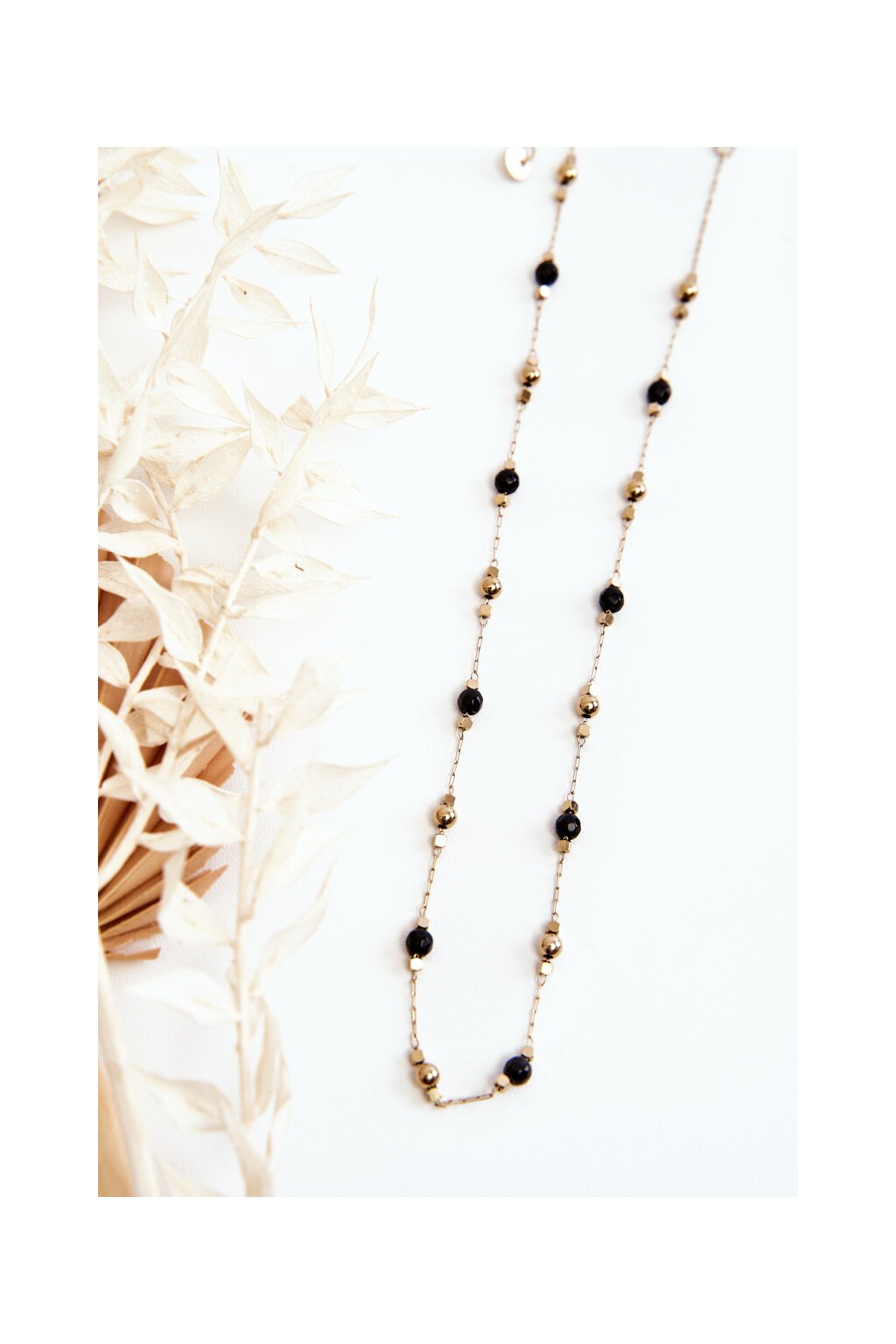 Dámský náhrdelník s korálky čierne zlata / ŁAŃ/GLD/BLK/JK0188