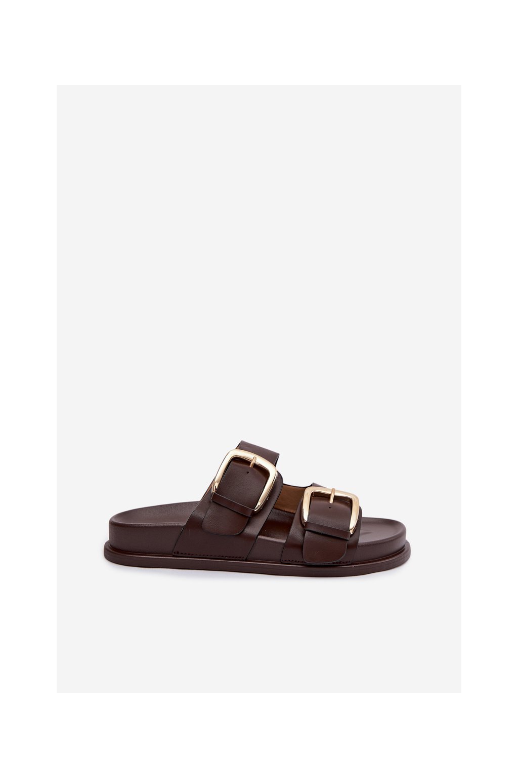Dámske ekologické kožené papuče so zlatými sponami čokoládovo hnedé tervessa / DM513 BROWN (Veľkosť 36)