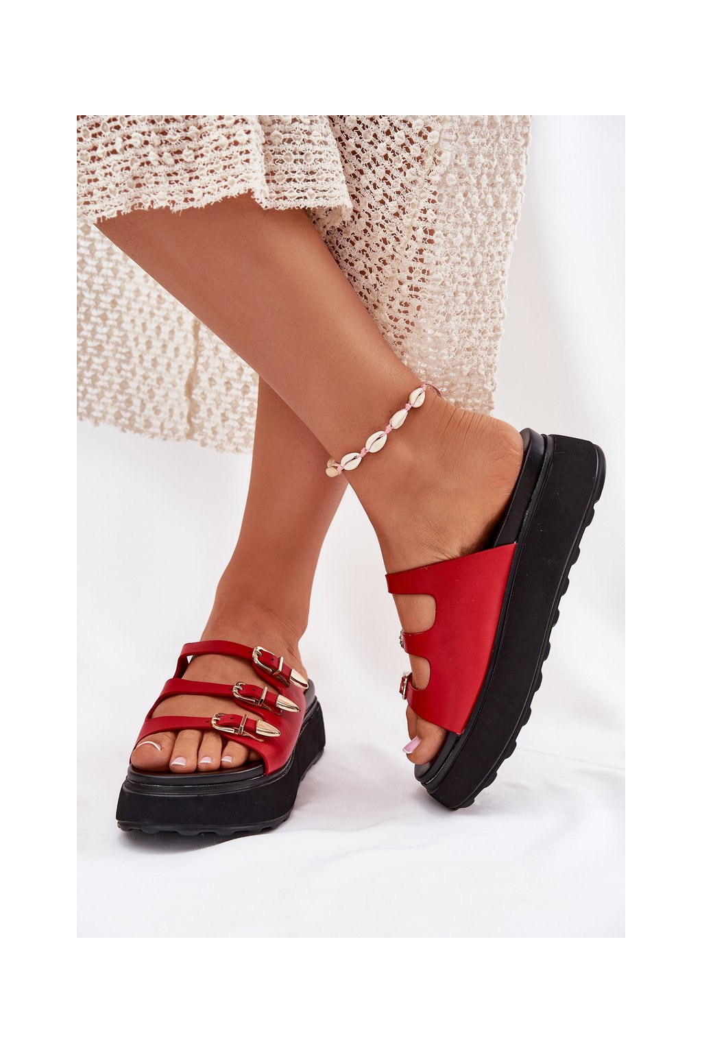 Dámské Klapky Na Platformě S Pásky Červené Nimiotte