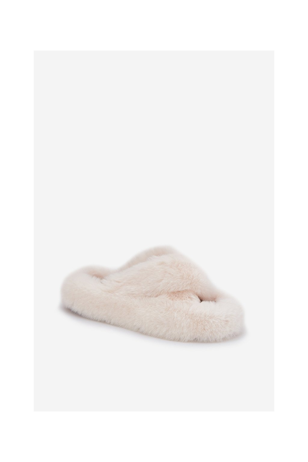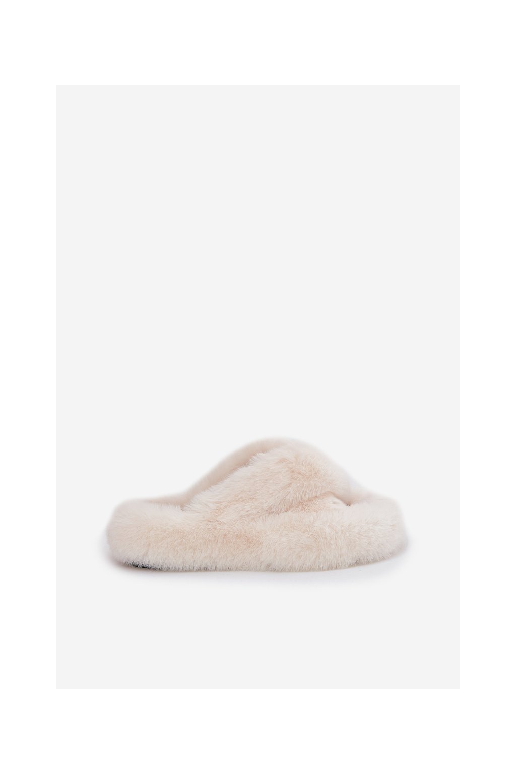 Dámske béžové papuče s hrubou podrážkou, zateplené, kožušina, WSL-188 BEIGE