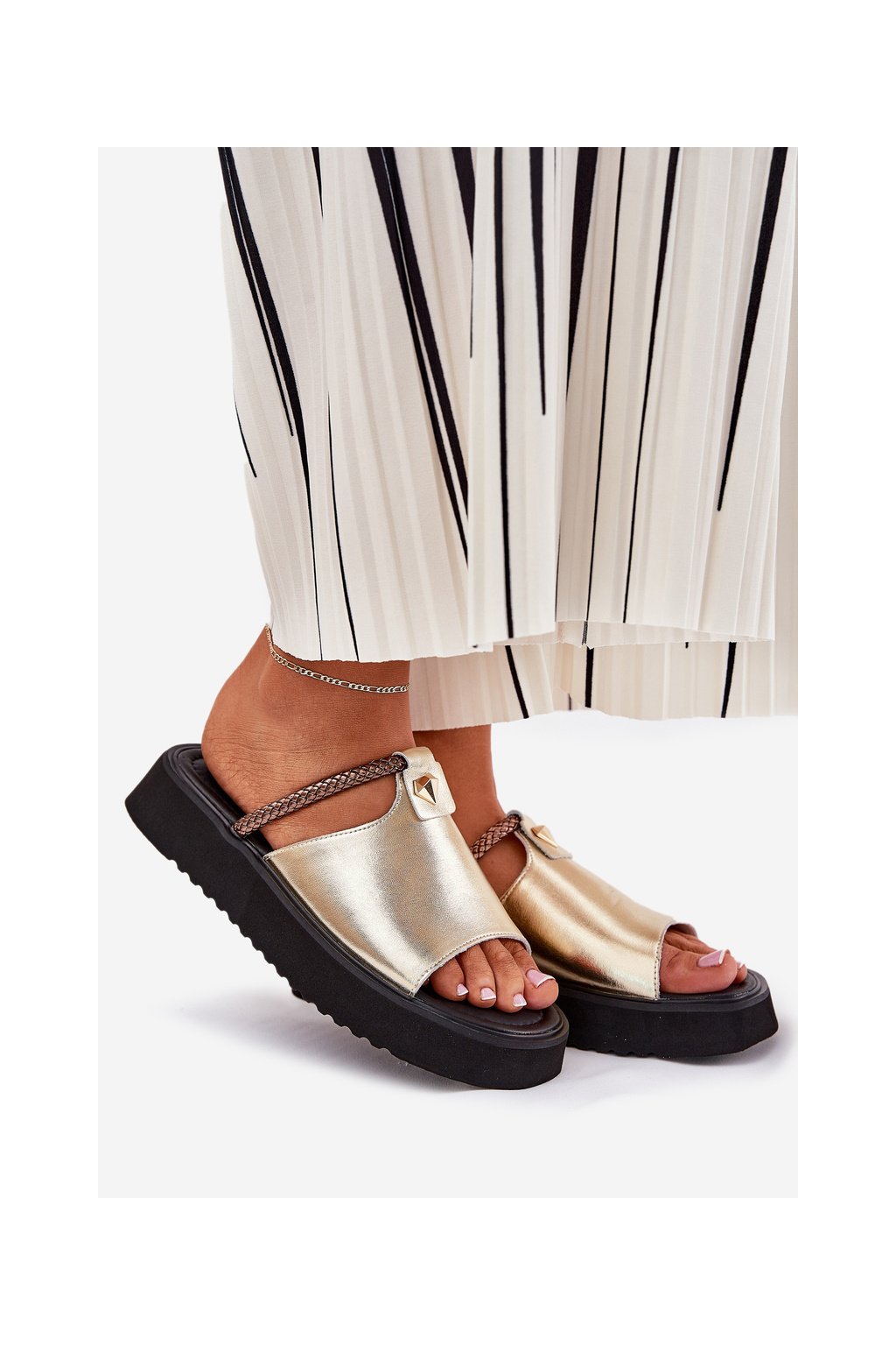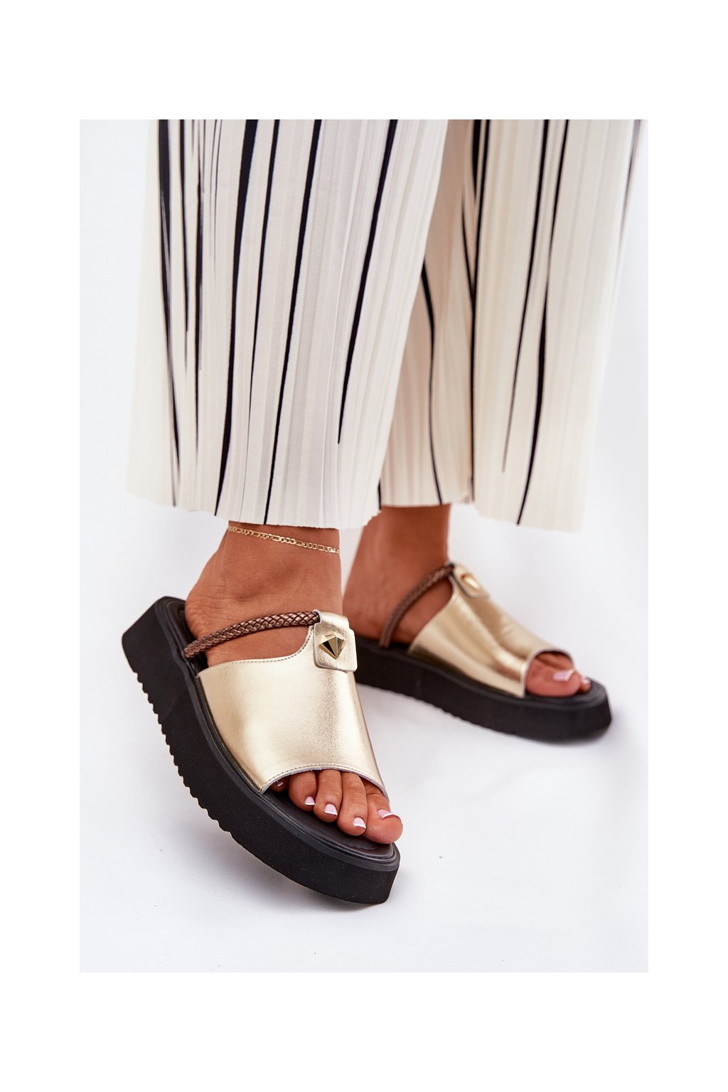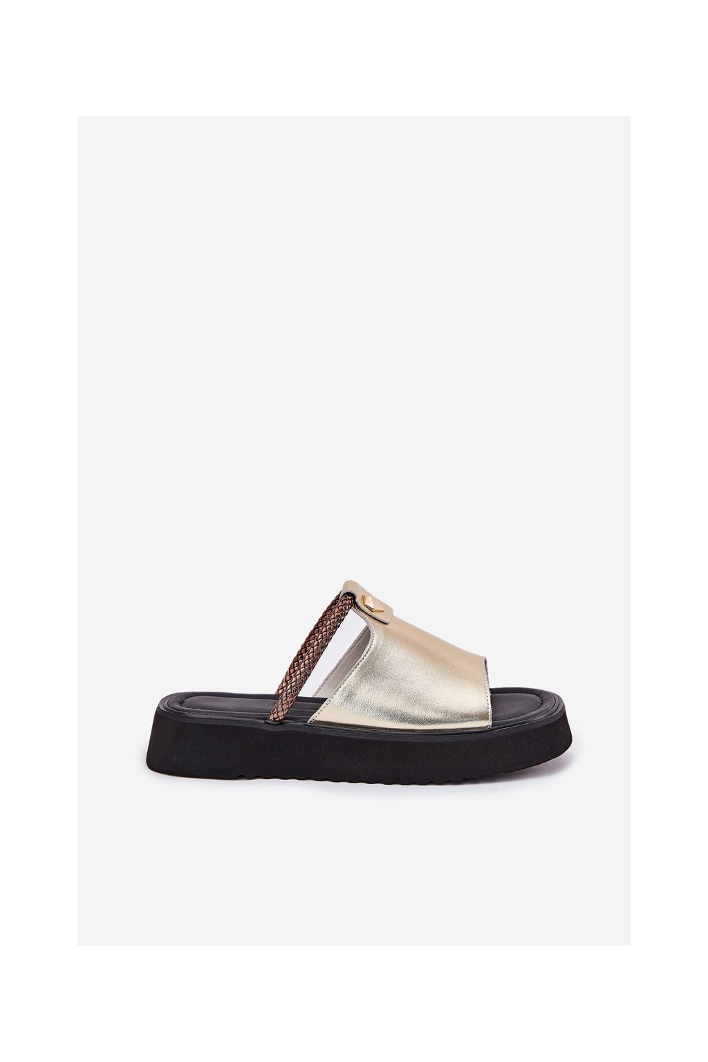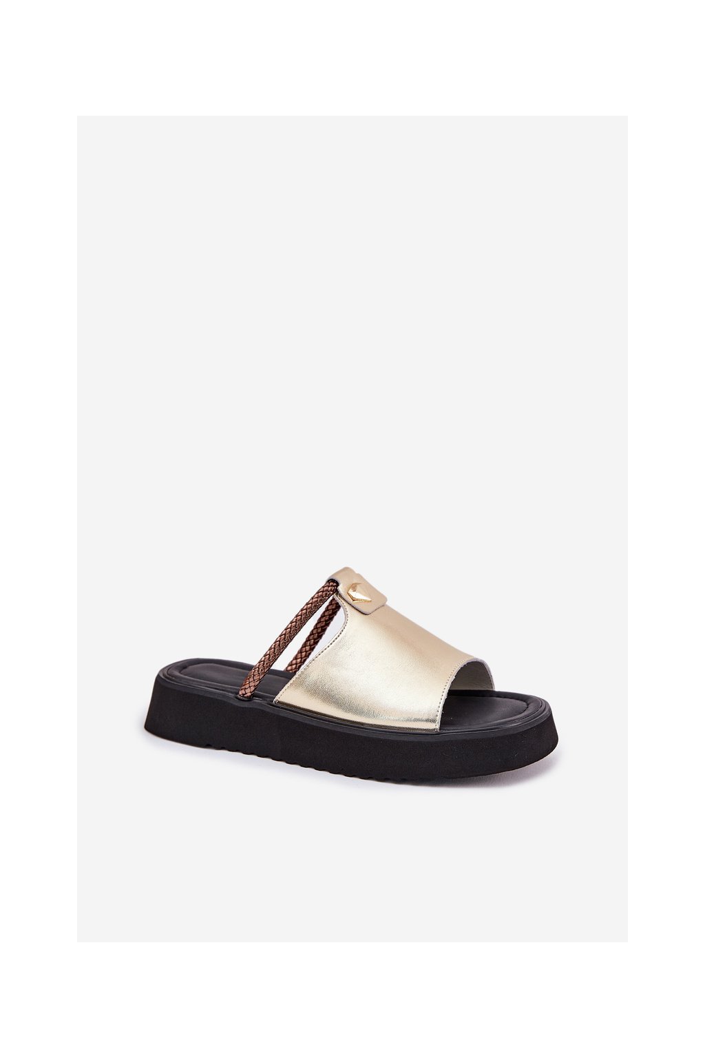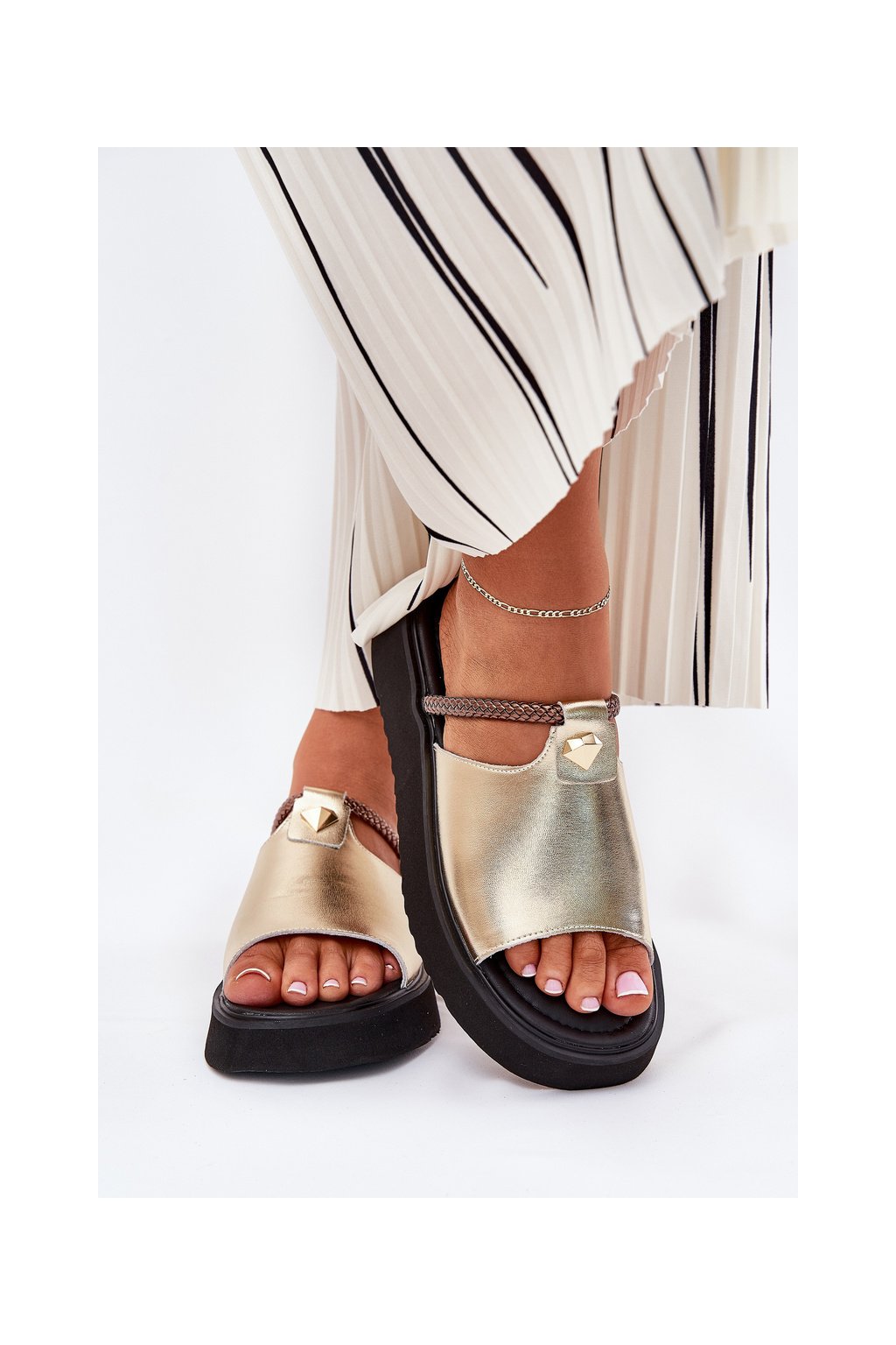 Zlaté dámske kožené sandále na platforme s ozdobným remienkom, kód produktu MK51-475 GOLD