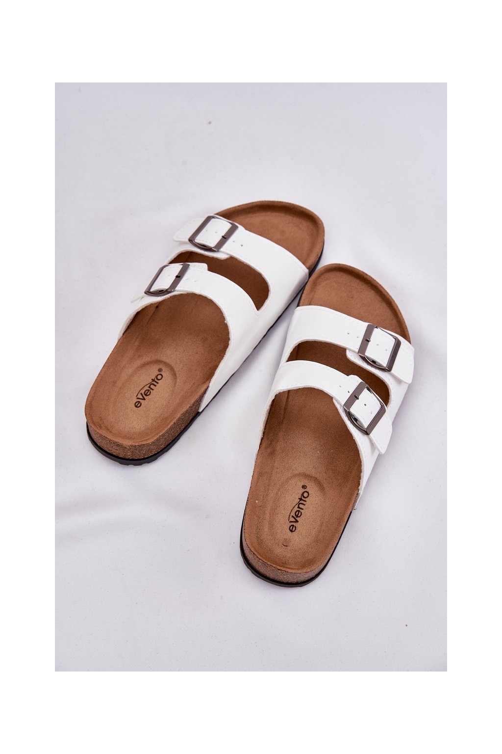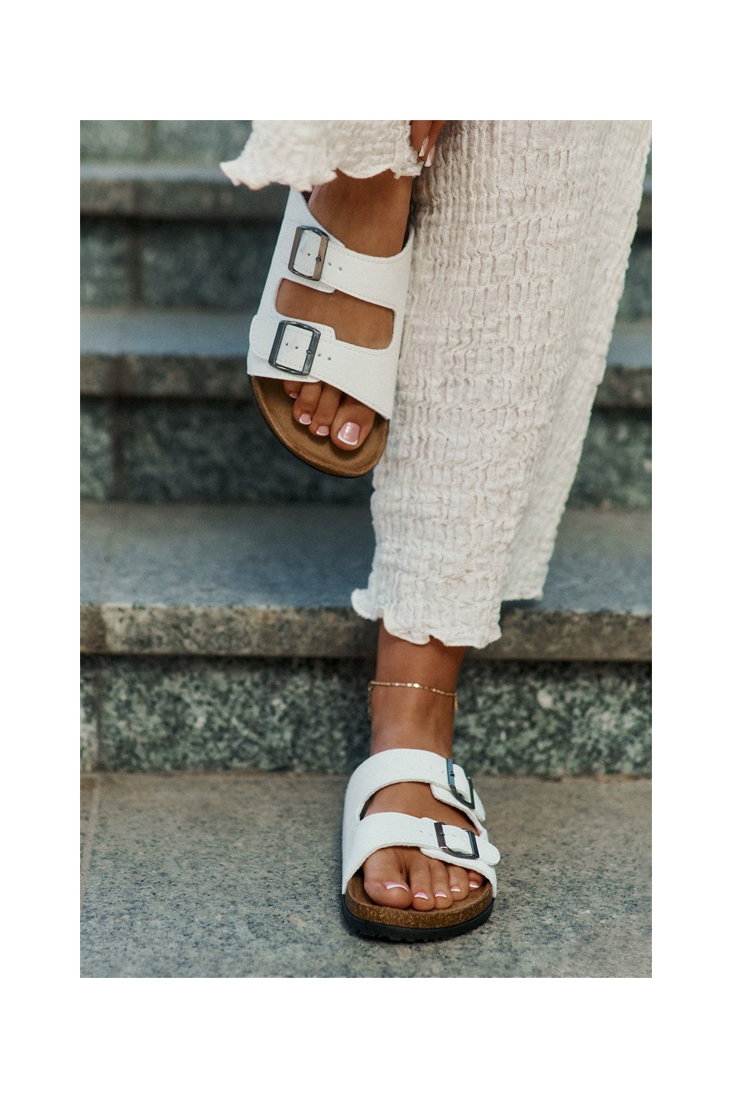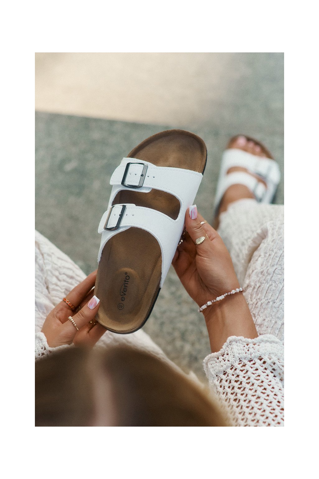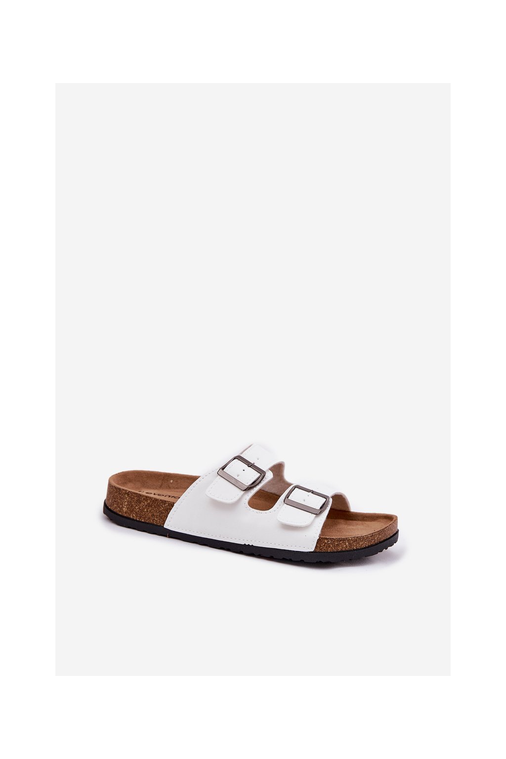 Biele dámske šľapky z eko kože na korkovej platforme s rovnou podrážkou, kód produktu 25SD11-8911 WHITE