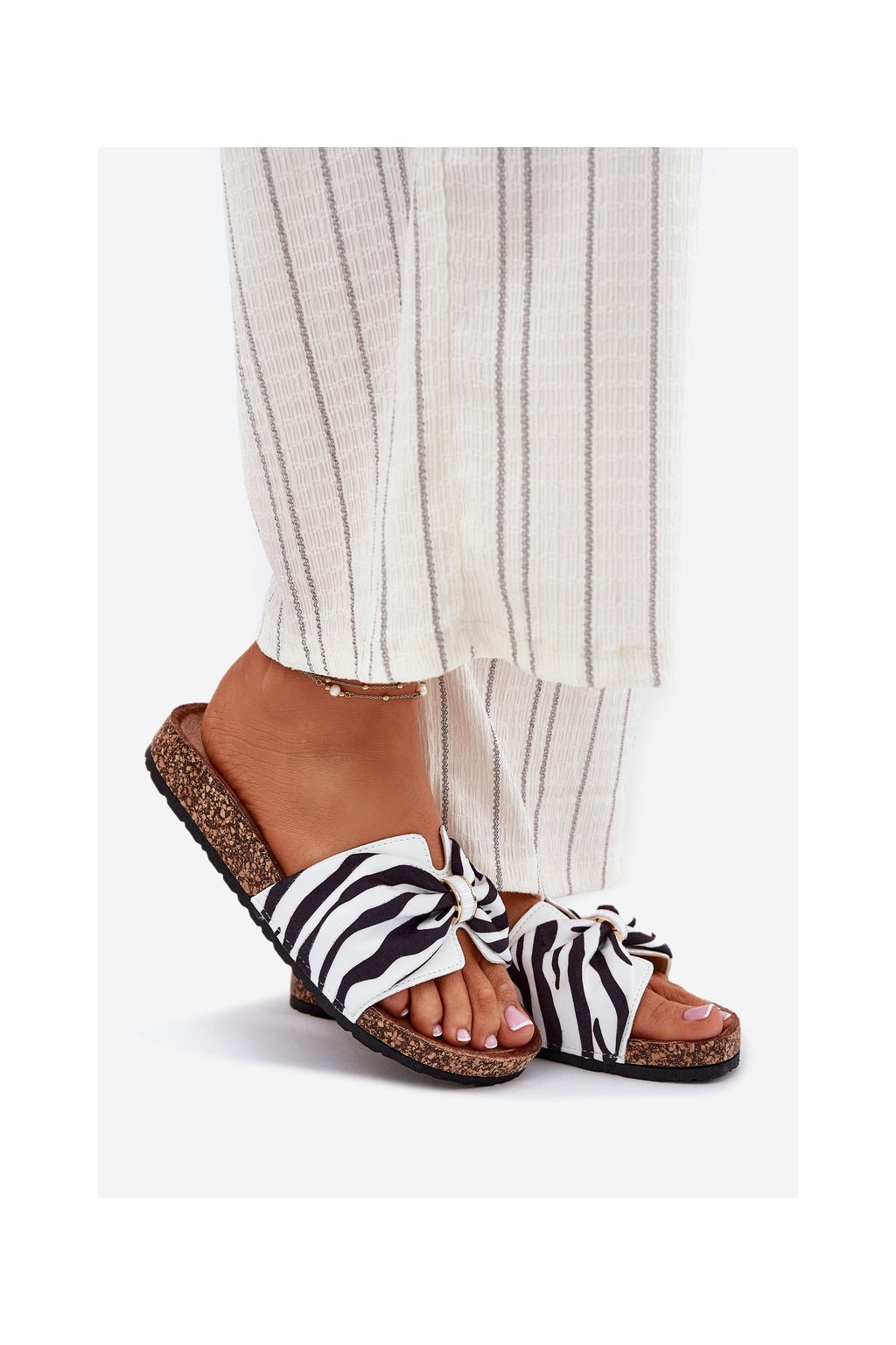 Biele dámske šľapky na korkovej platforme s rovnou podrážkou EKO semiš LS-148 WHITE