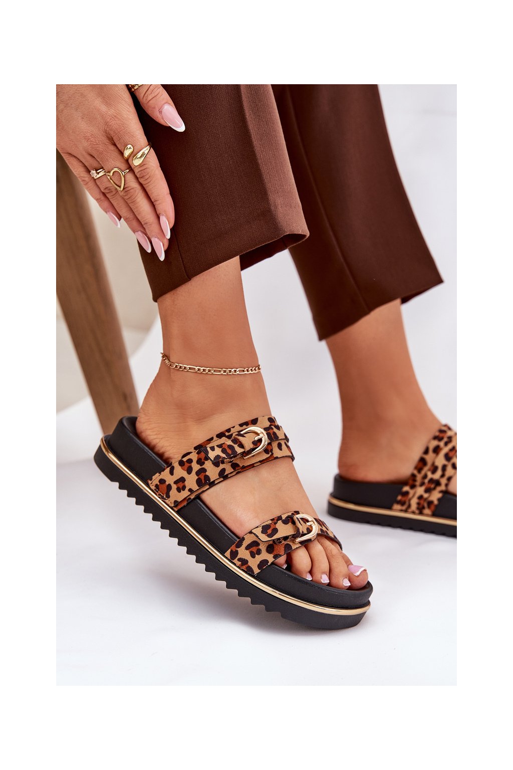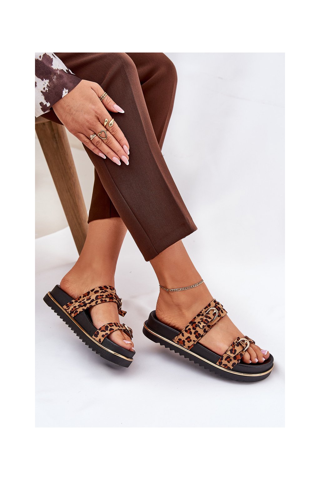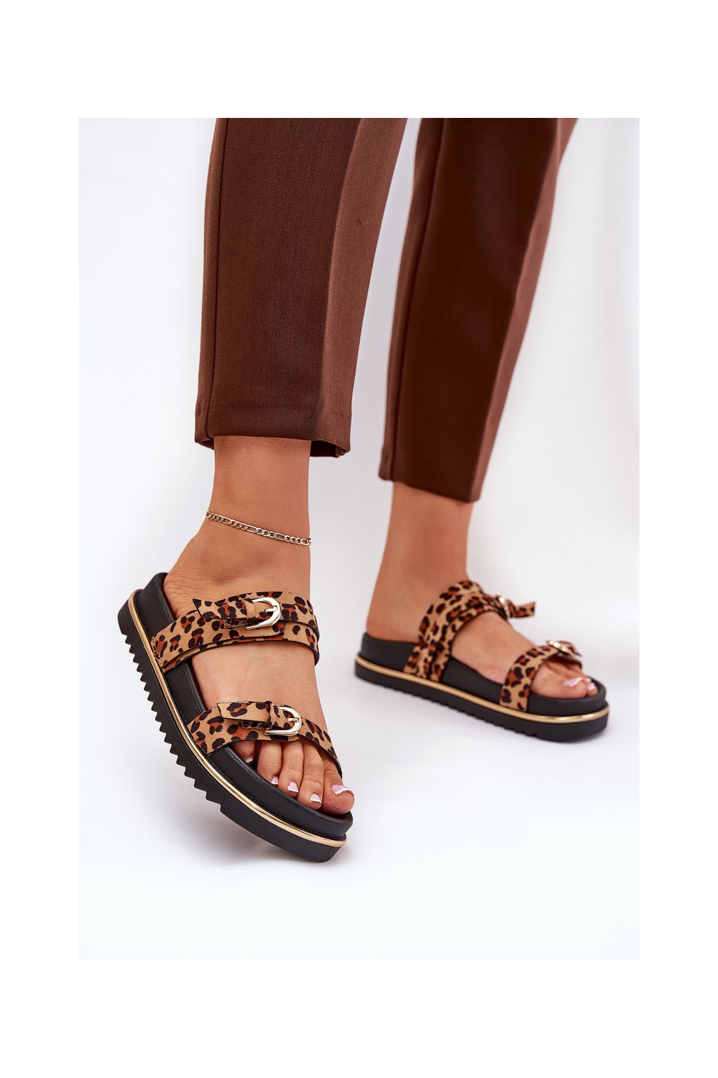 Hnedé dámske papuče na platforme z EKO semišu, LD-27 BLK/LEOPARD