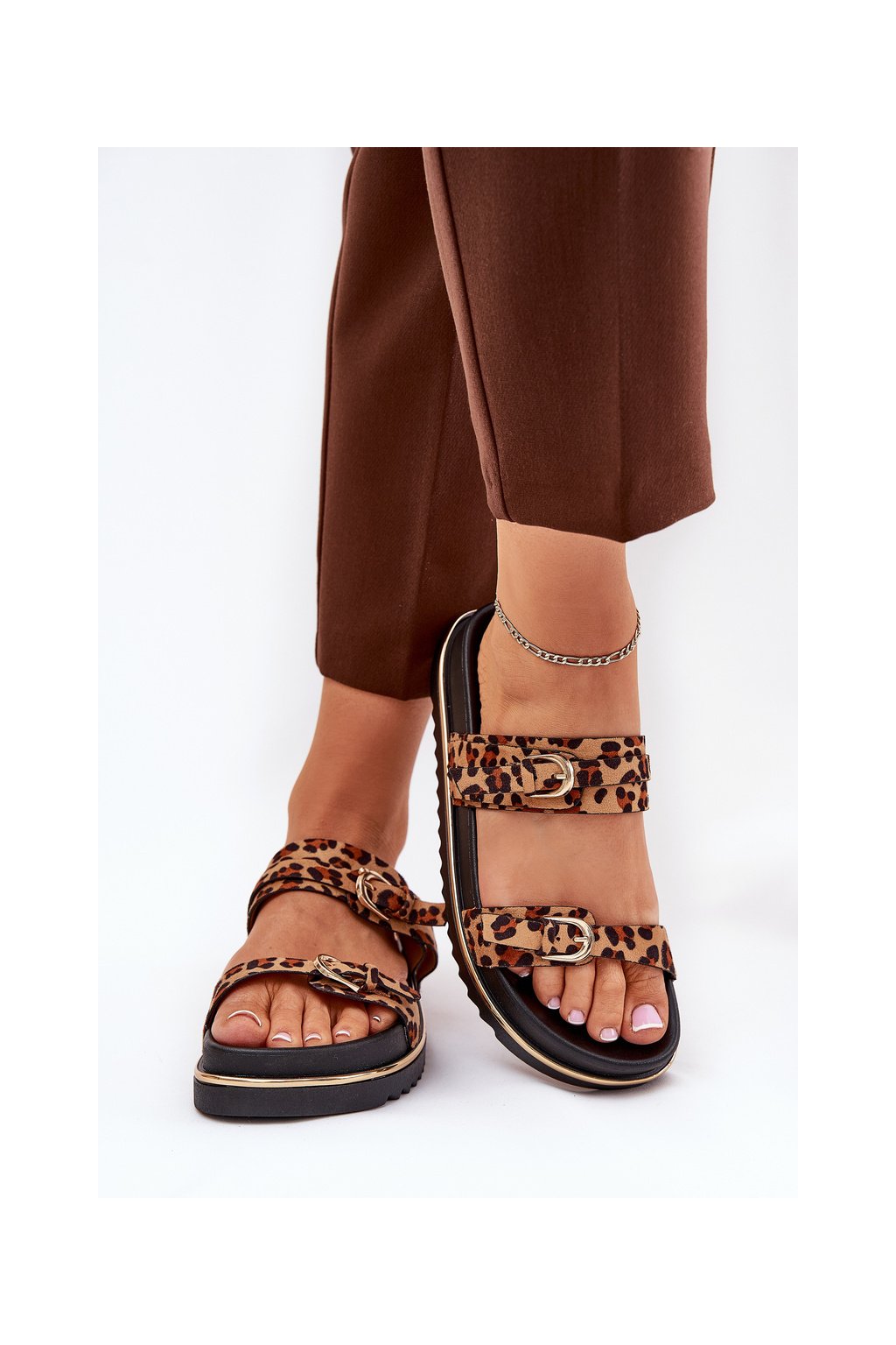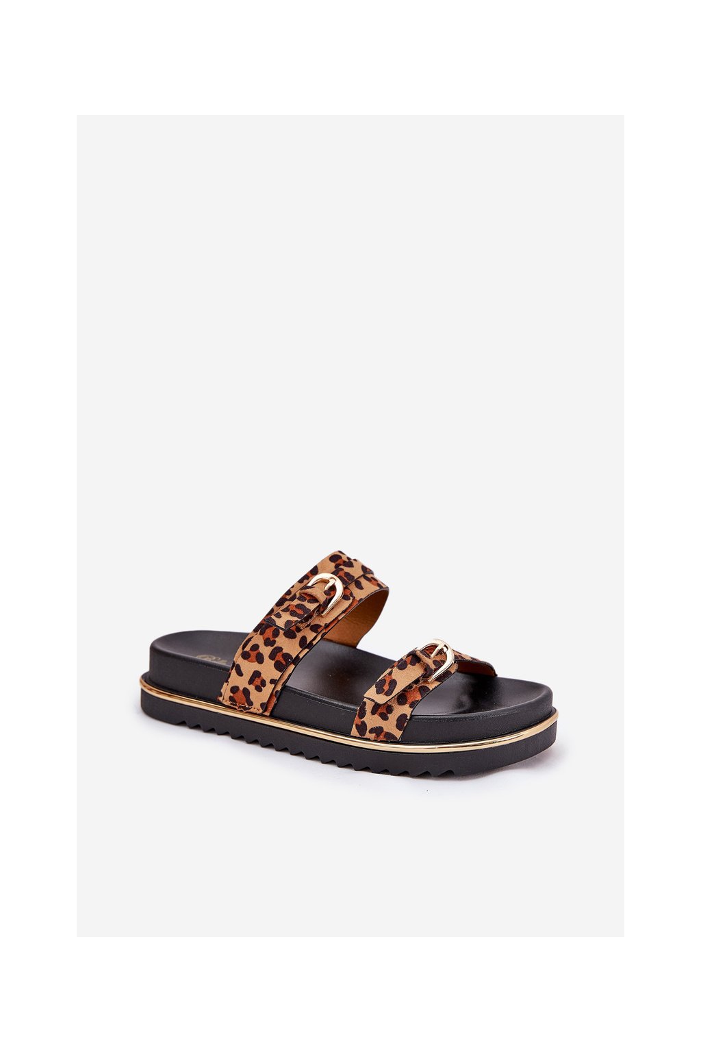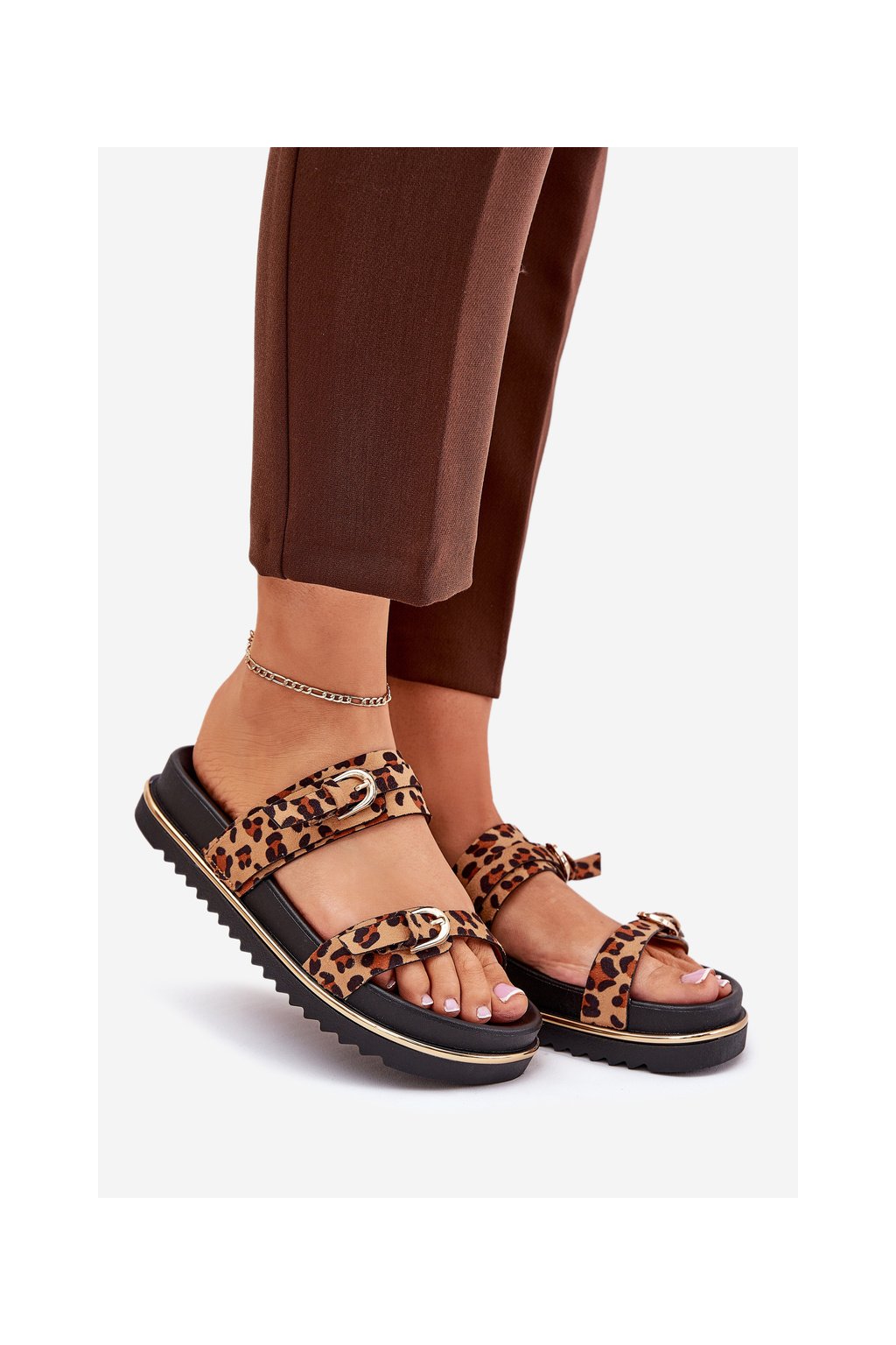 Hnedé dámske papuče na platforme z EKO semišu, LD-27 BLK/LEOPARD