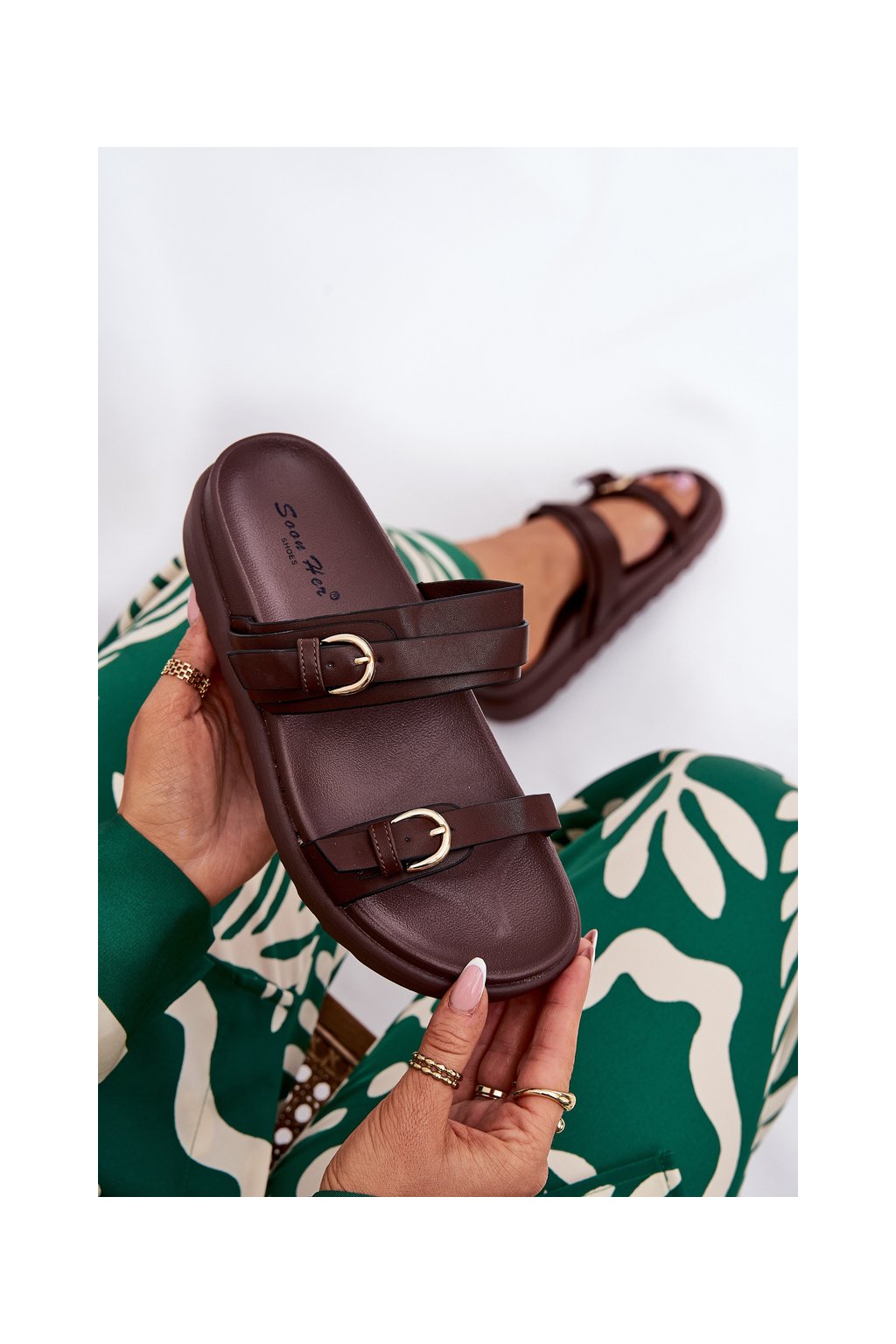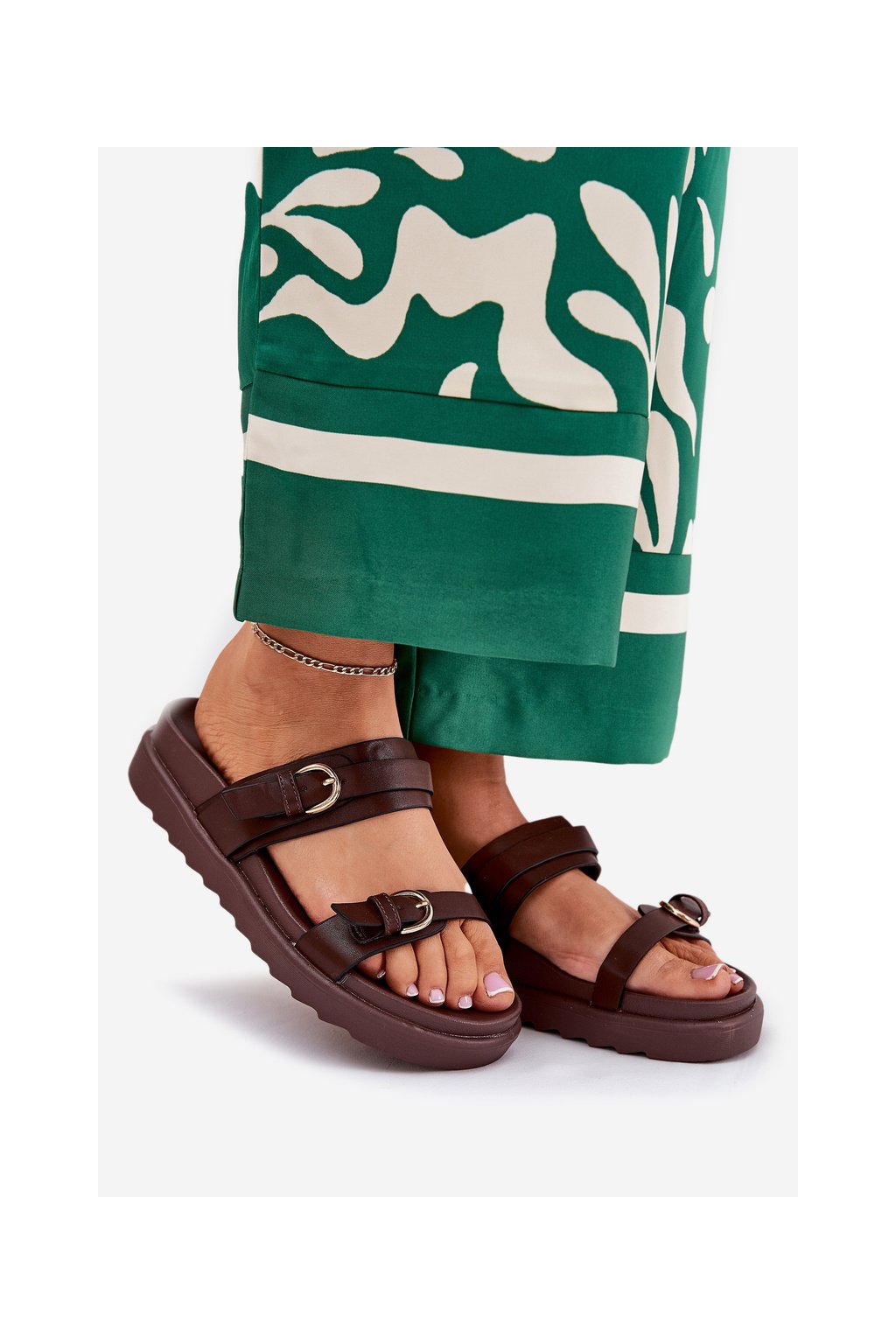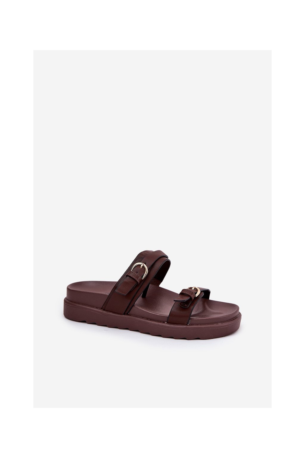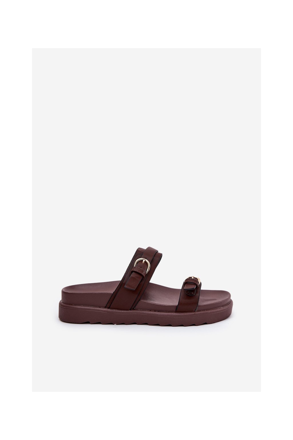 Hnedé dámske papuče na plošom podpätku s eko kožou, TL8-175 BROWN