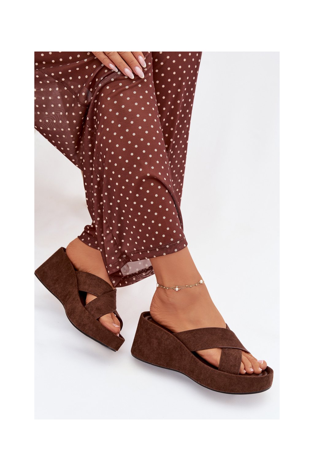 Dámske papuče na platforme z eco semišu čokoládovo hnedé calorine / G517 BROWN (Veľkosť 36)
