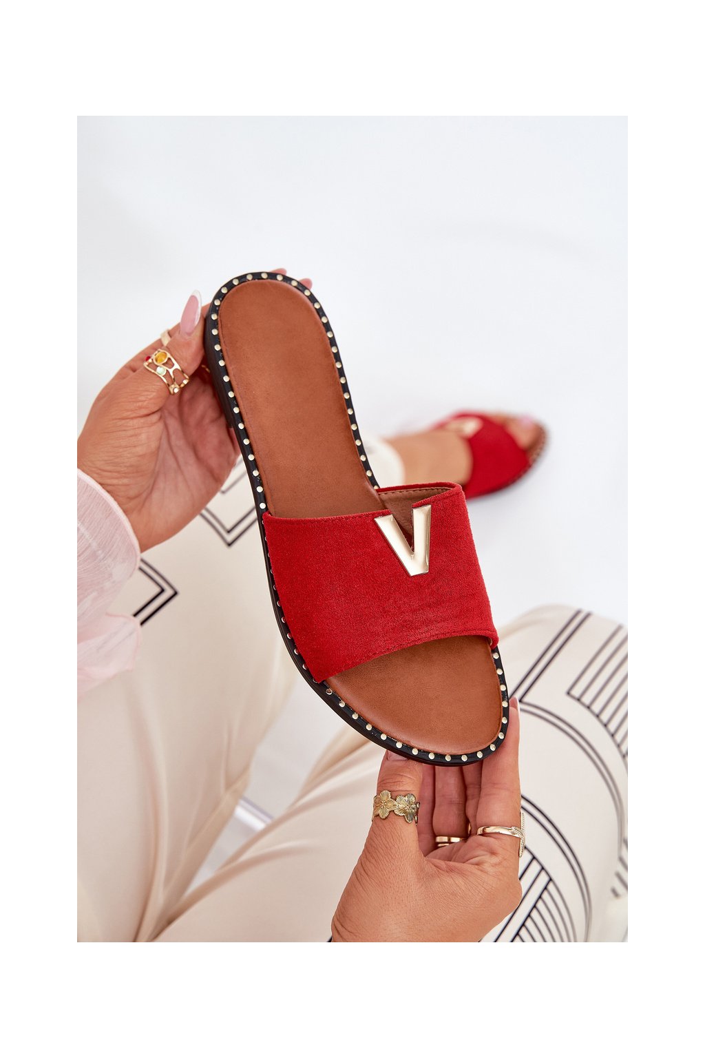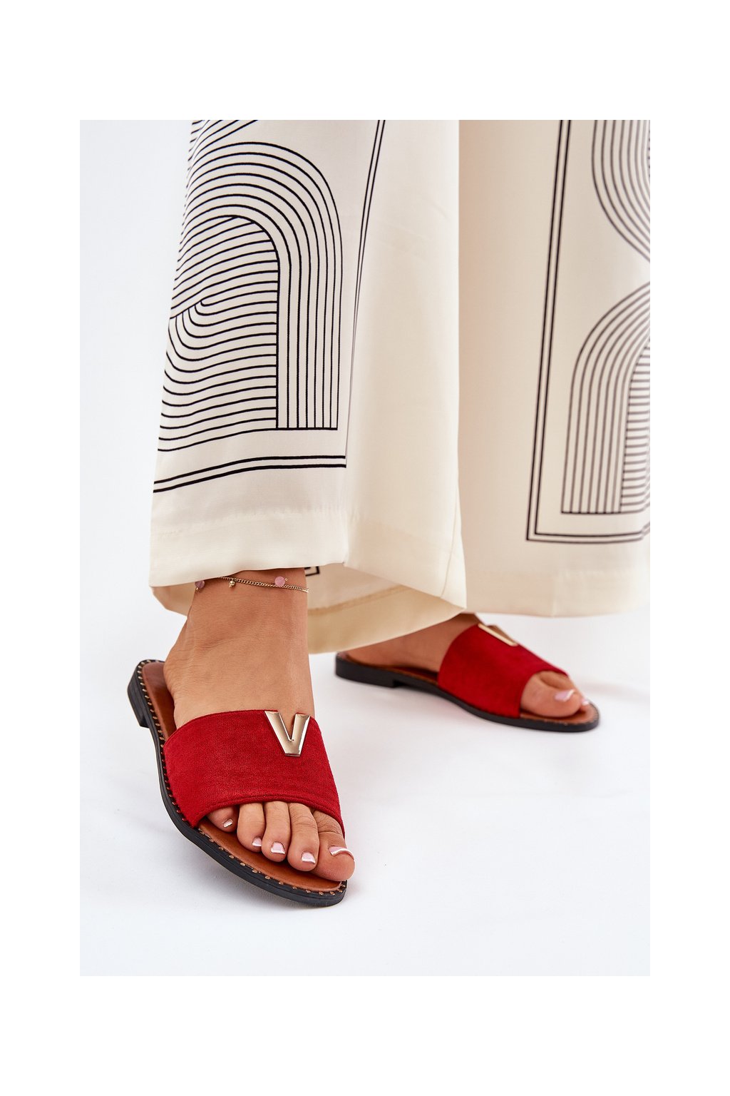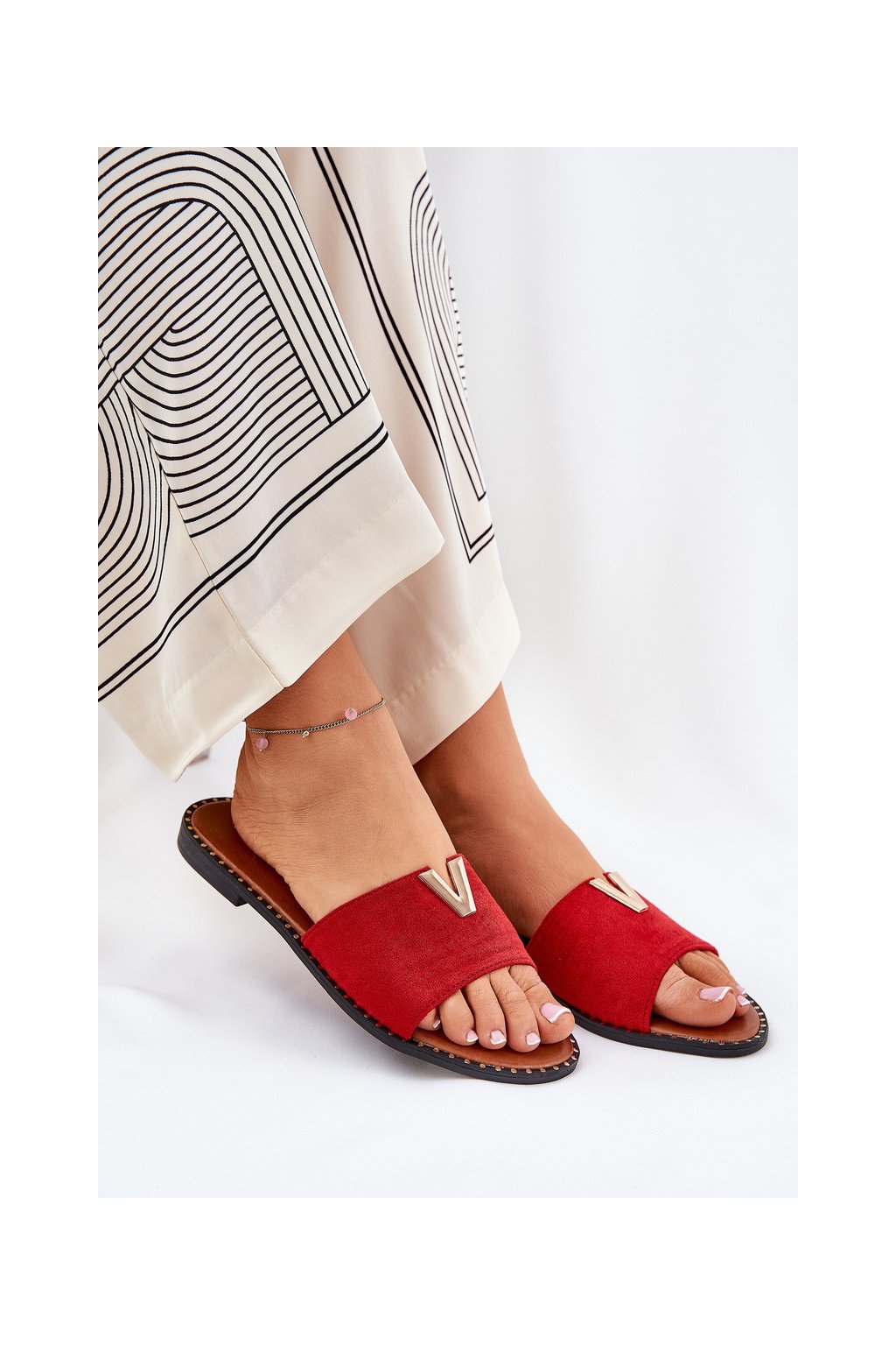 Červené dámske šľapky z eko semišu na rovnej podrážke, kód produktu HXD-23 MAROON