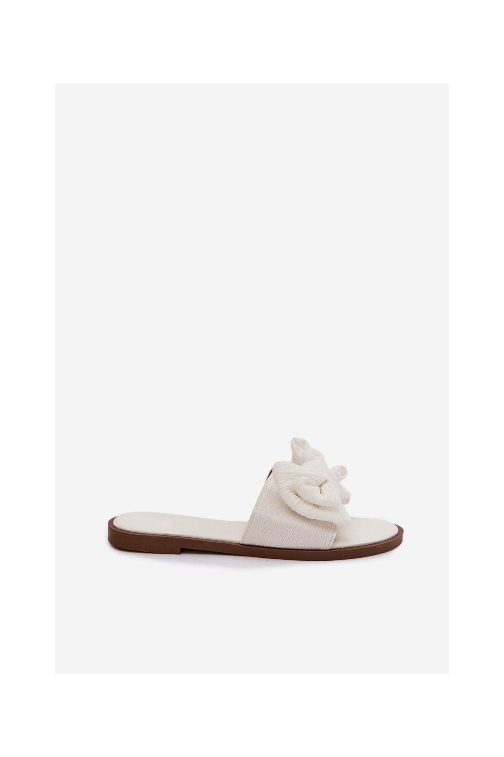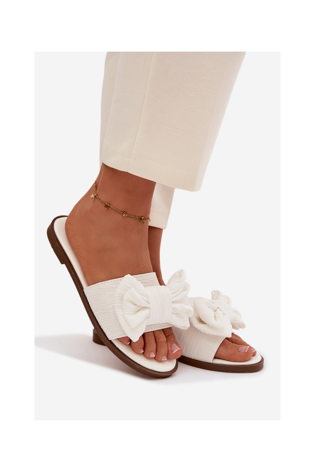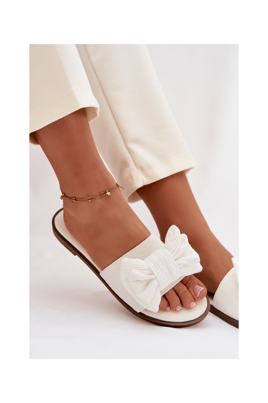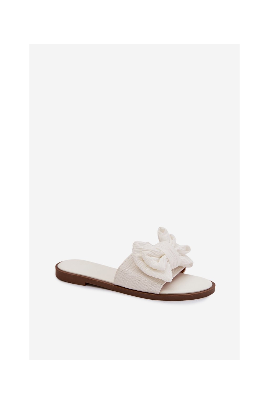Dámske papuče na ploché podrážce s mašľou biele amivelle / M41 WHITE