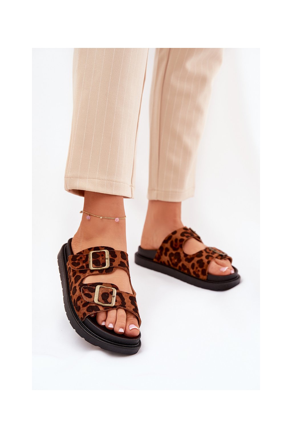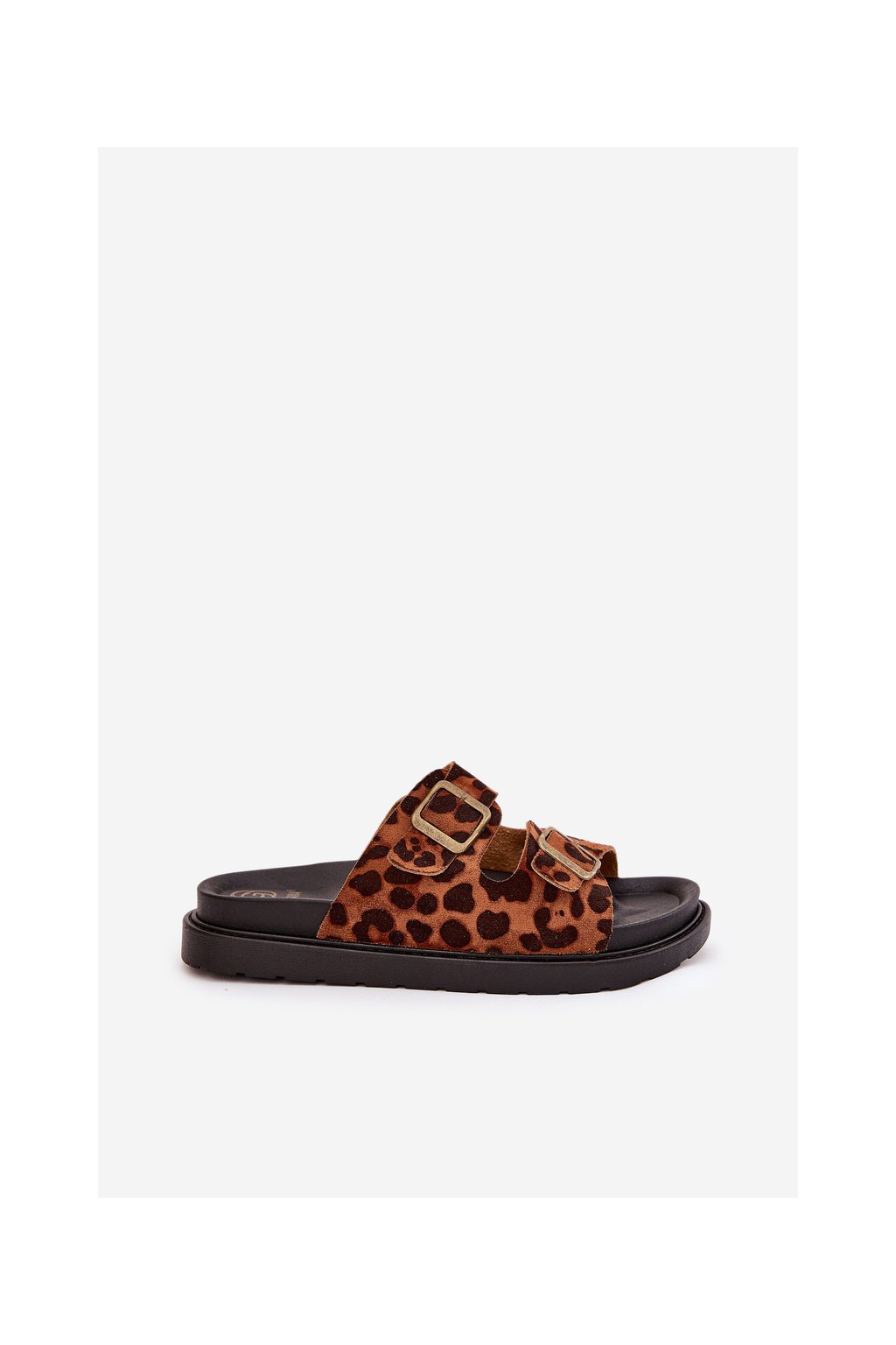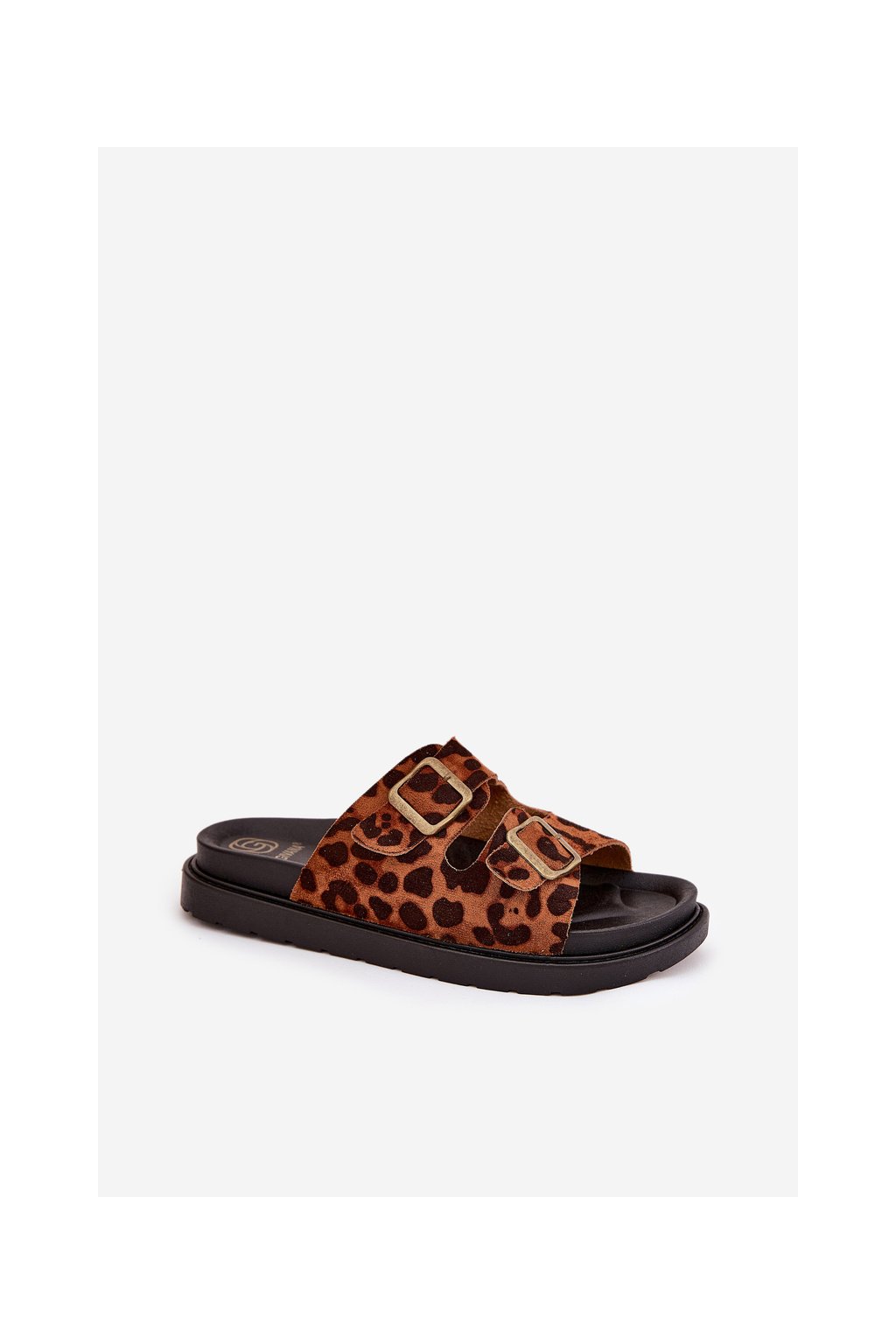 Hnedé dámske papuče z eko semišu s leopardím vzorom, M35 LEOPARD