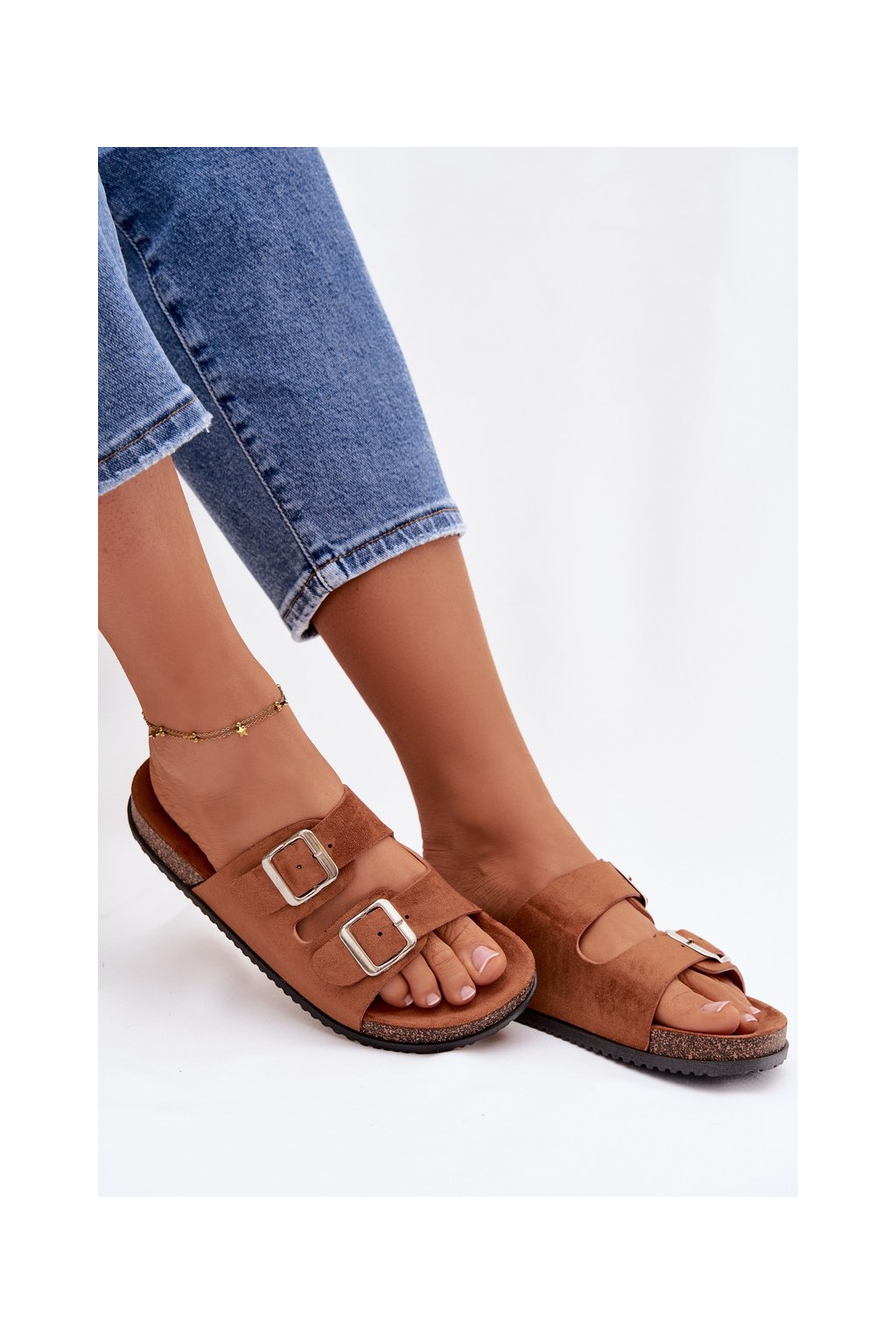 Dámske papuče s prackami camel oliena / CD207 CAMEL