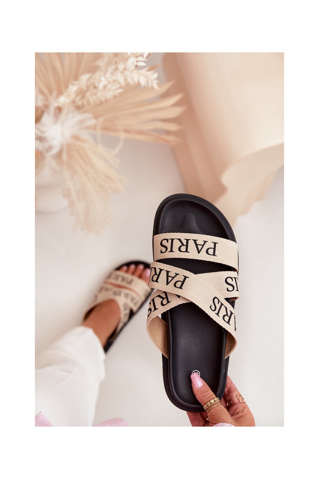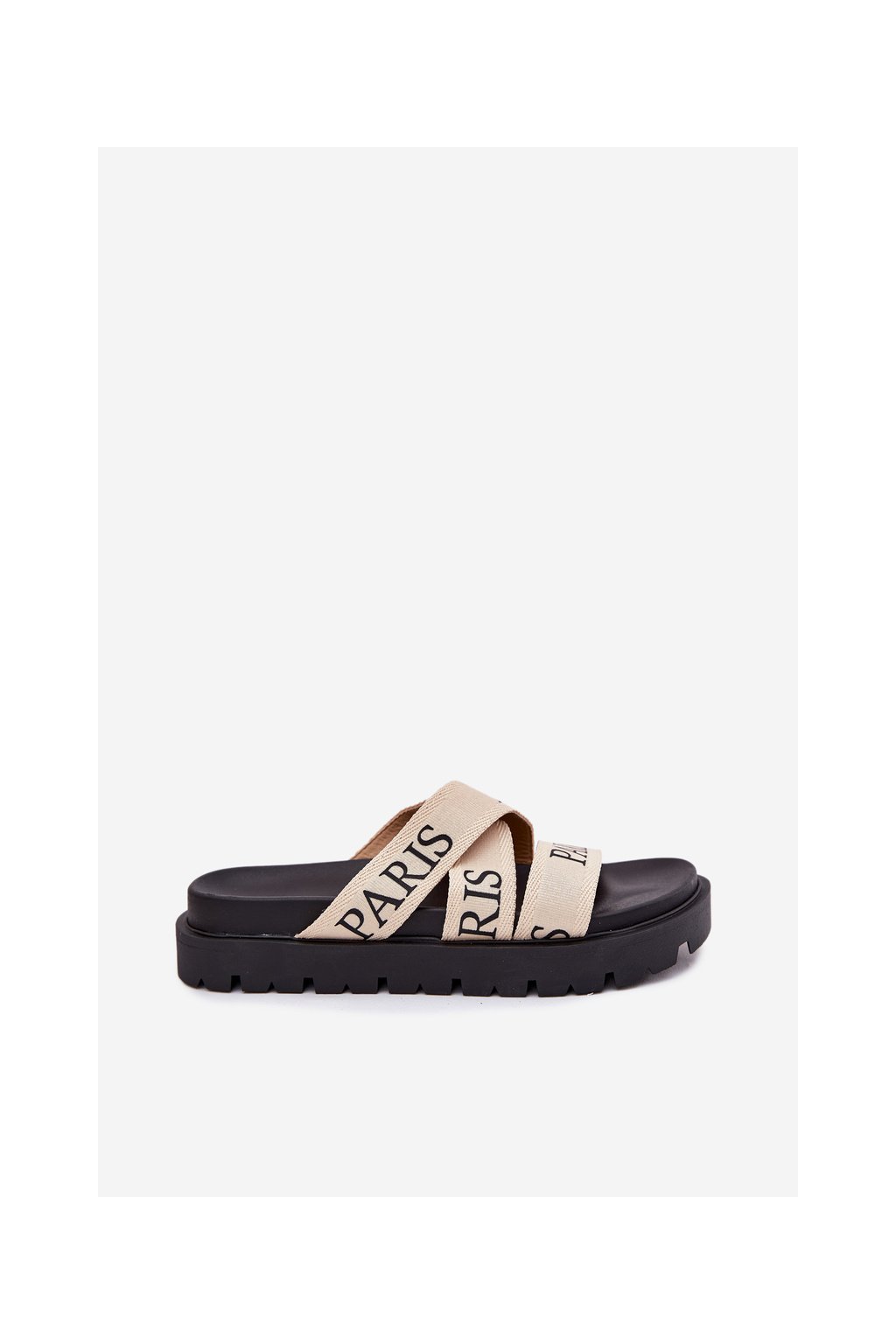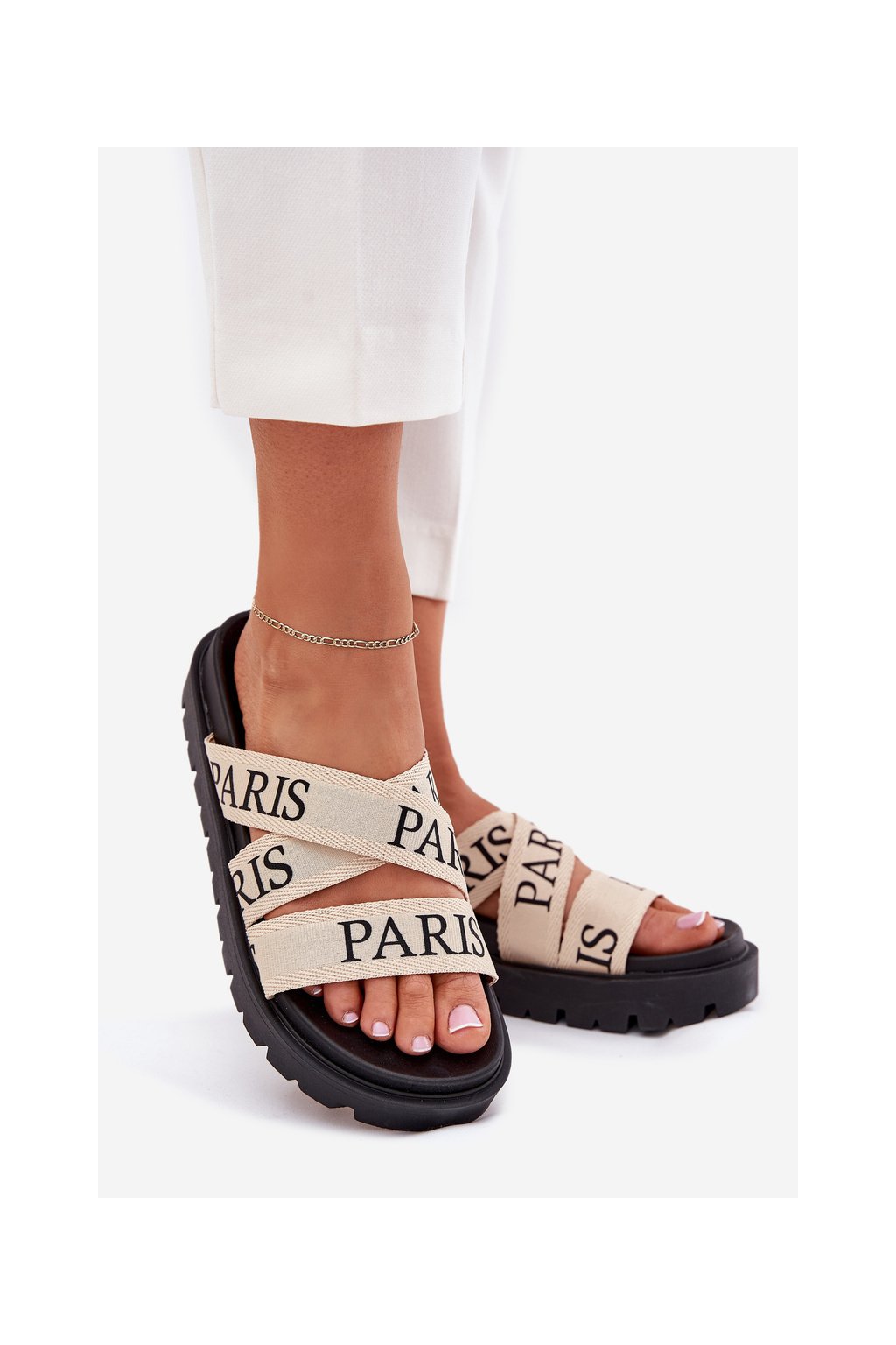 Béžové dámske šľapky na platforme s textílnymi remienkami a nápisom "PARIS", kód produktu BG221P BEIGE