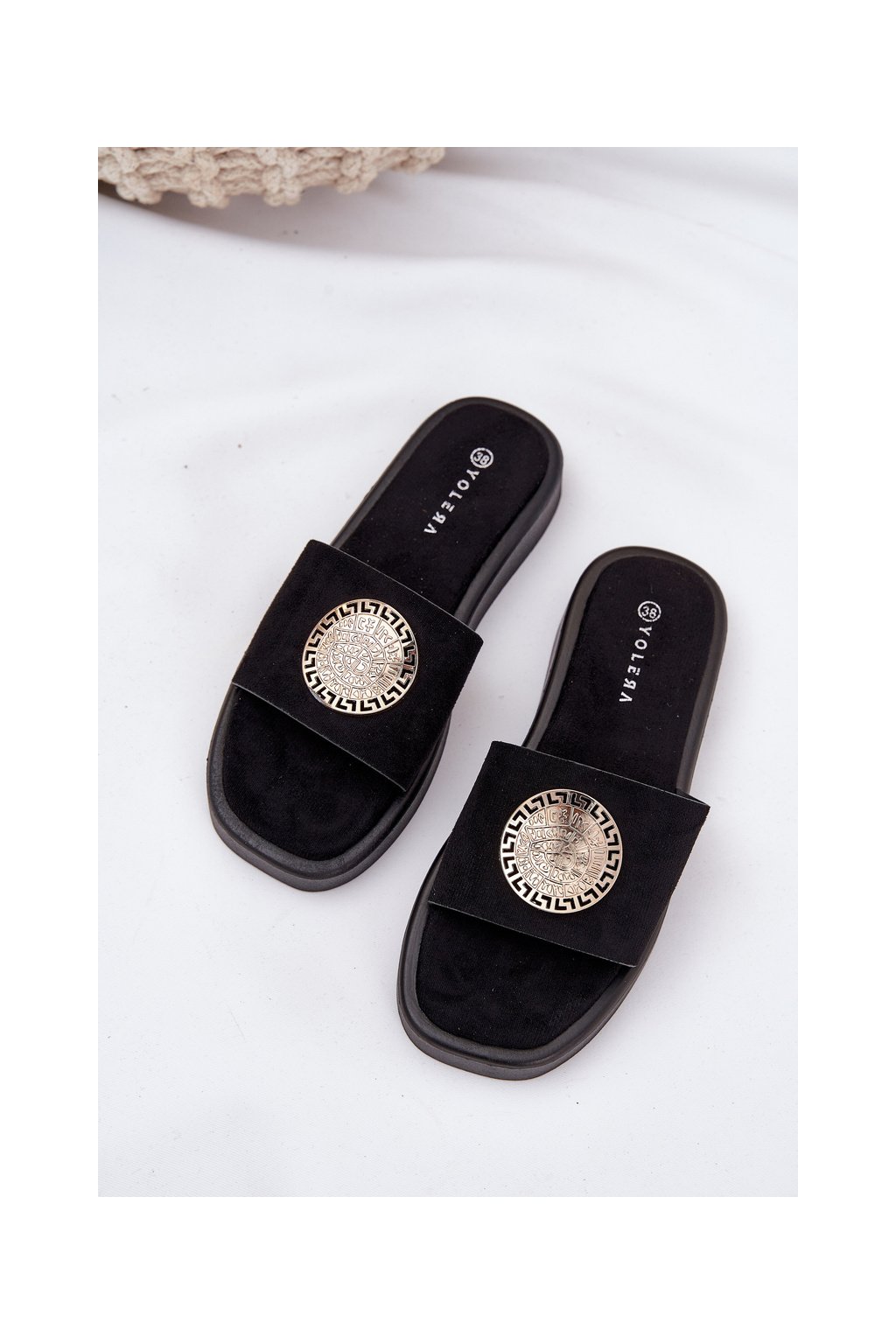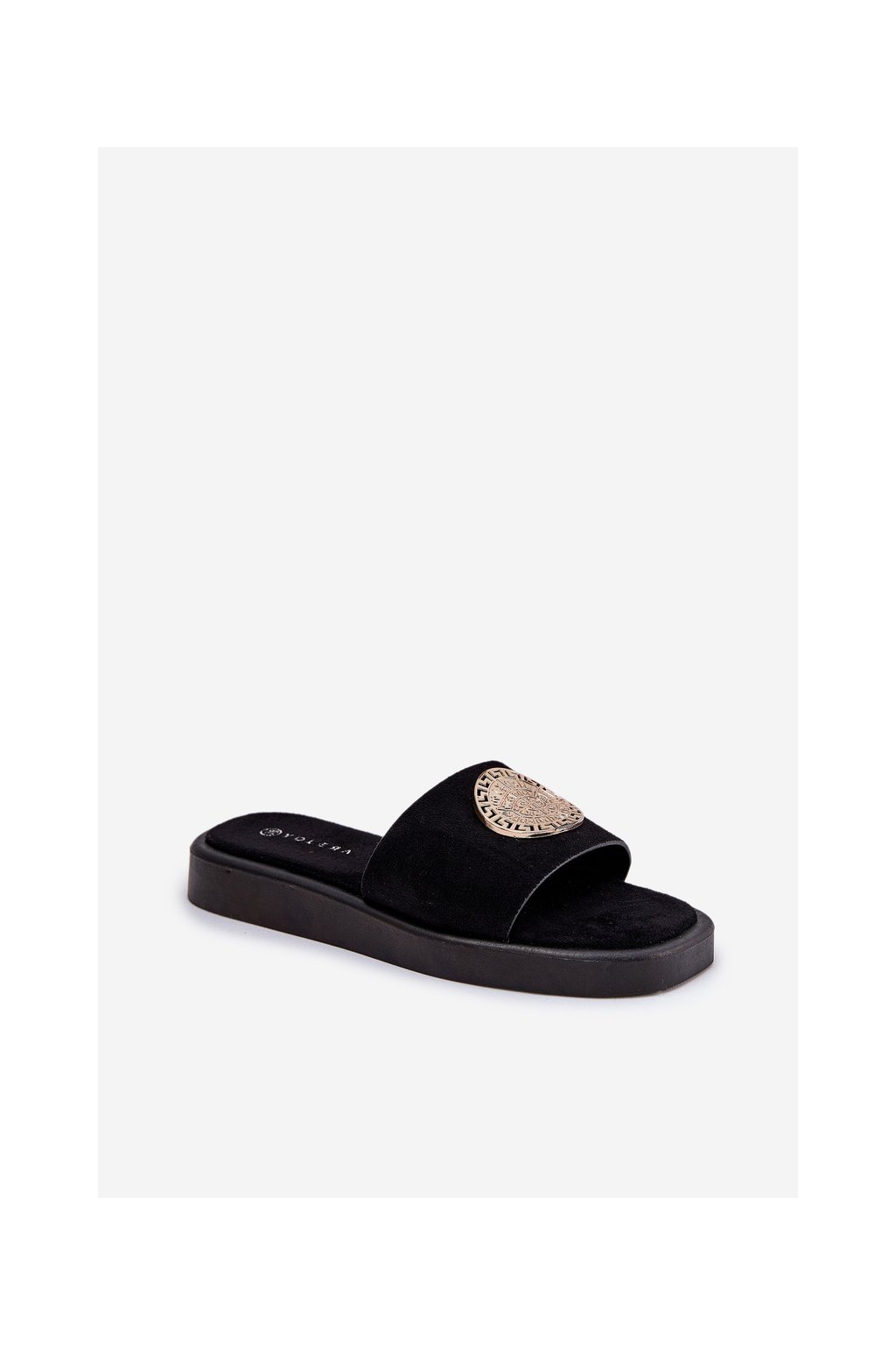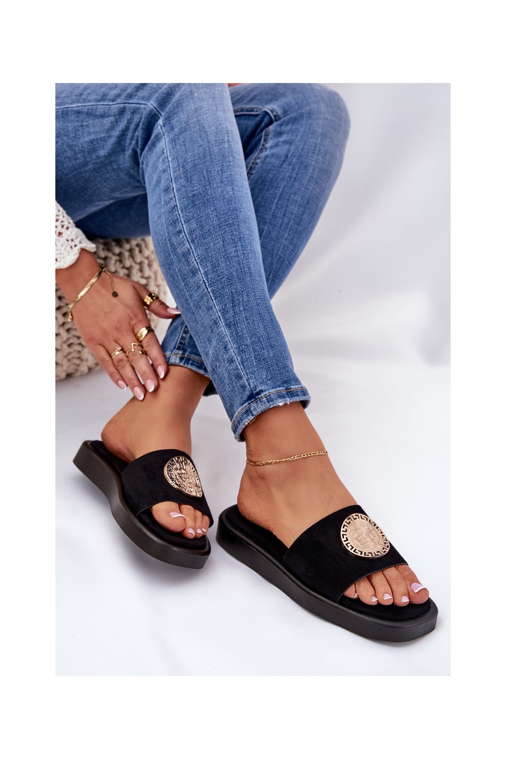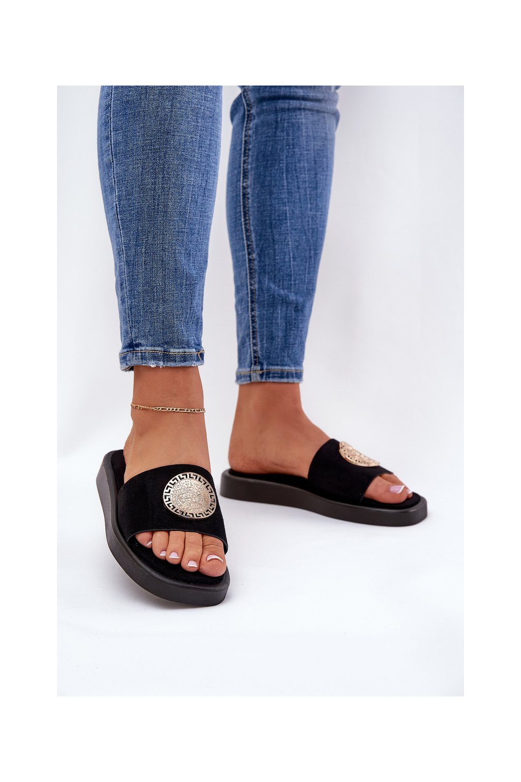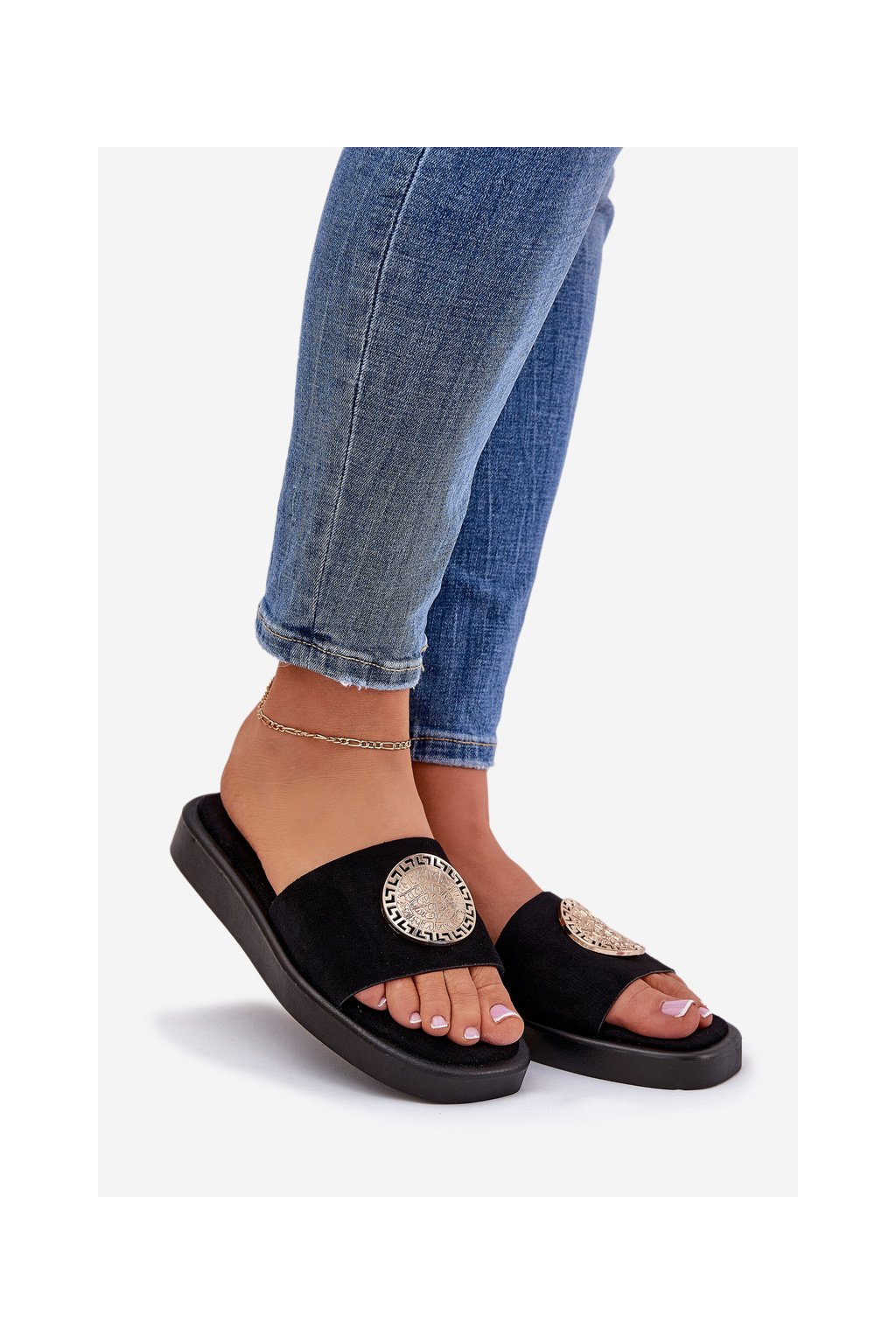 Čierne dámske papuče z EKO semišu s plošou, GH5156-1 BLACK