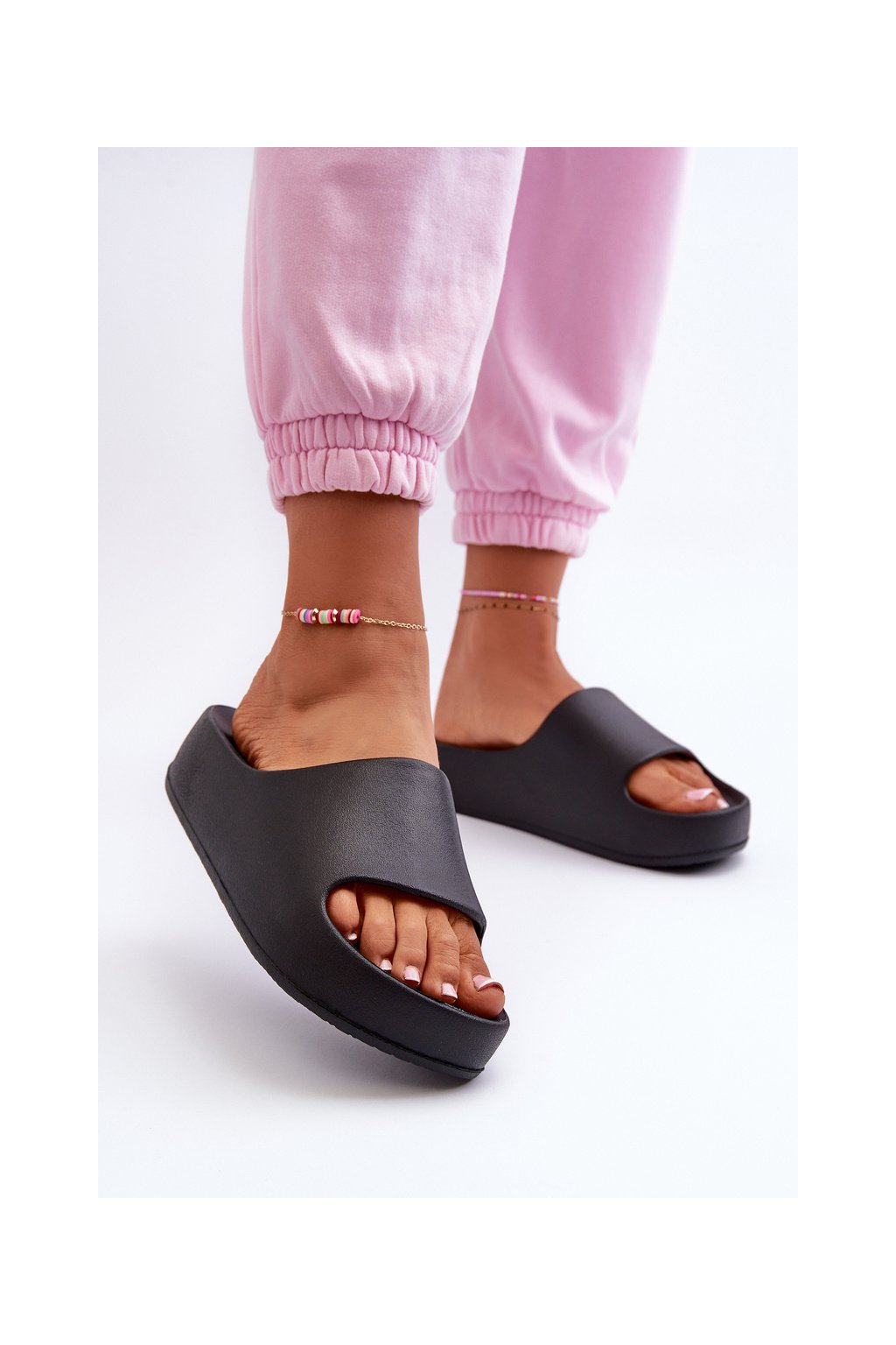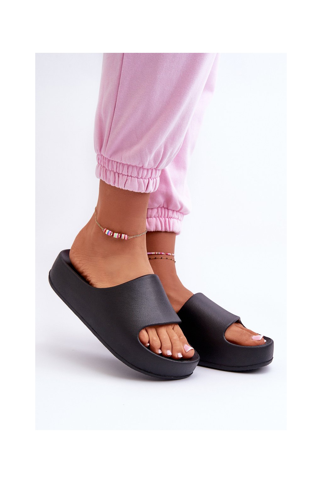 Čierne dámske penové žabky na plošom podpätku, kód 24SD19-7564 BLACK