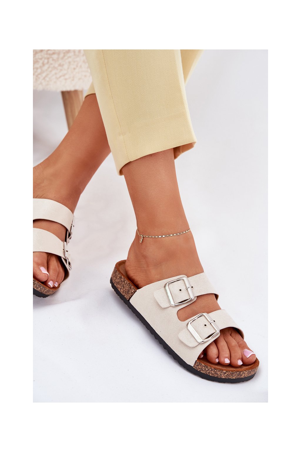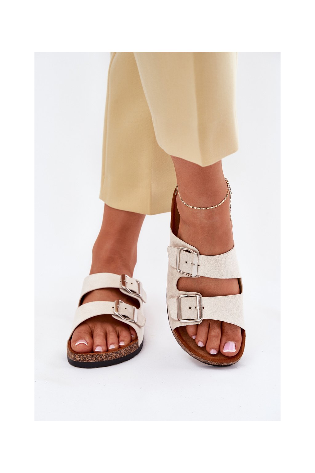 Dámské sandály na korkové platformě s přezkami béžové Livara (Veľkosť 36)