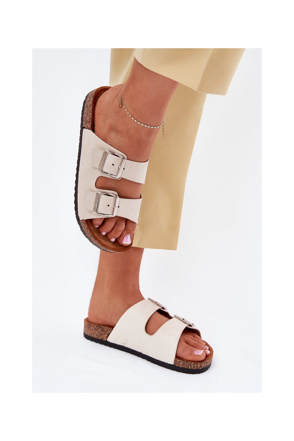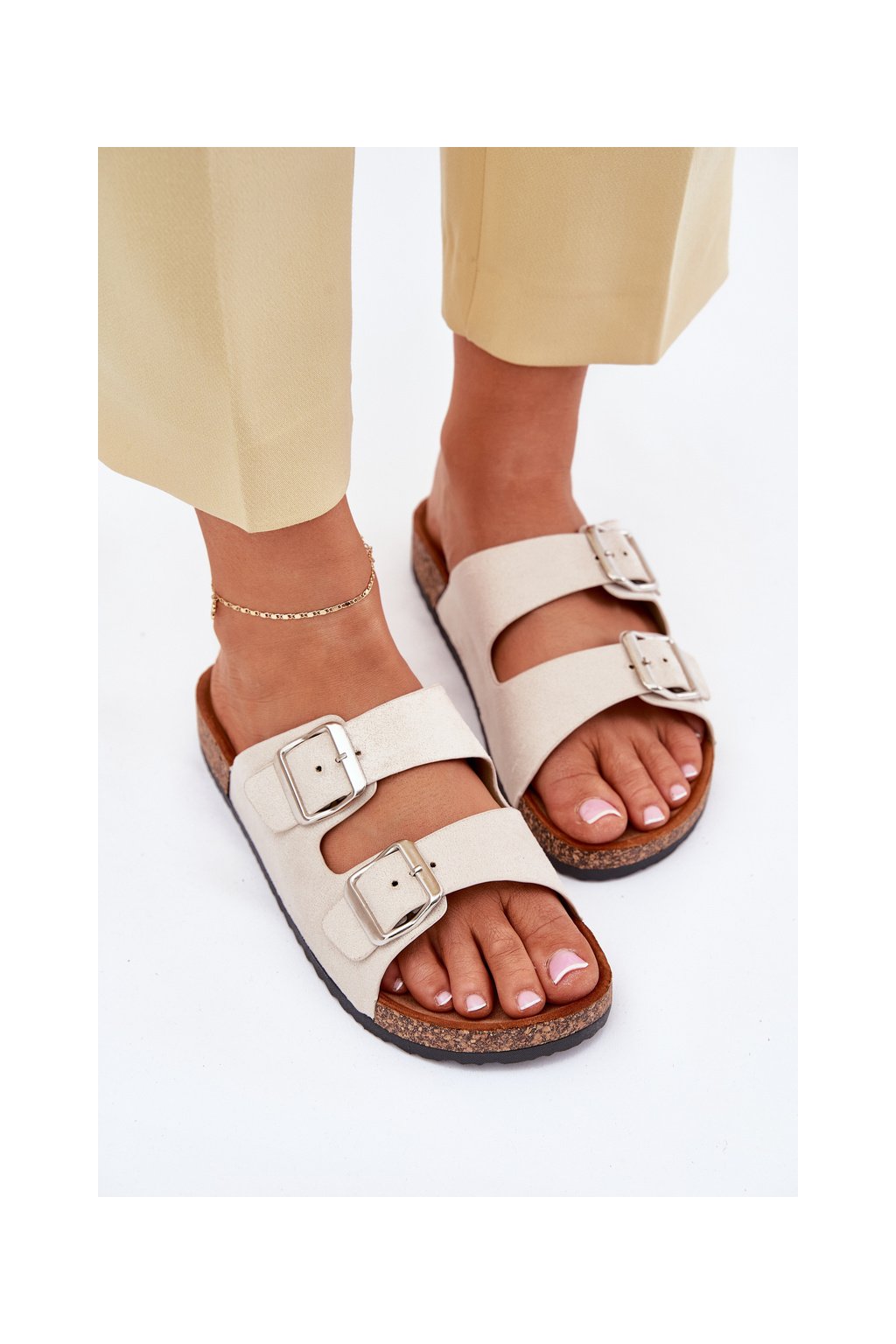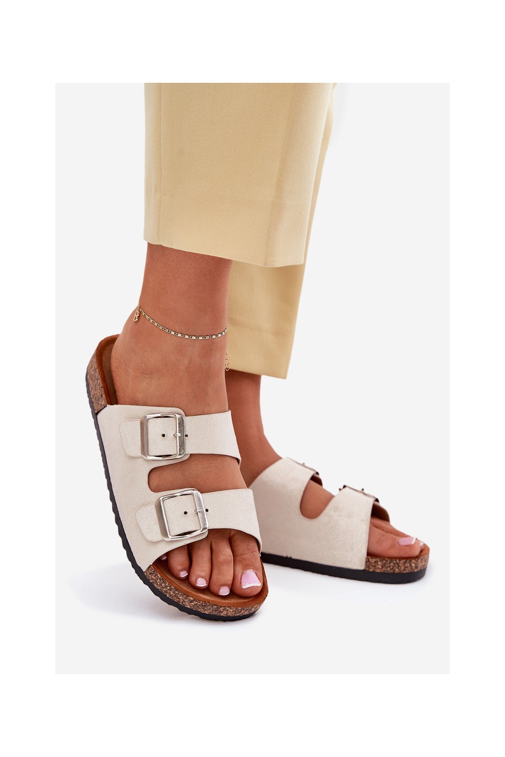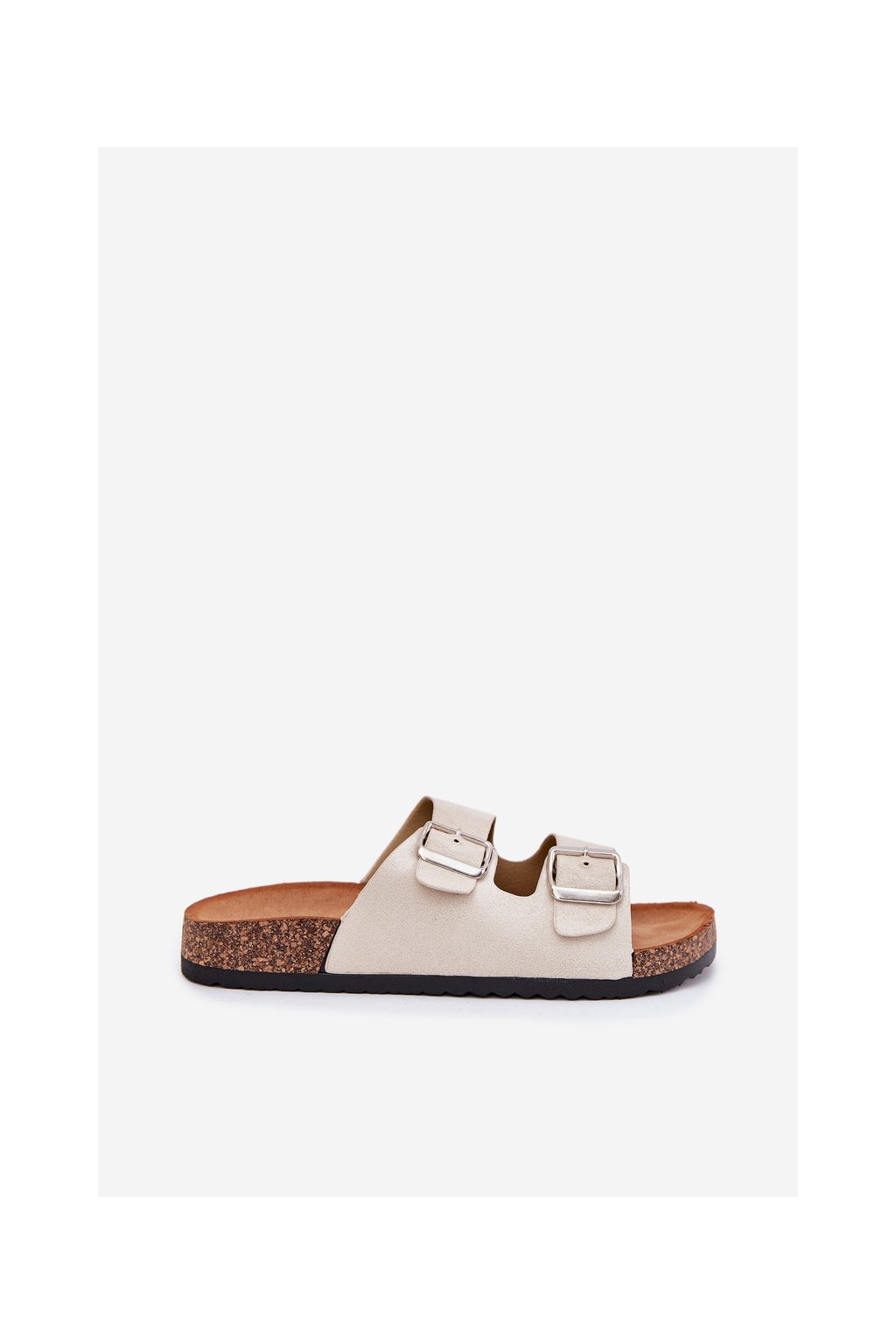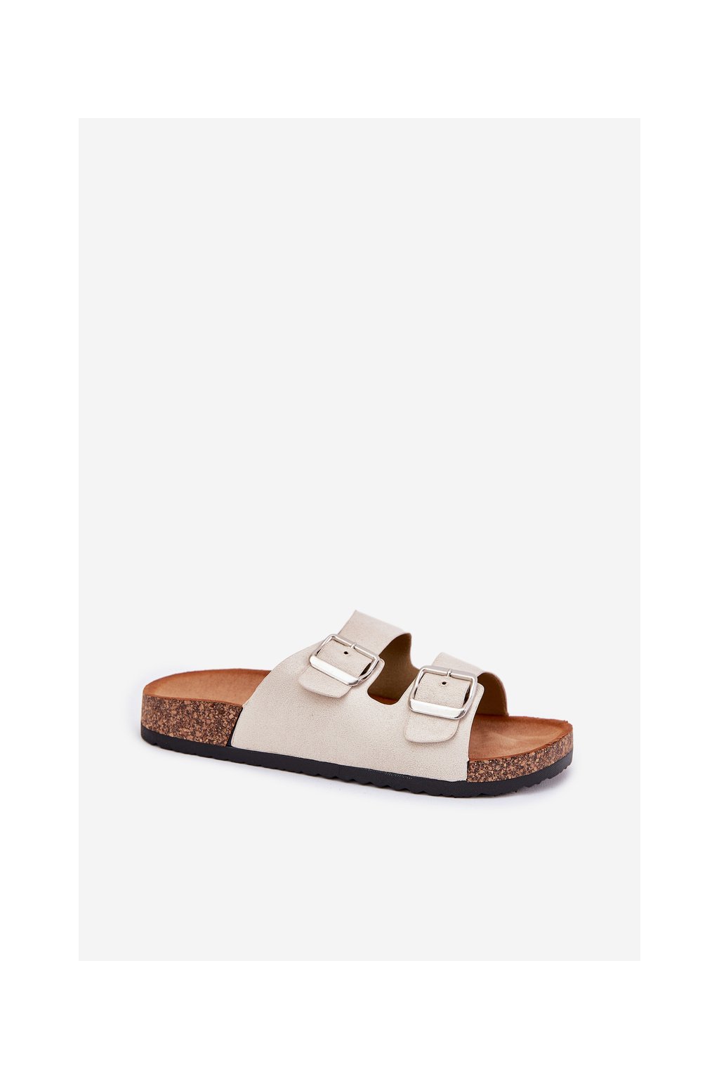 Béžové dámske šľapky z eko semišu na korkovej platforme s prackami, WD295 BEIGE