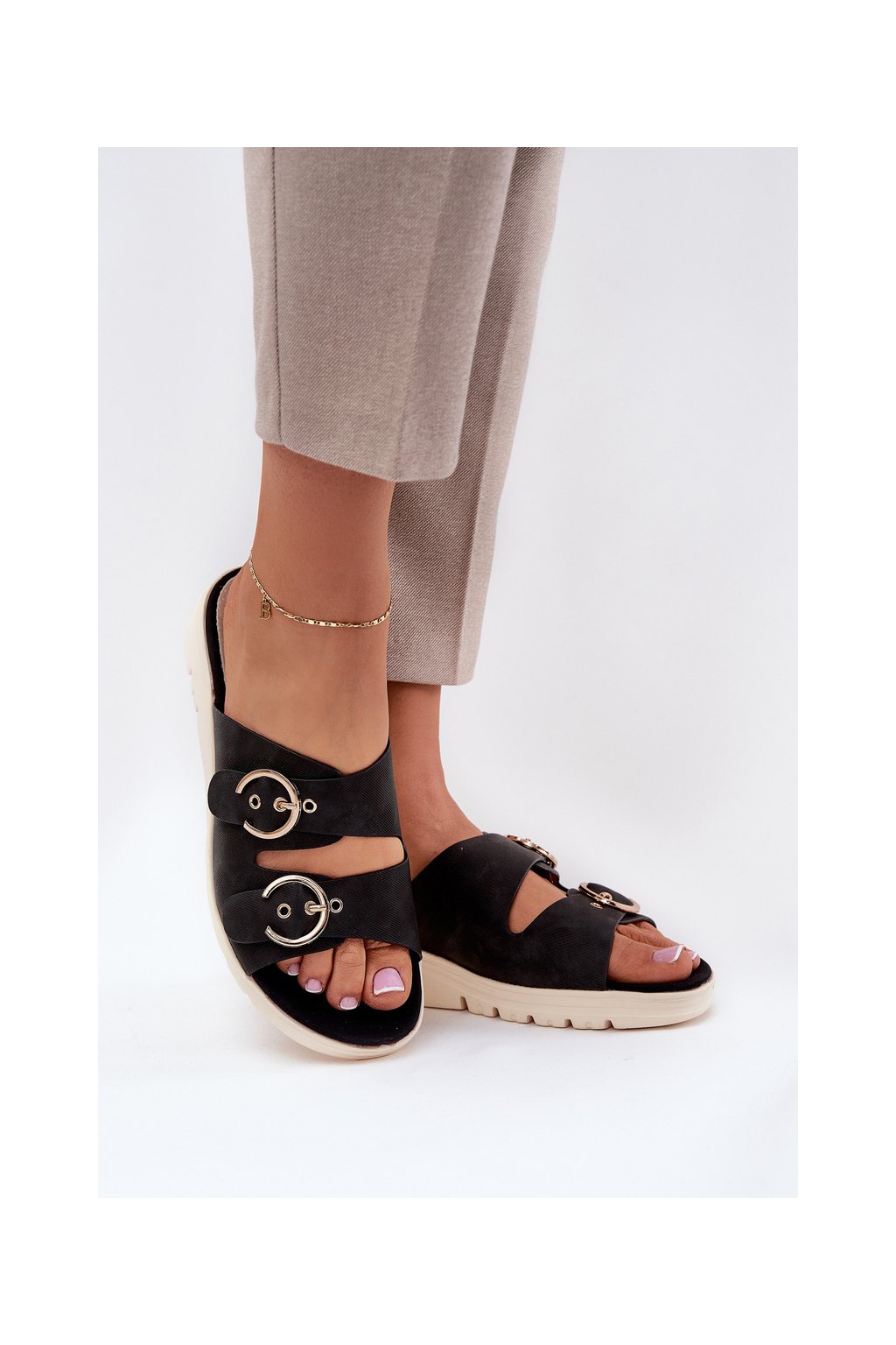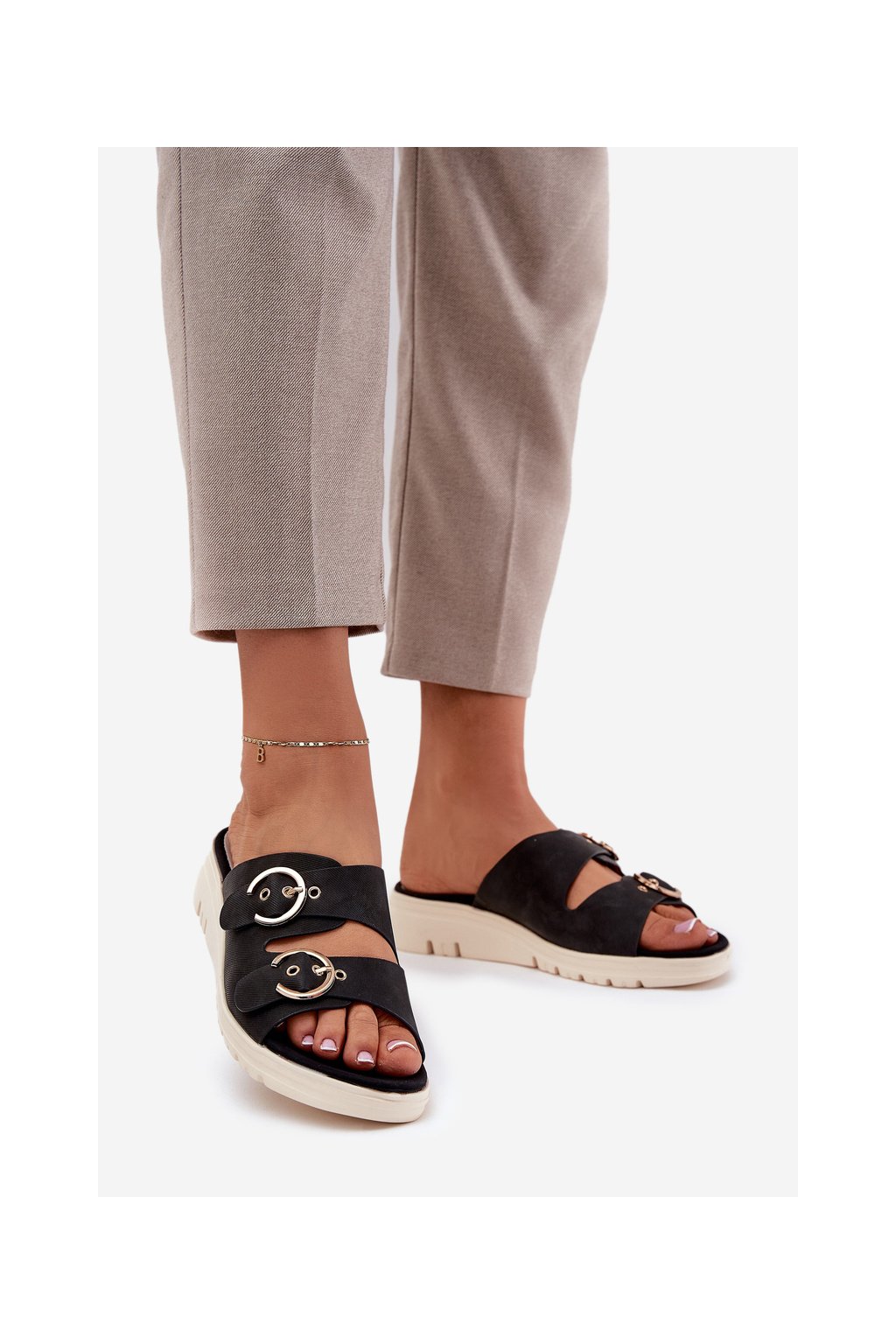 Zapínajú sa na klin, čím zabezpečujú stabilitu a pohodlie, a kožená, mäkká stielka sa postará o komfort počas celého dňa. V prednej časti sú nastaviteľné remienky s prackami, ktoré umožňujú dokonalé prispôsobenie nohe. Tieto papuče sú skvelé na letnú štylizáciu, spájajú funkčnosť s módnym vzhľadom. Pri výbere veľkosti sa riaďte tabuľkou veľkostí.