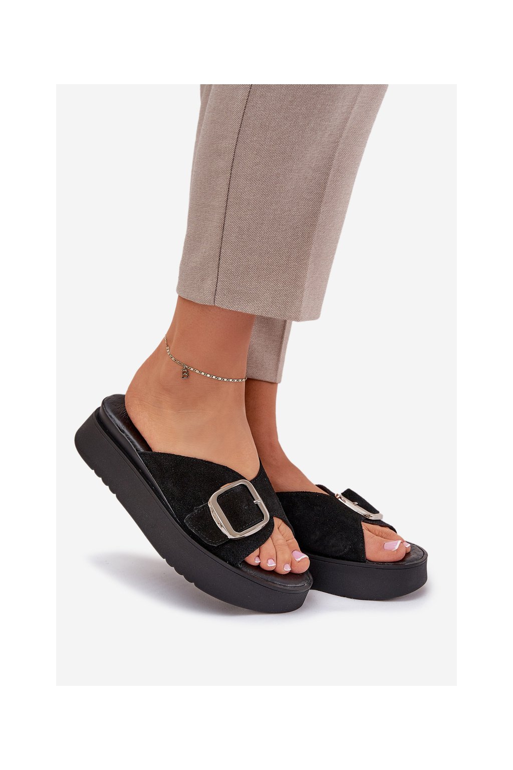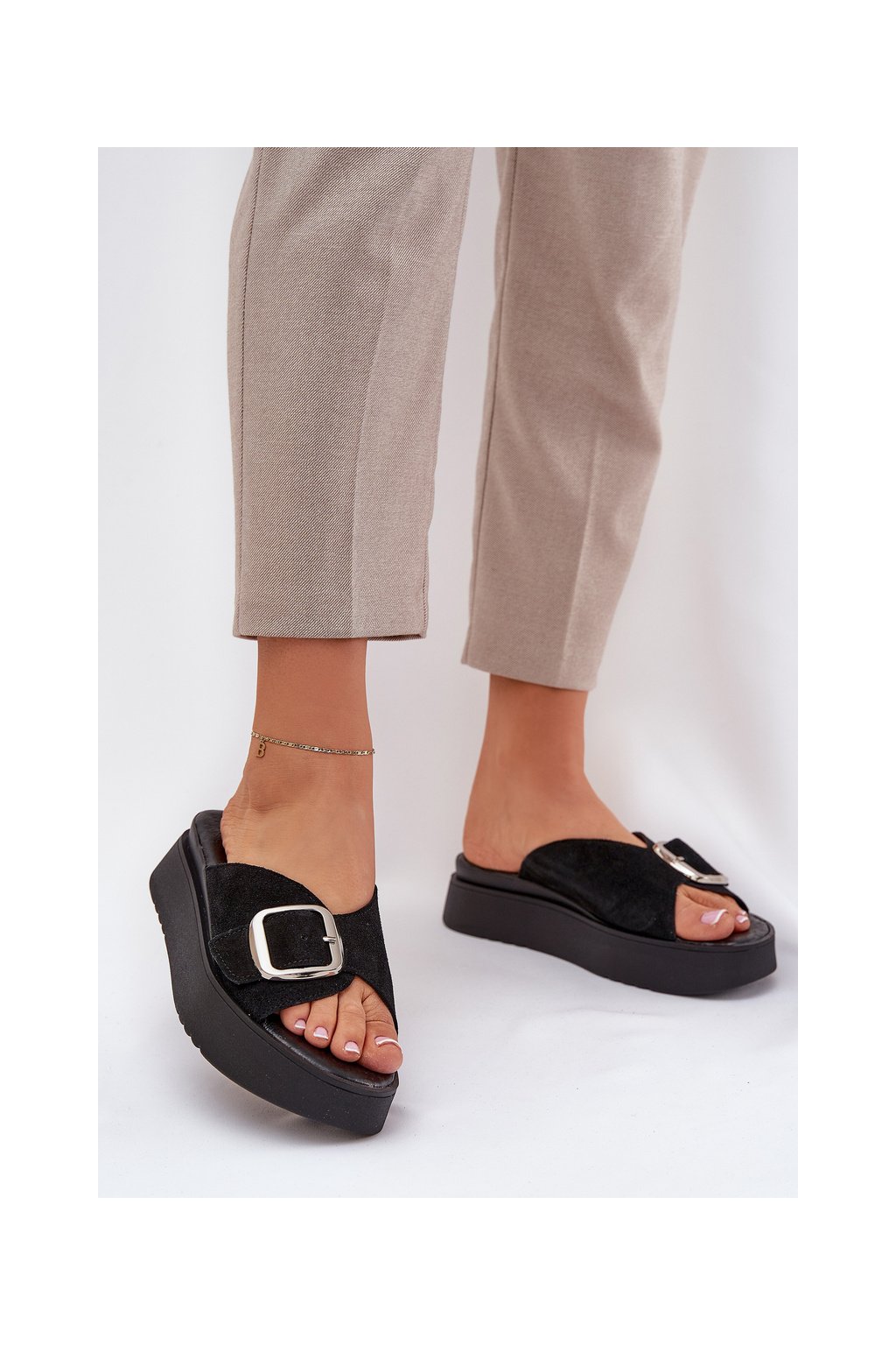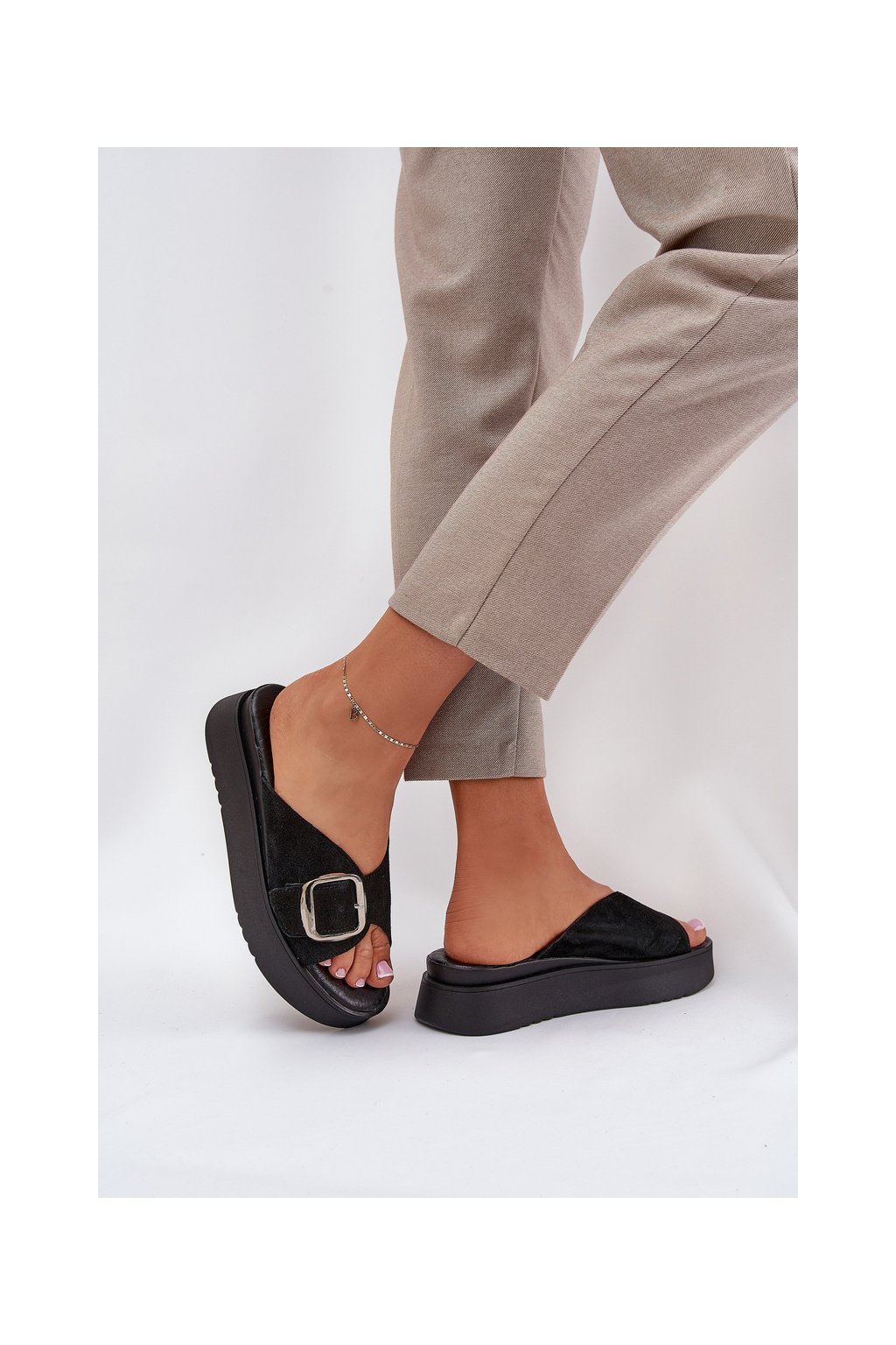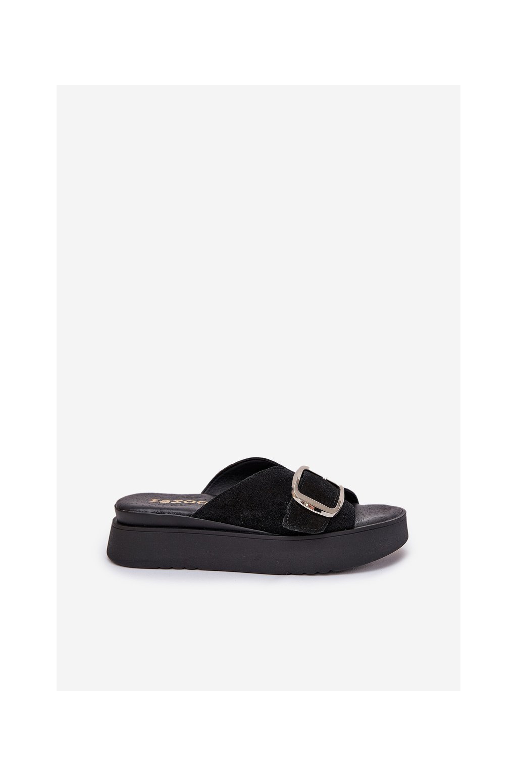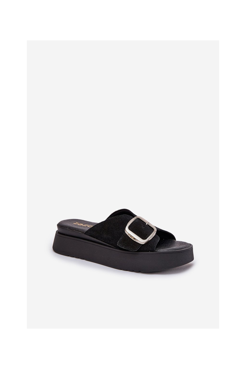 Dámske semišové papuče s remienkom na platforme čierne zazoo 3019 / 3019/028 (Veľkosť 36)