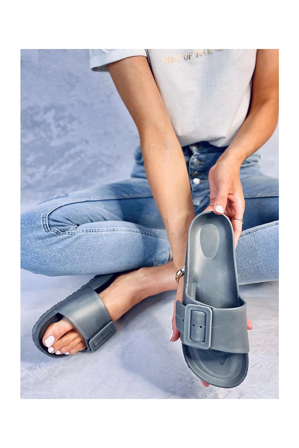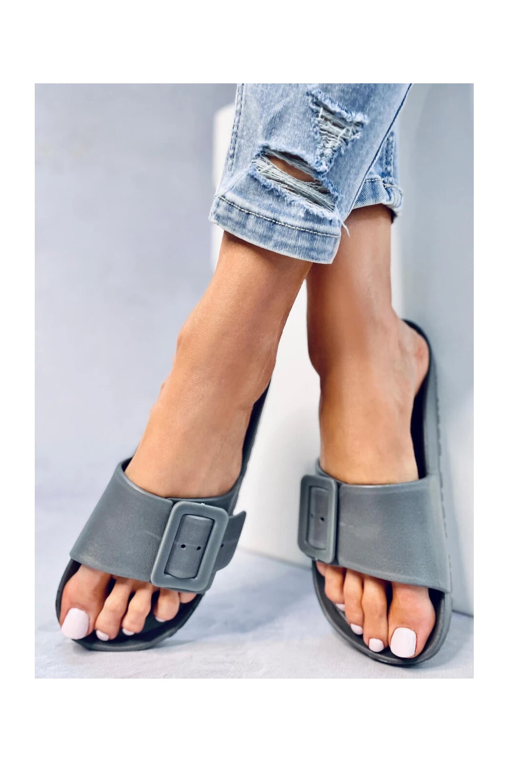 Dámske sivé gumové šľapky na bežný deň s otvorenou špičkou, hladké prevedenie, kód V2028