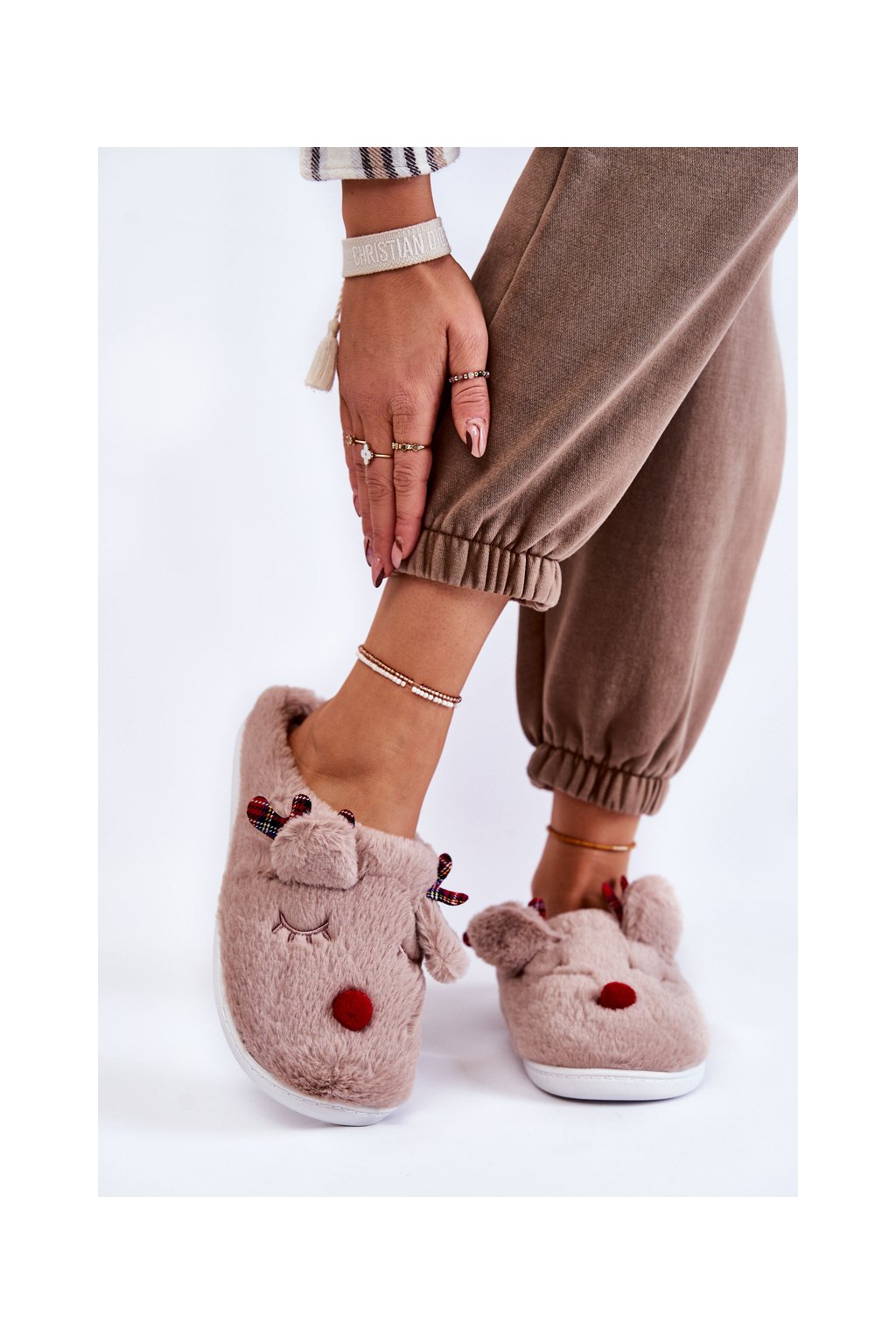 Dámské vánoční kožešinové papuče se sobí béžovou Claire (Veľkosť 36.5)