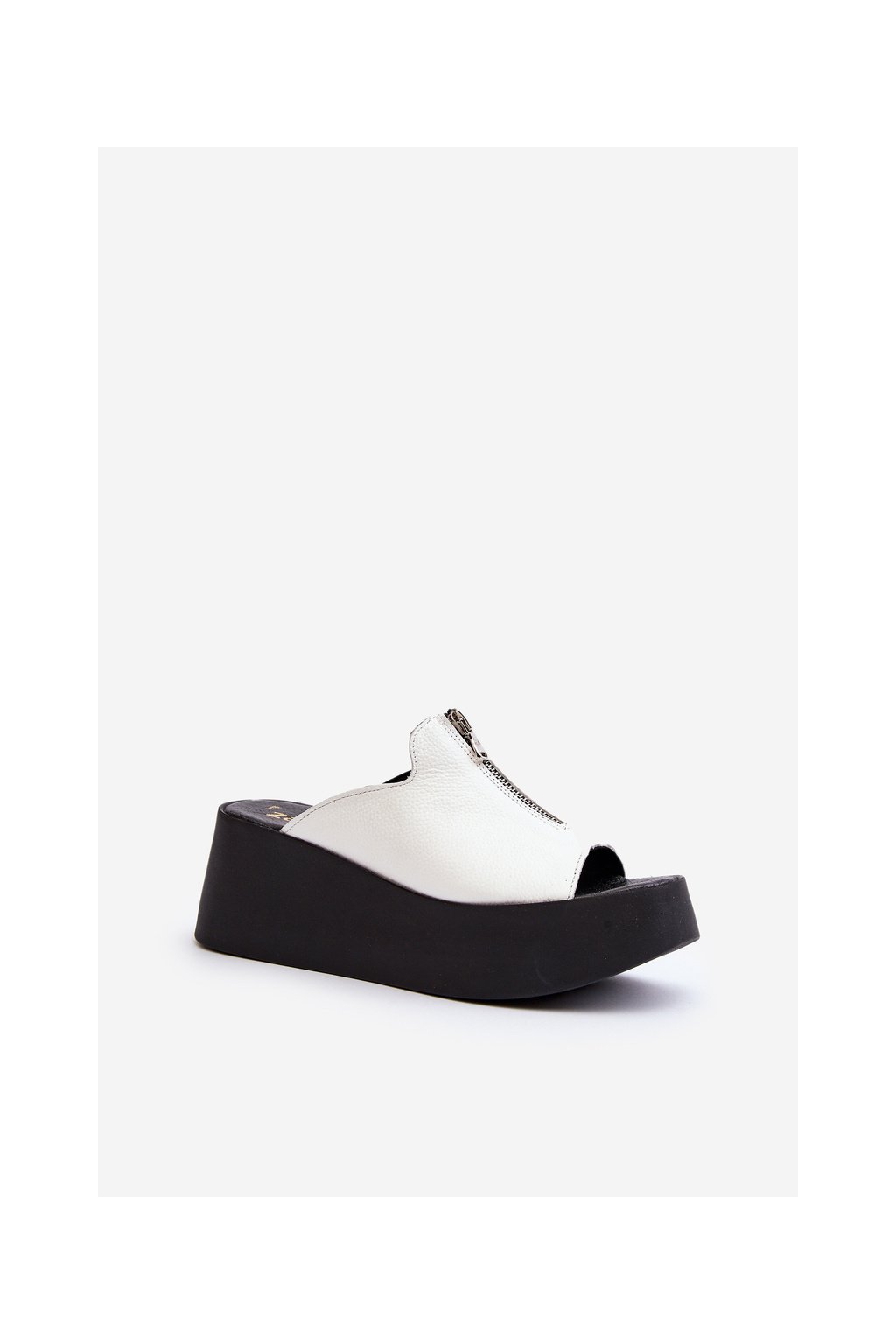 Zazoo 2916 Dámske žabky na masívnou platforme se zipsom biele / 2916/009