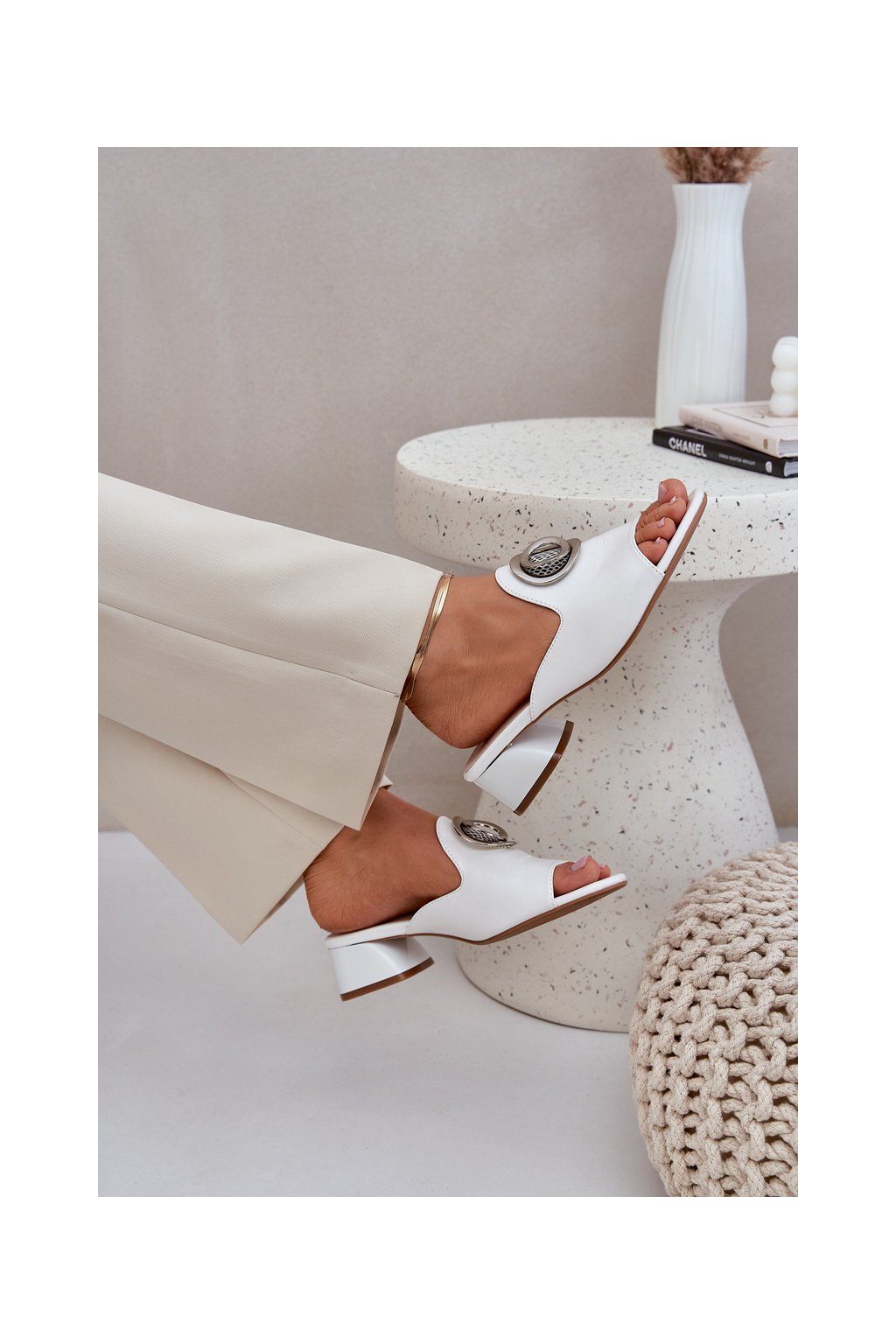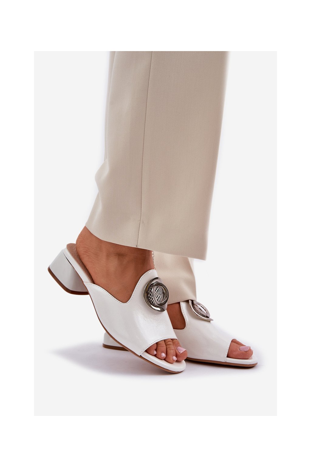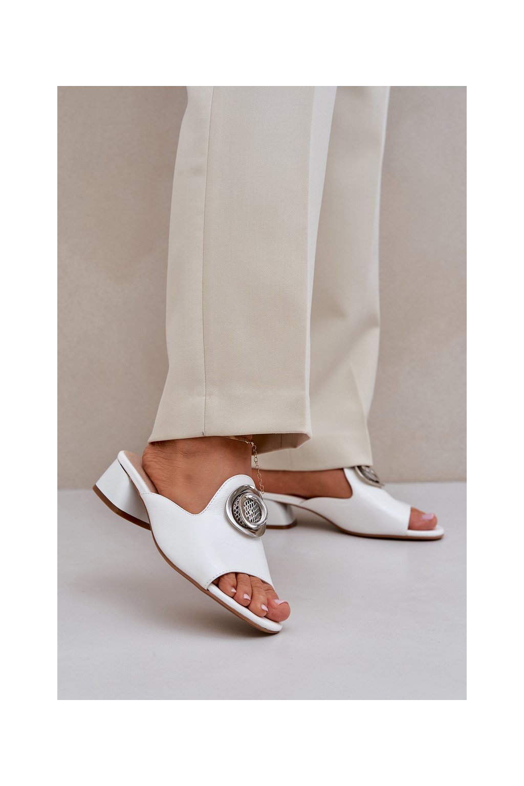 Biele dámske šľapky z ekokože na bloku, ASA214-1A BIAŁY