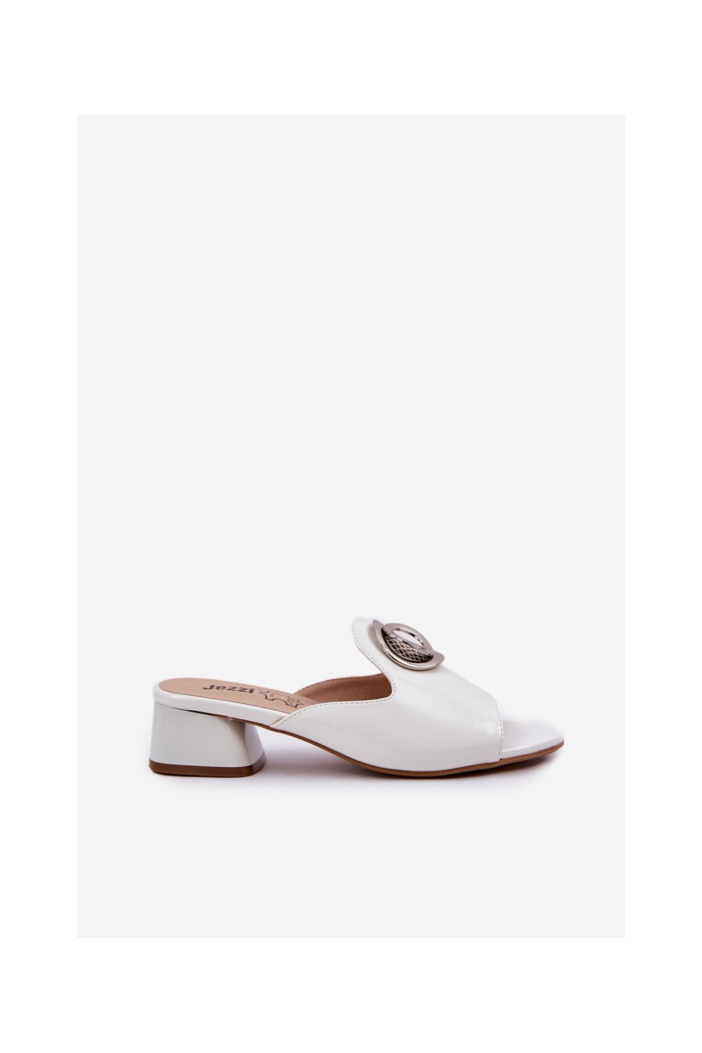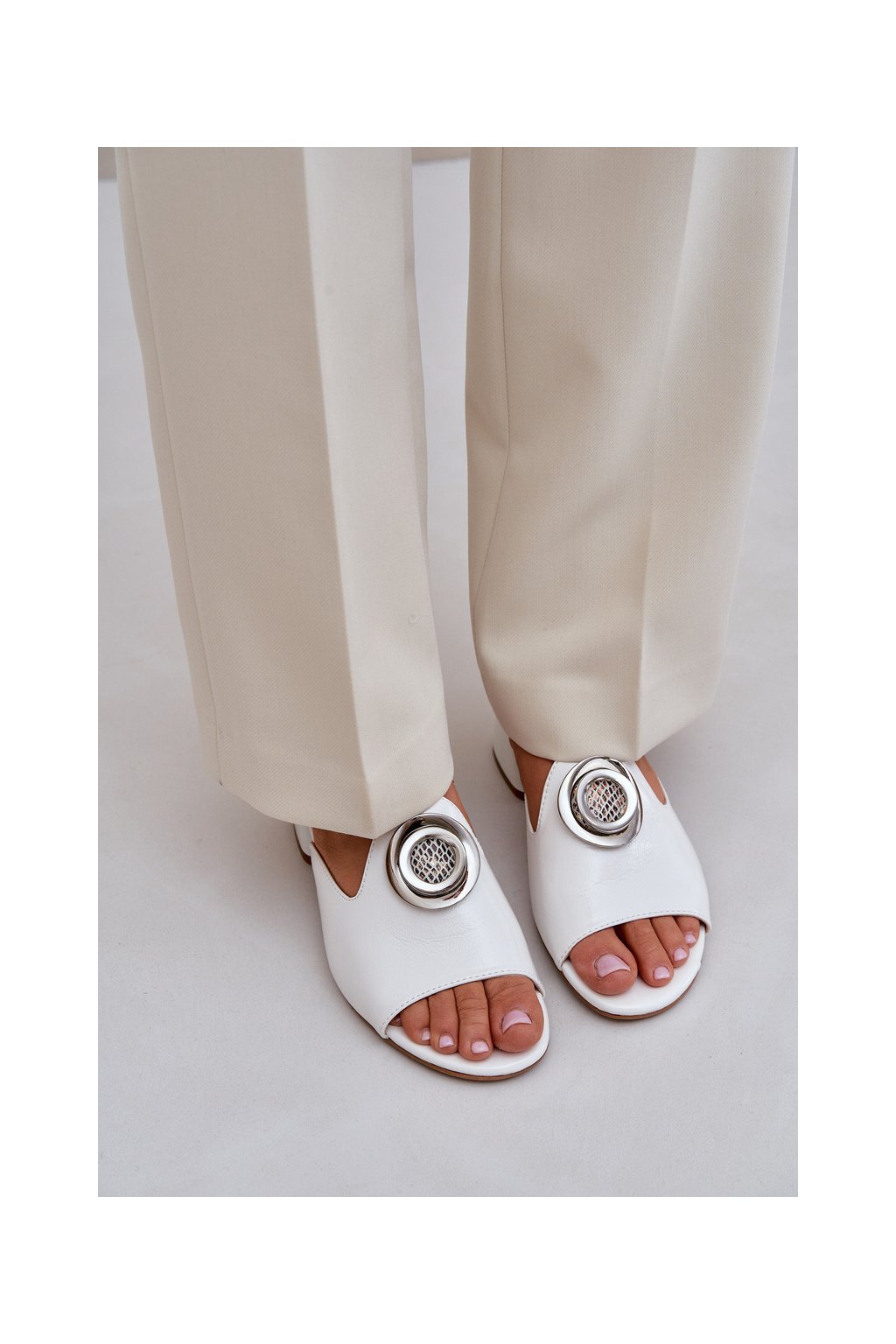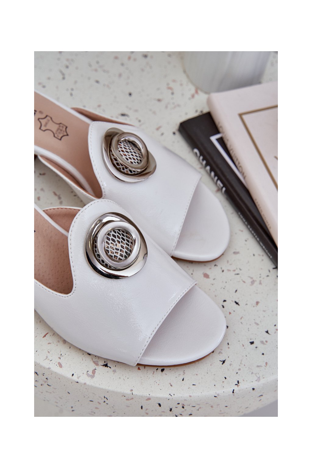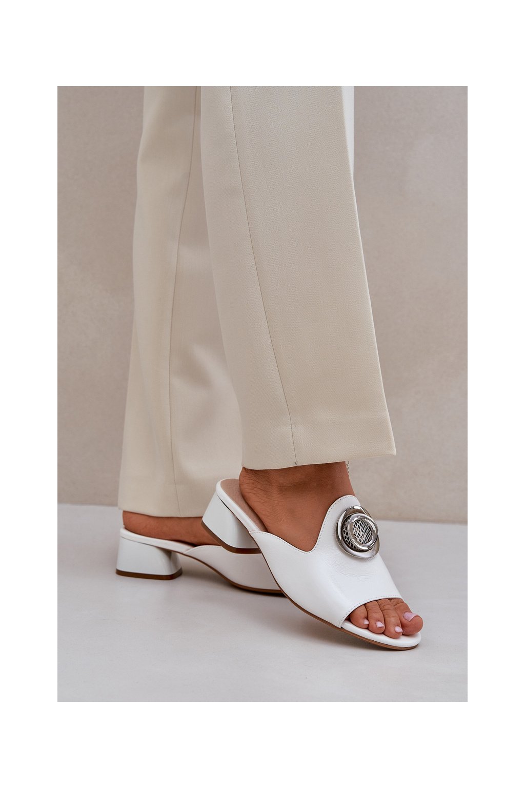 Biele dámske šľapky z ekokože na bloku, ASA214-1A BIAŁY
