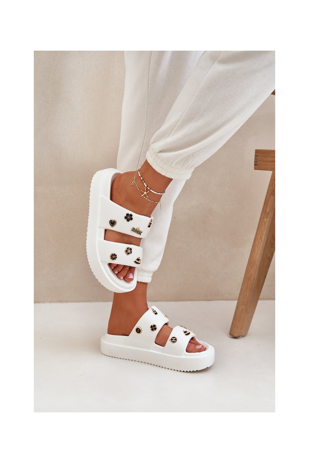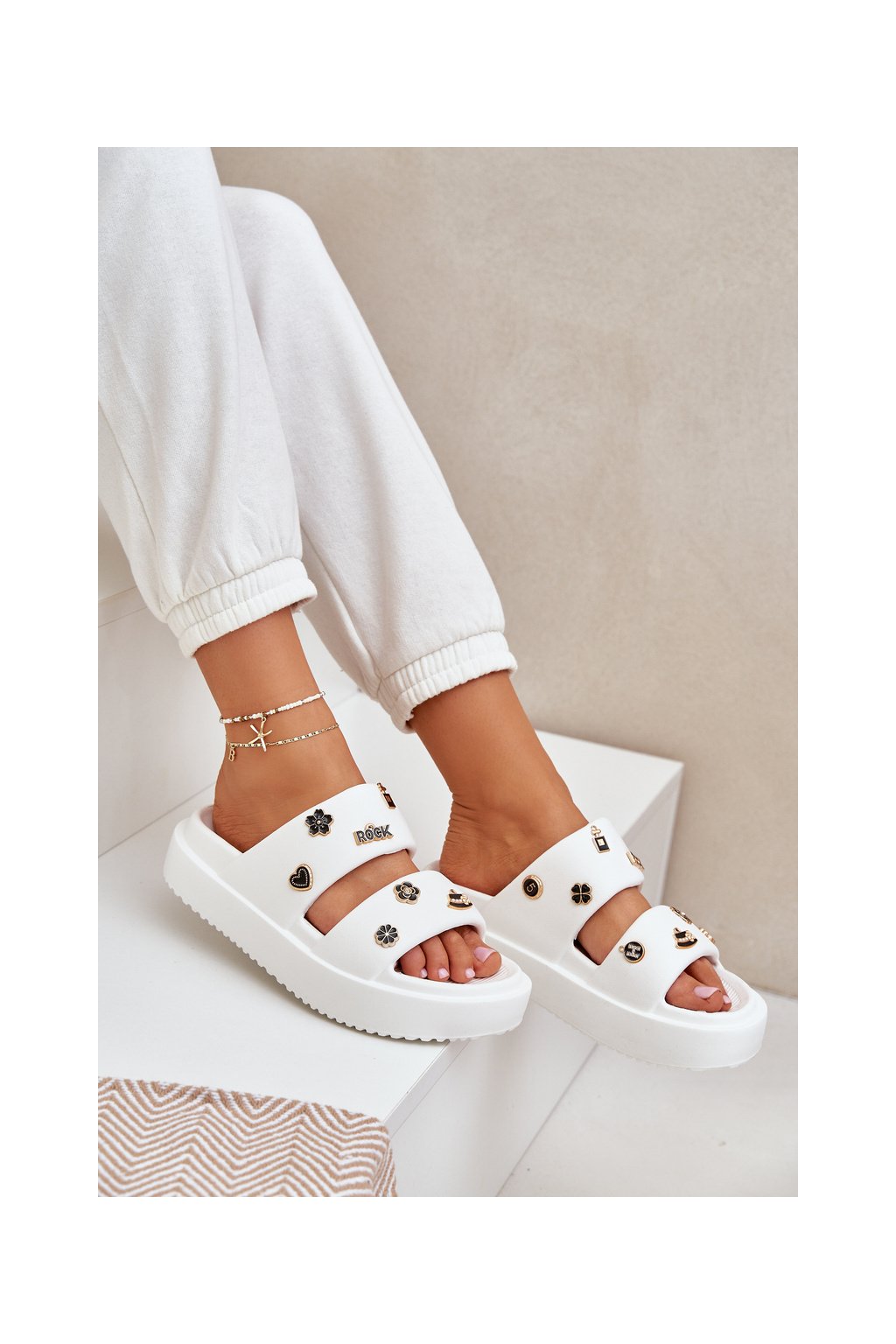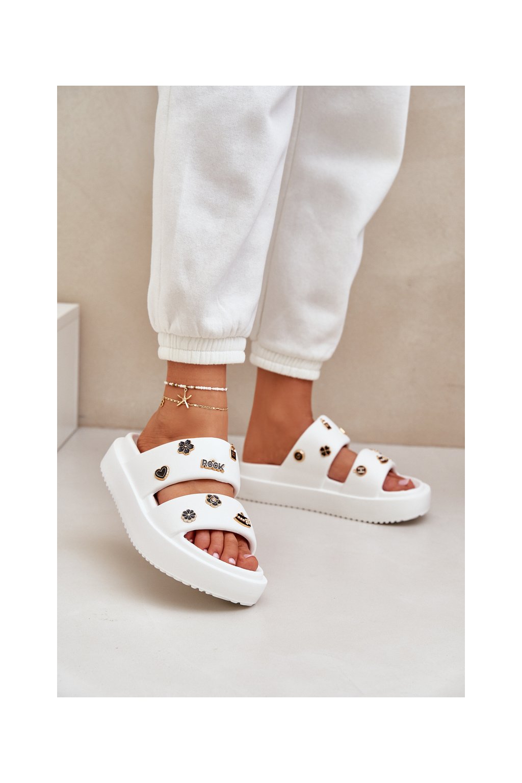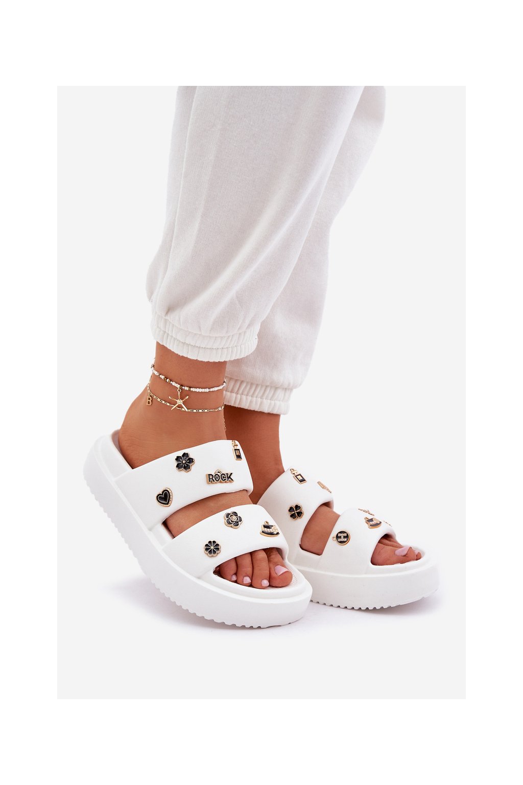 Dámske šľapky z peny biele, rovná podrážka, BG196 WHITE