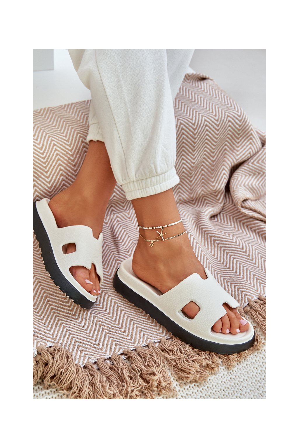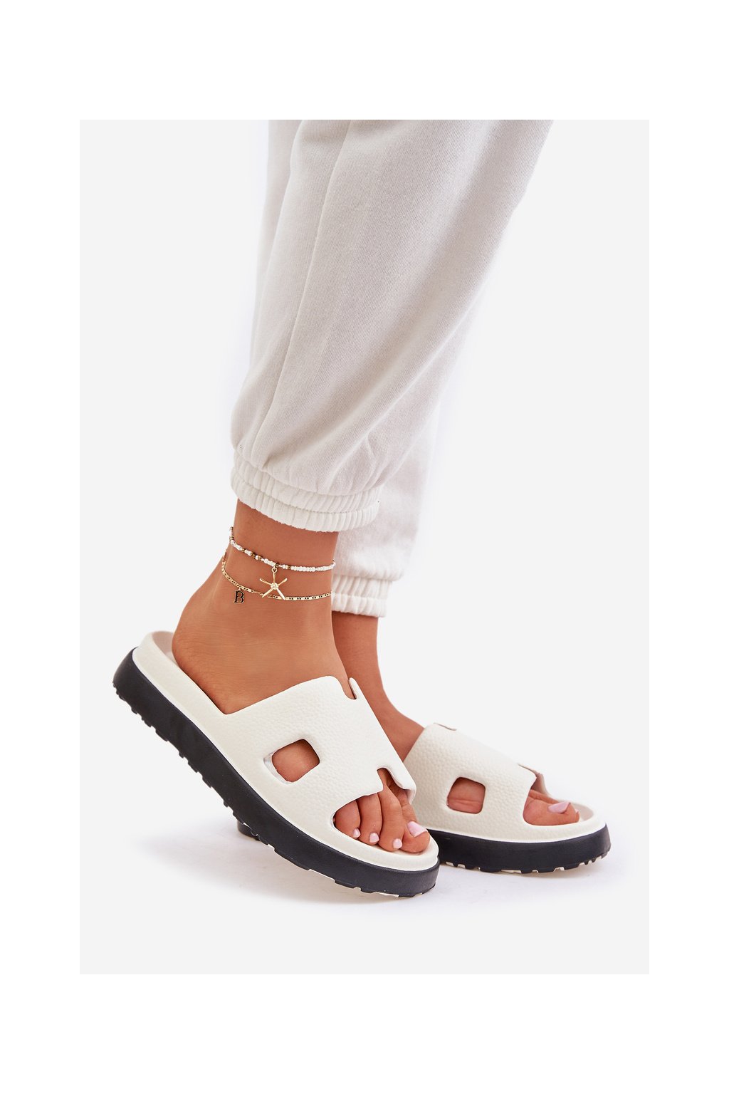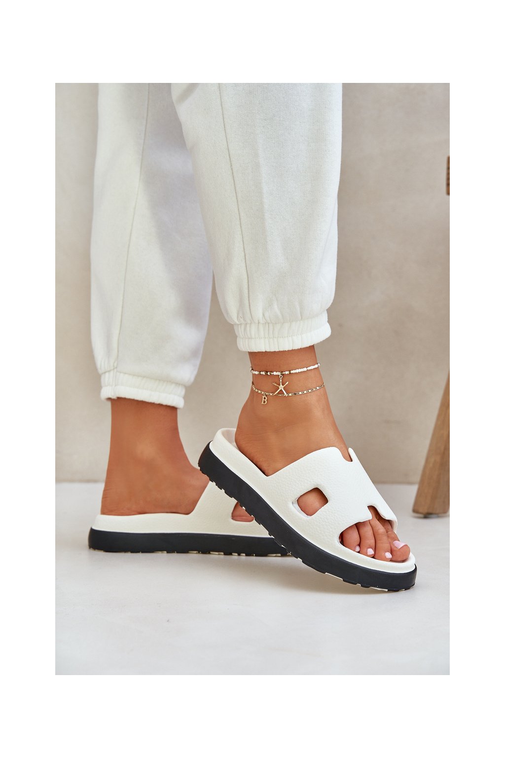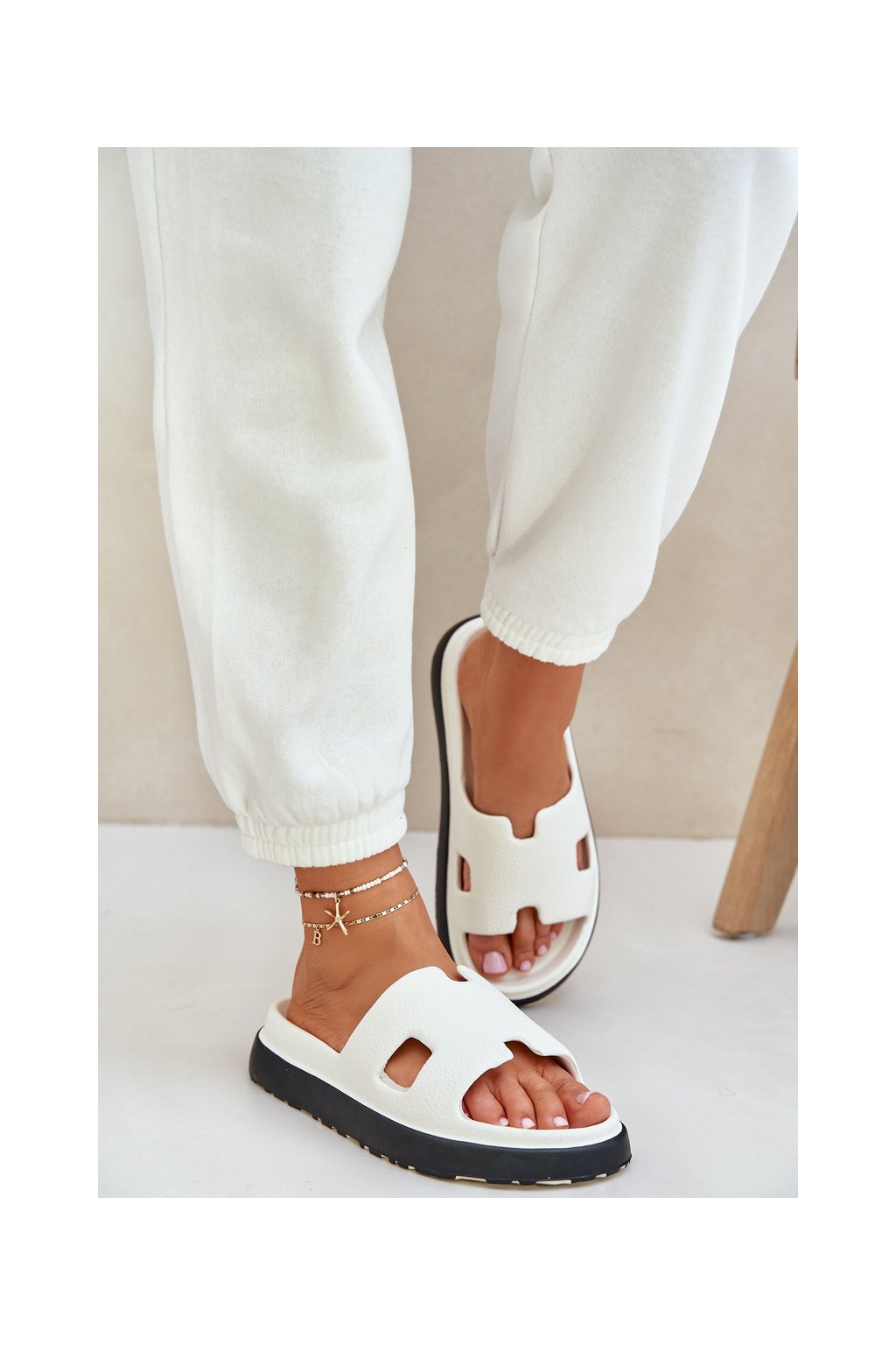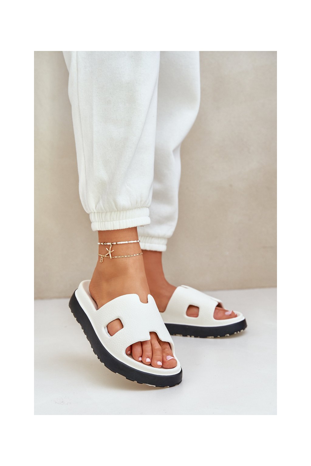 Biele dámske penové šľapky na plošom podpätku, kód BG198 WHITE