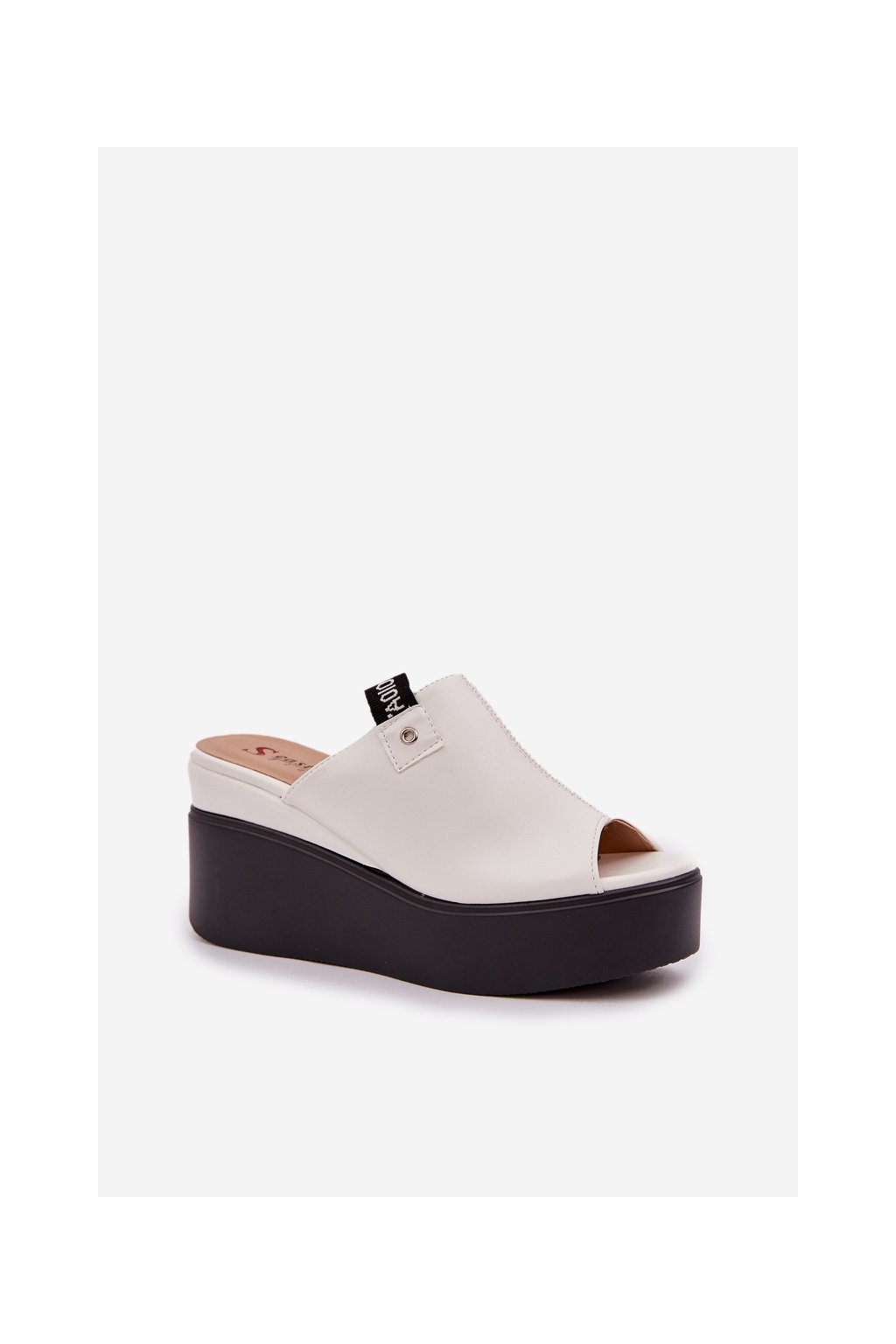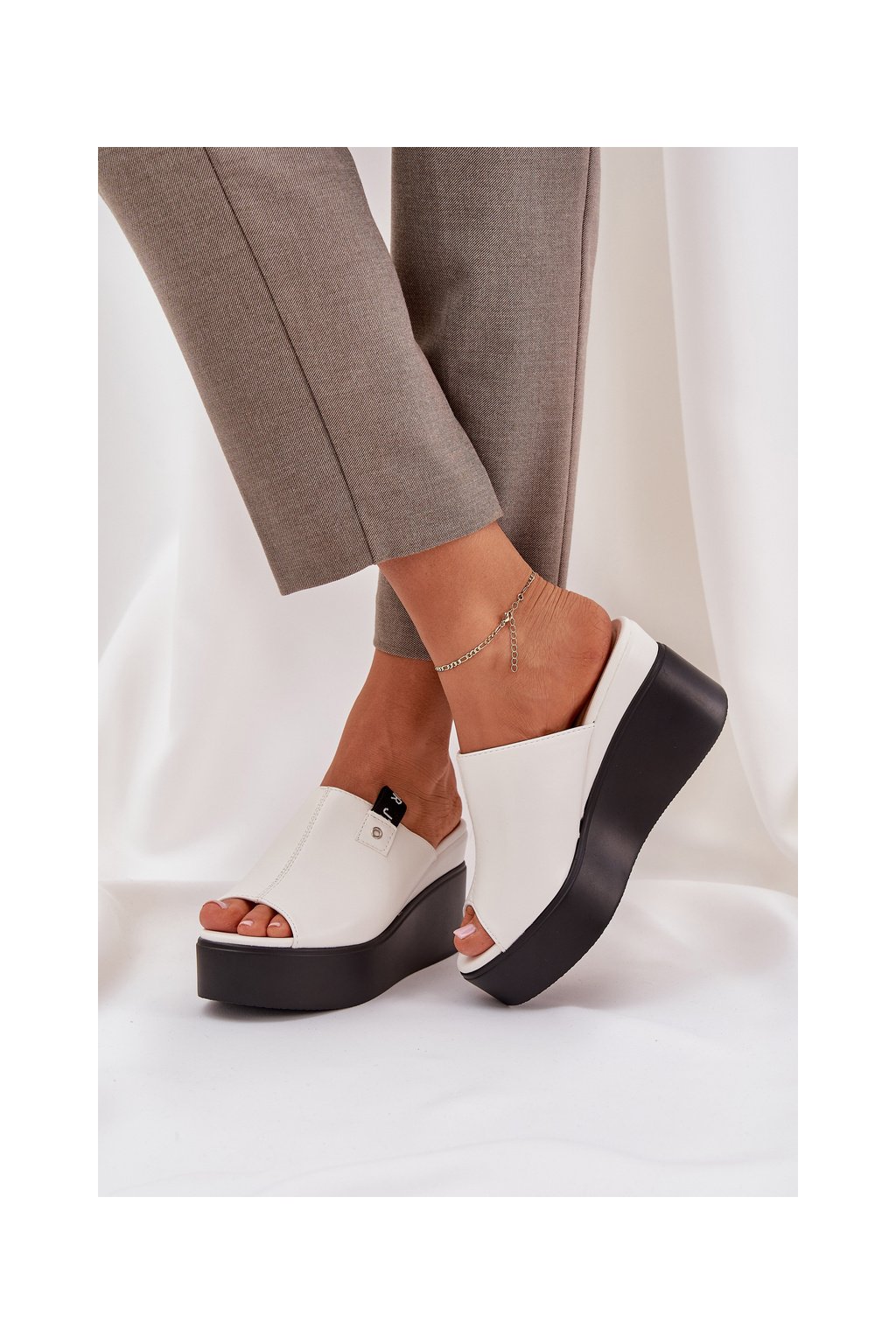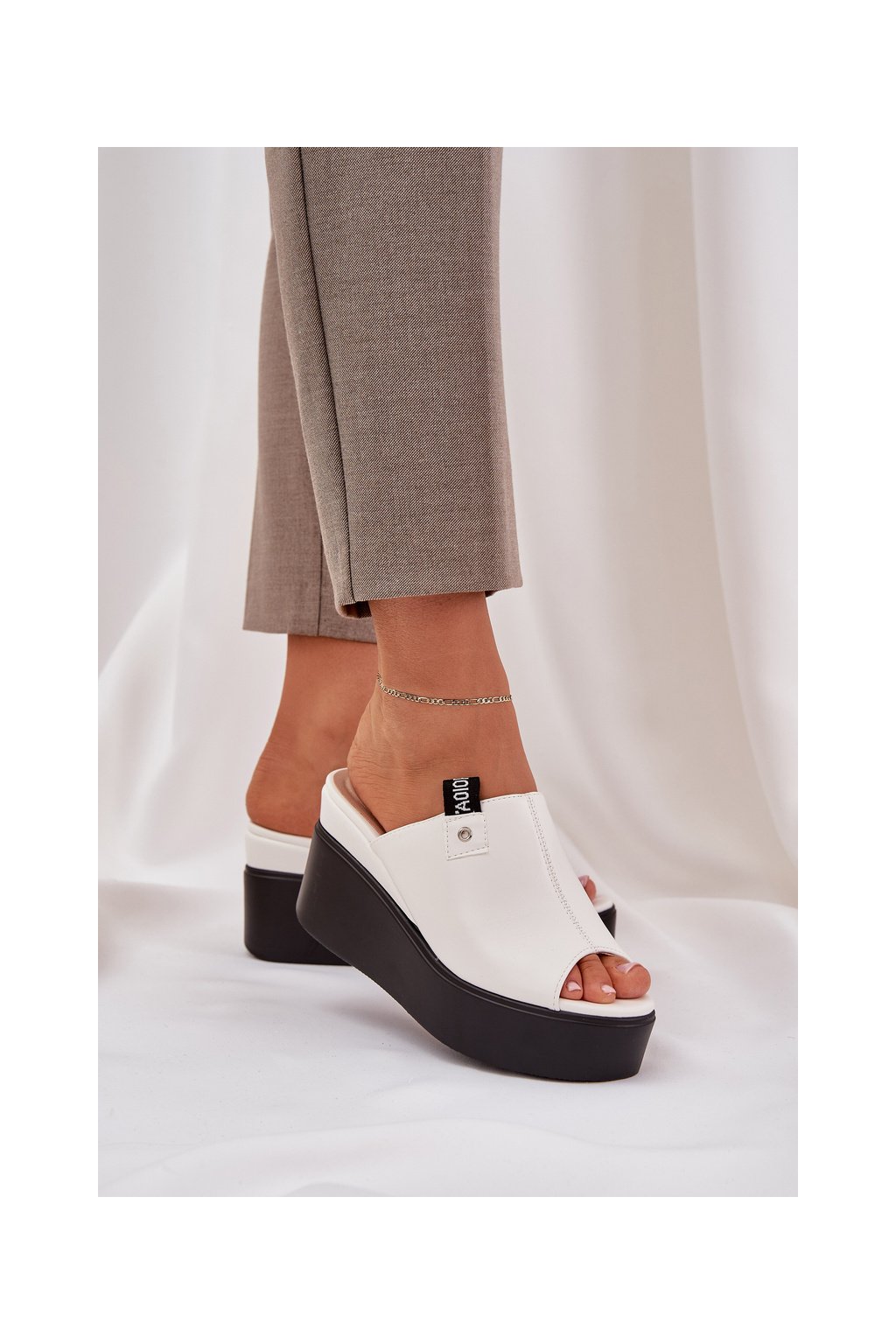 Dámske šľapky na platforme z ekokože biele EK05P WHITE
