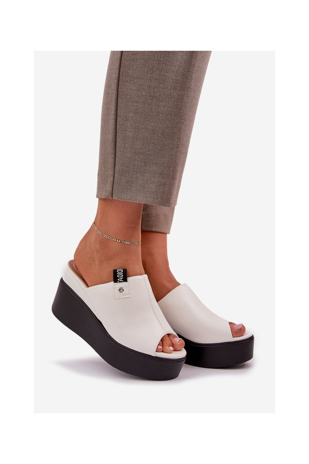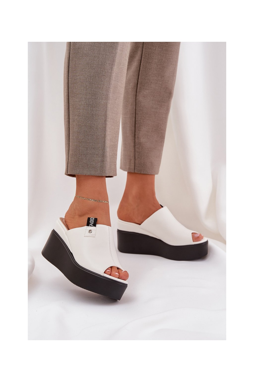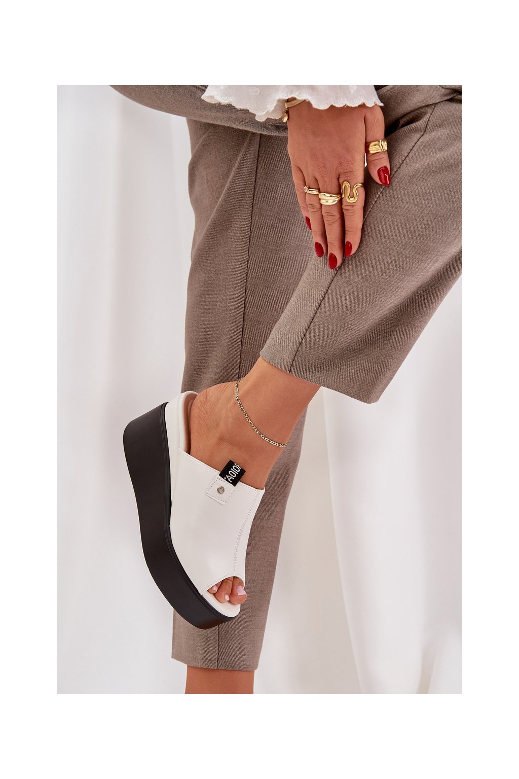 Dámske šľapky na platforme z ekokože biele EK05P WHITE