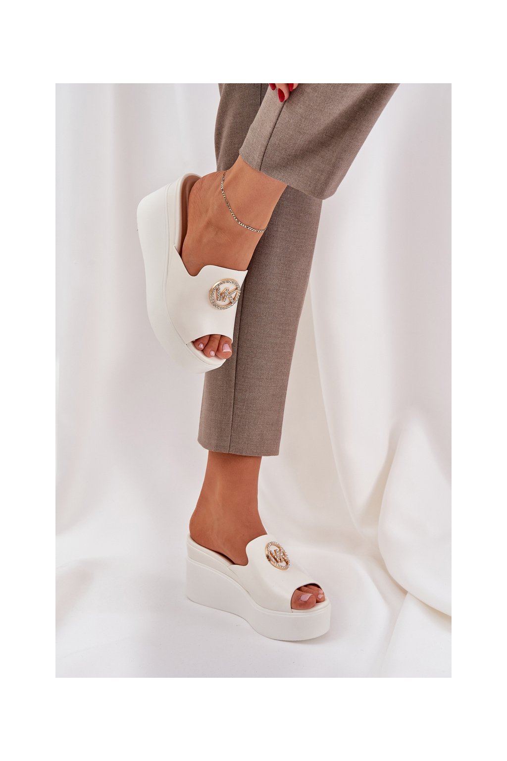 Biele dámske šľapky z ekokože na platforme, kód EK20P WHITE