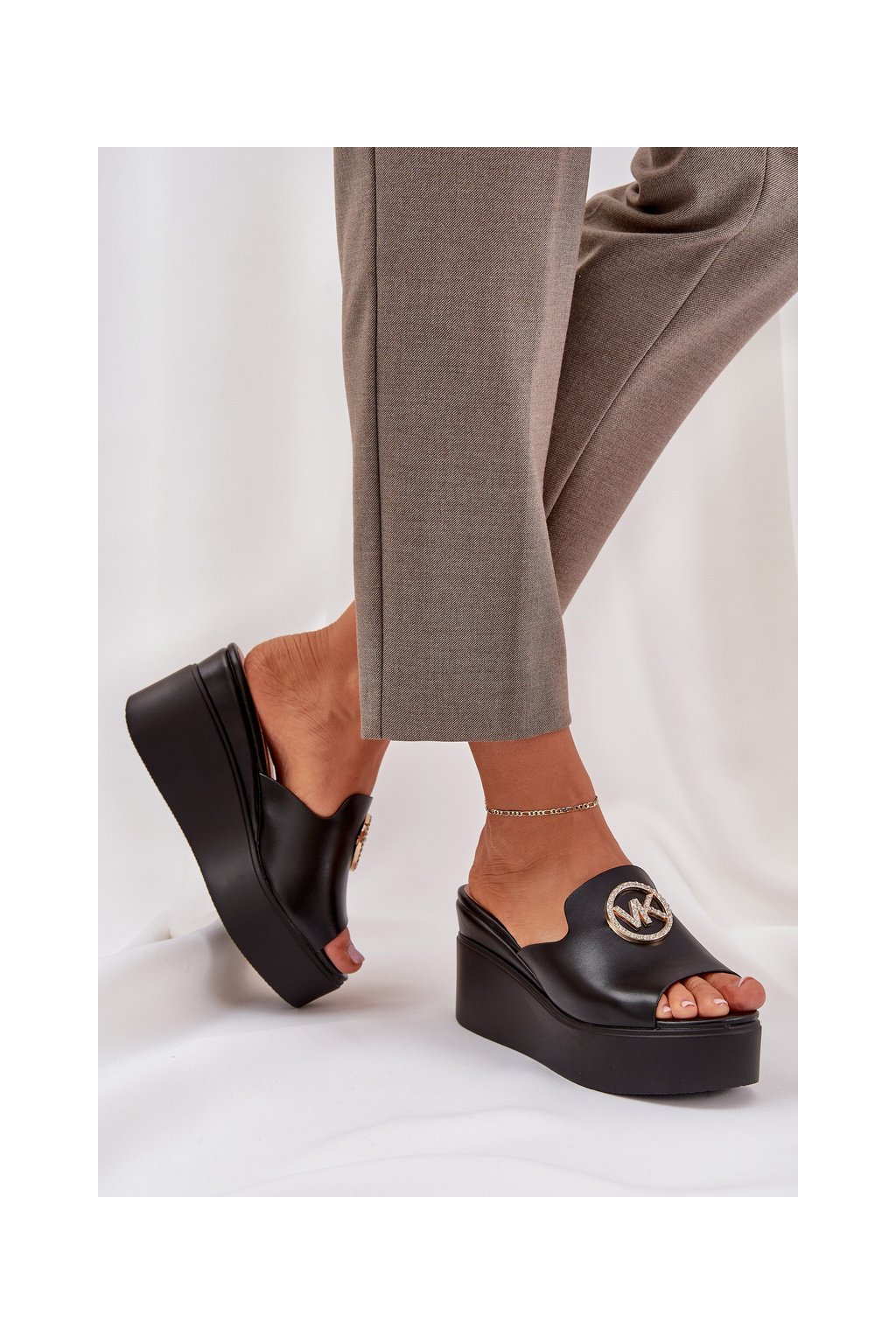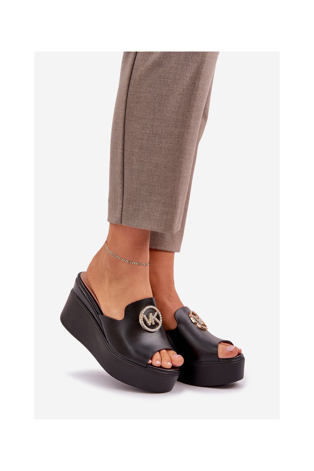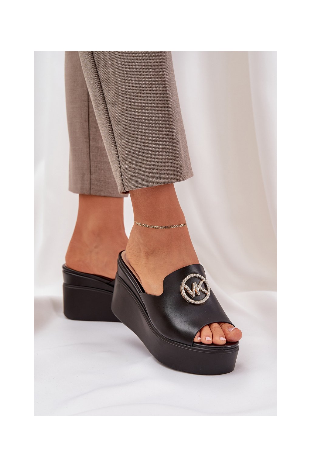 Dámske čierne šľapky na platforme a klínku z ekokože, EK20P ALL BLACK