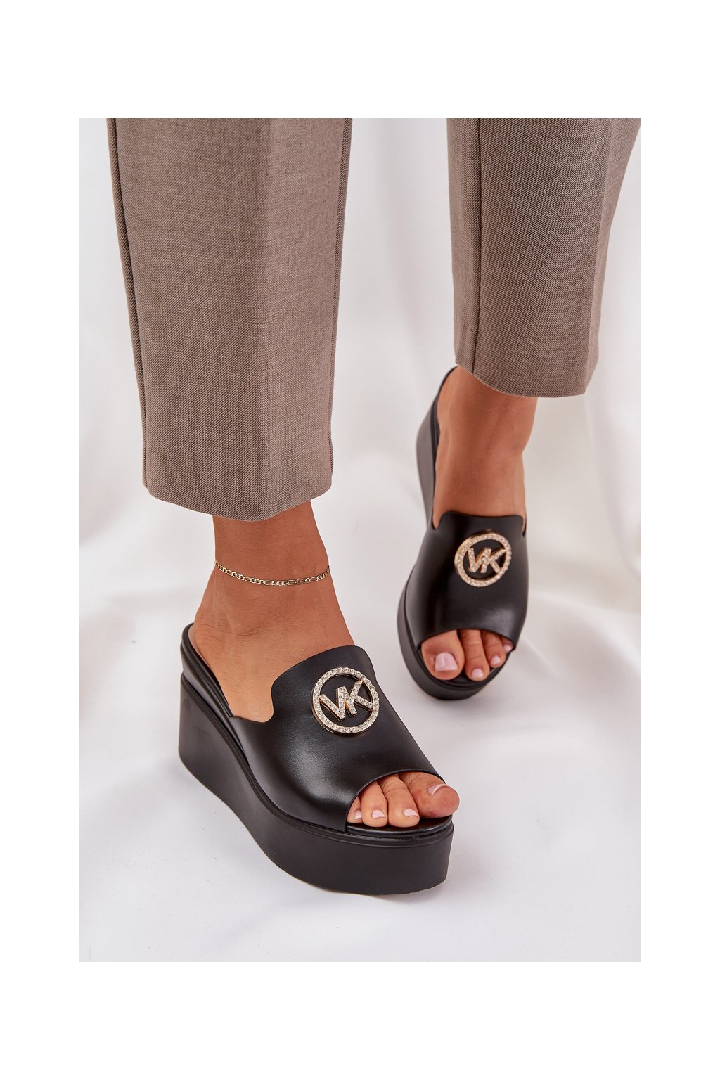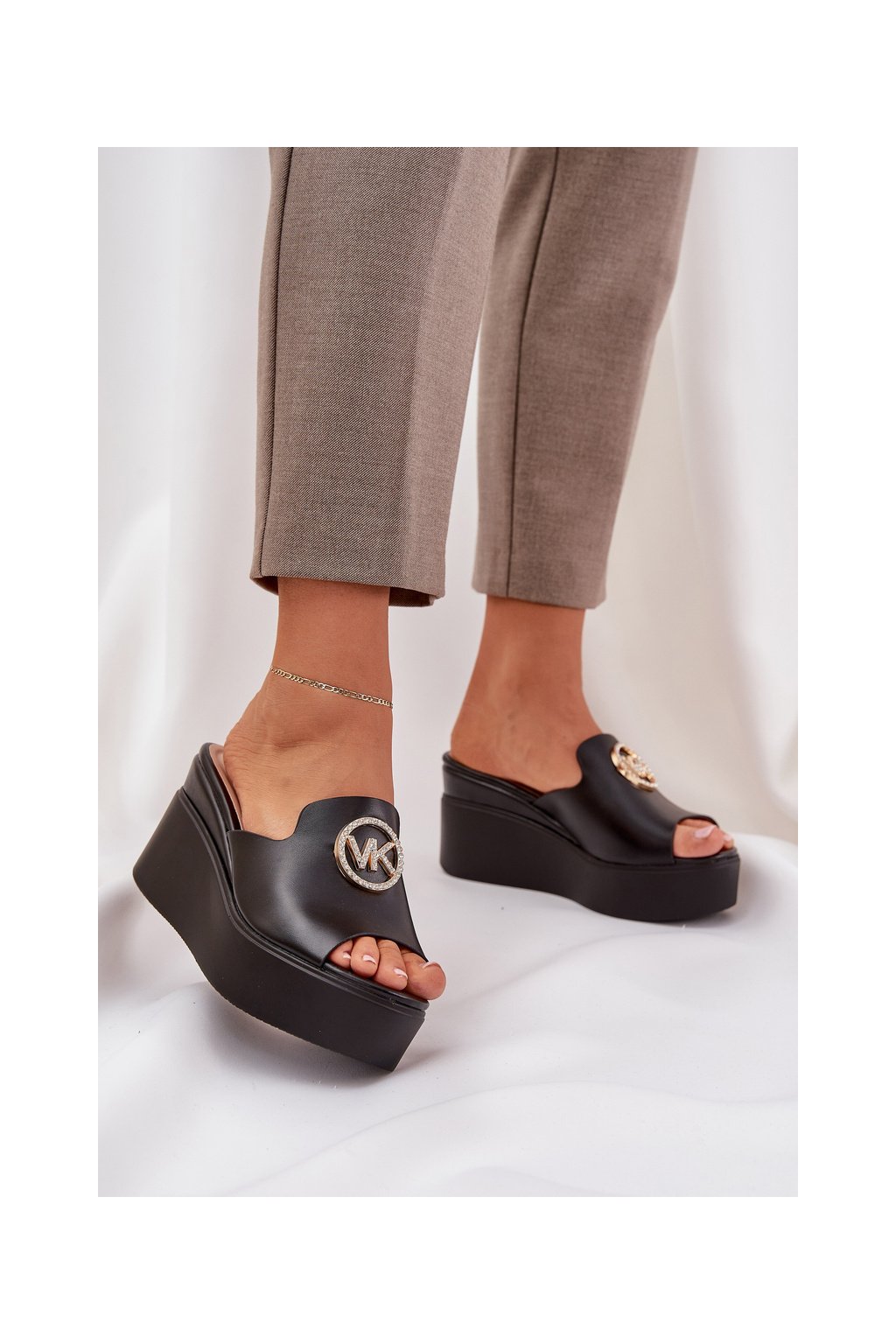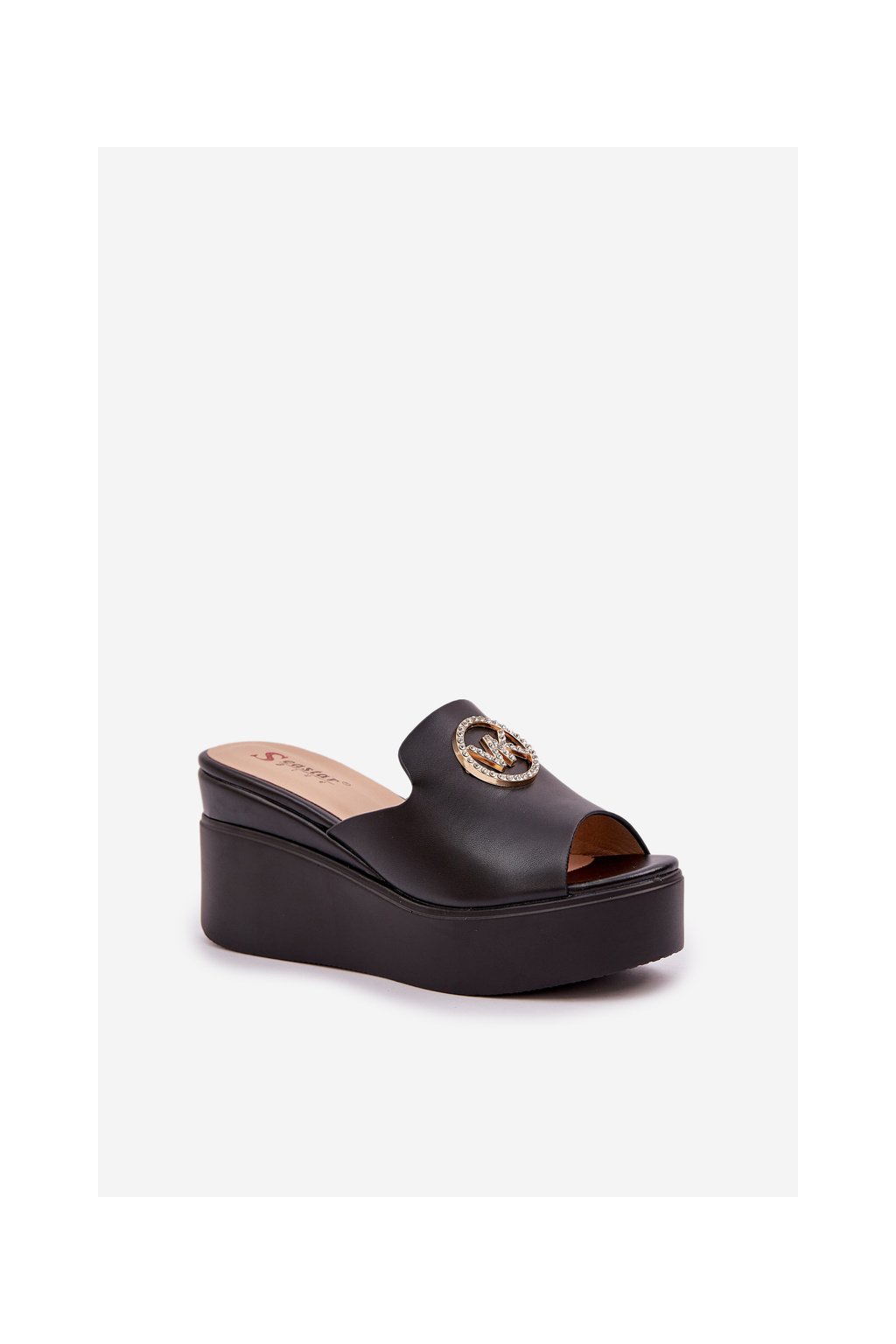 Dámske čierne šľapky na platforme a klínku z ekokože, EK20P ALL BLACK