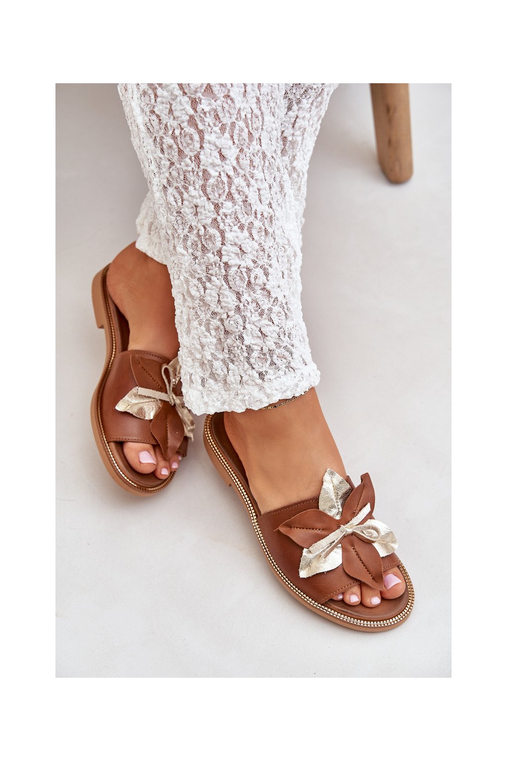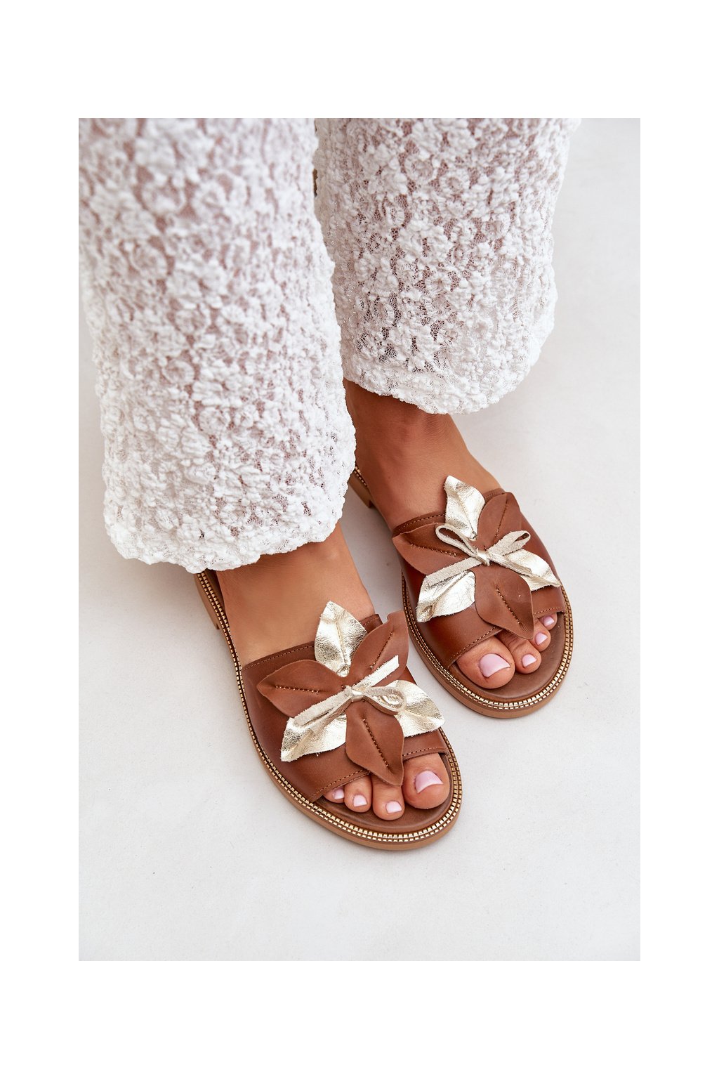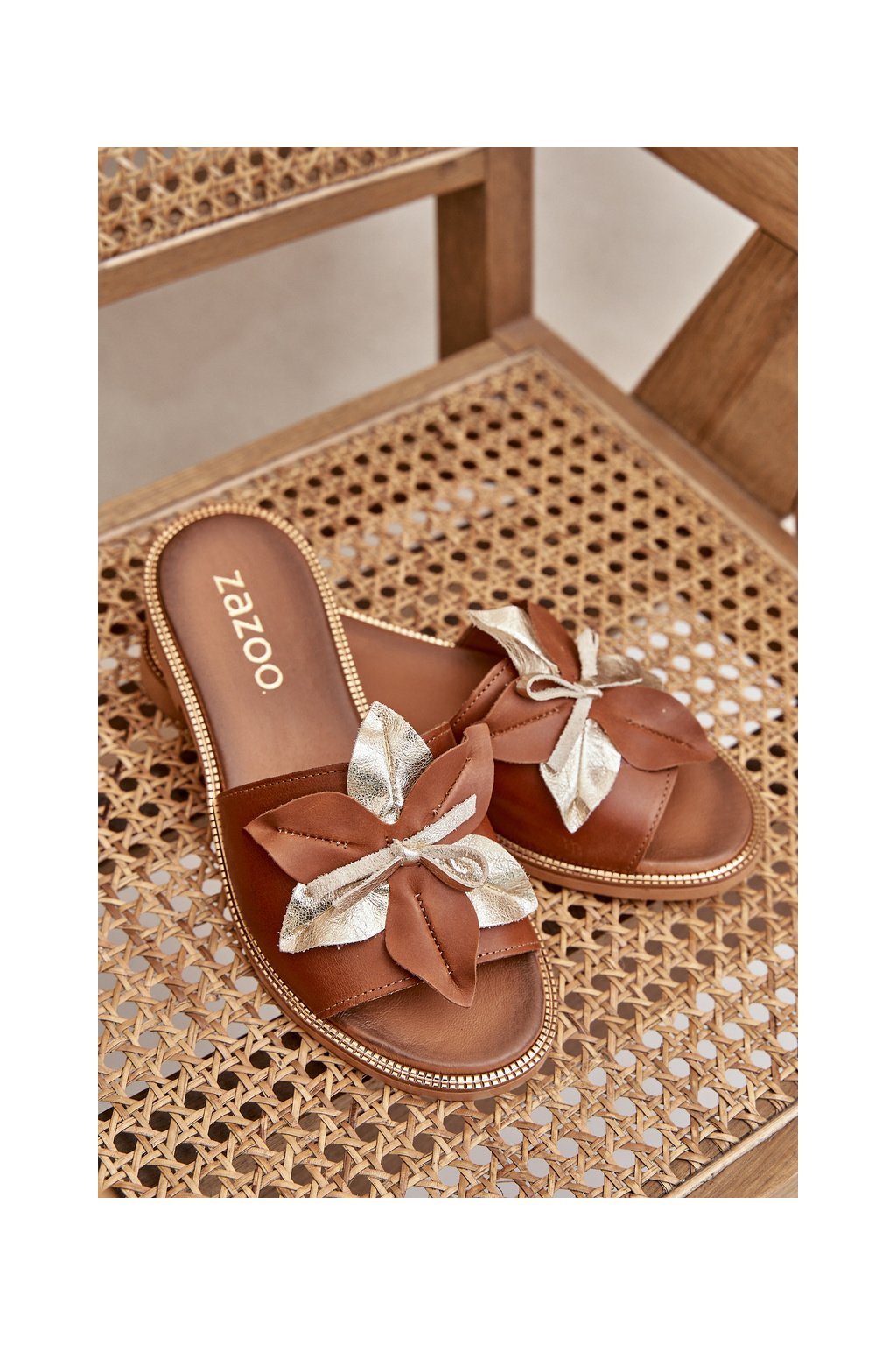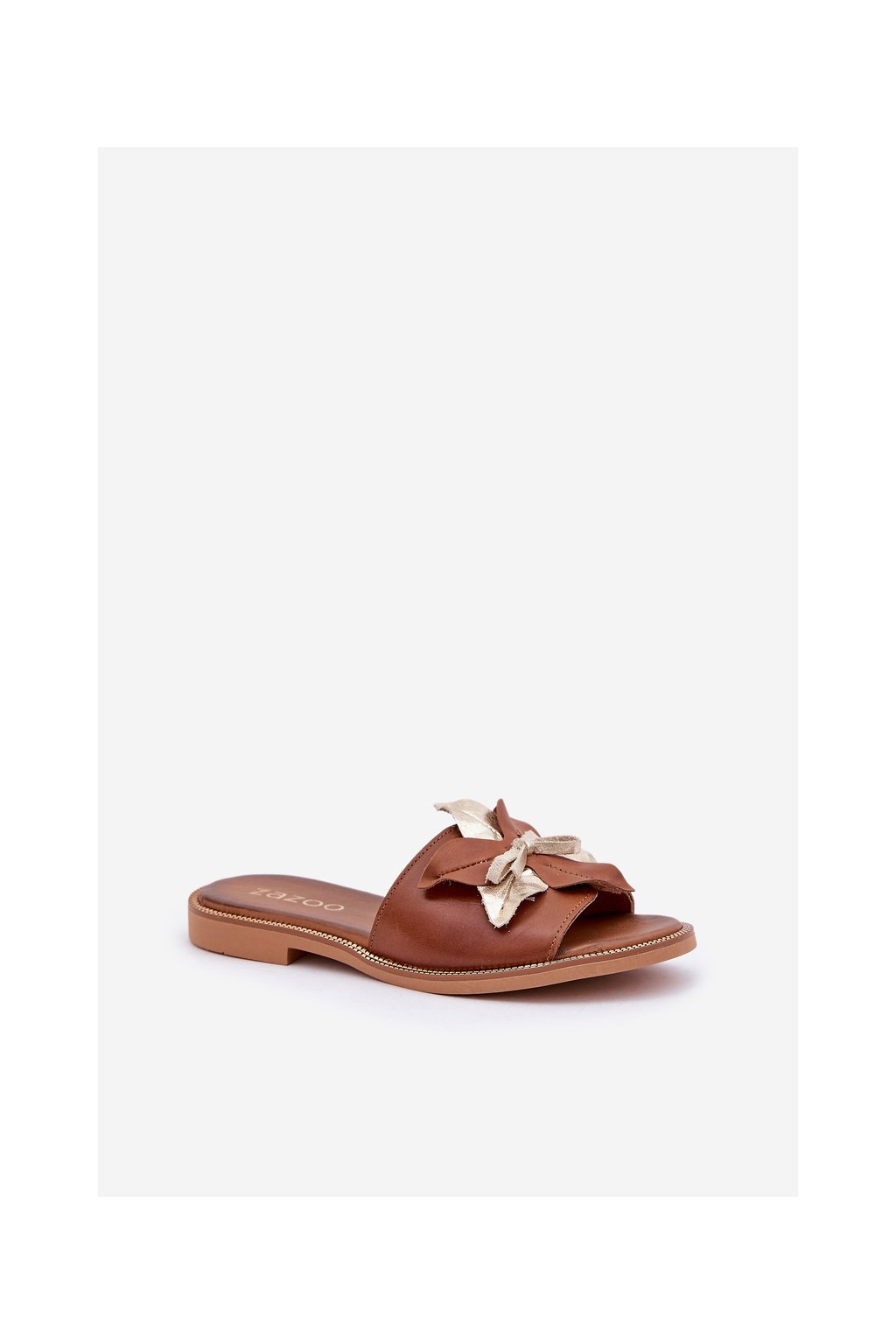 Papuče s dekorací přírodní koža zazoo 3574/z camel / 3574/Z CAMEL PRZEC (Veľkosť 36)