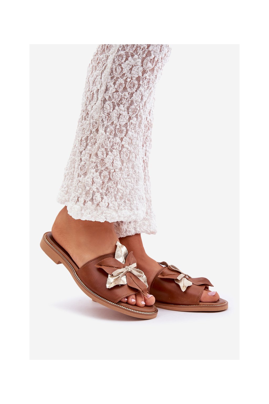 Dámske hnedé šľapky z prírodnej kože, kód 3574/Z CAMEL PRZEC