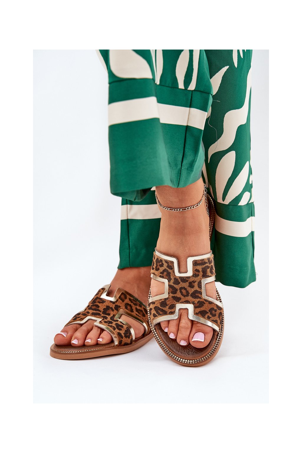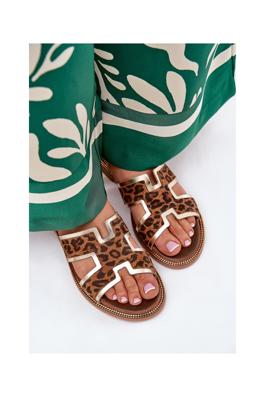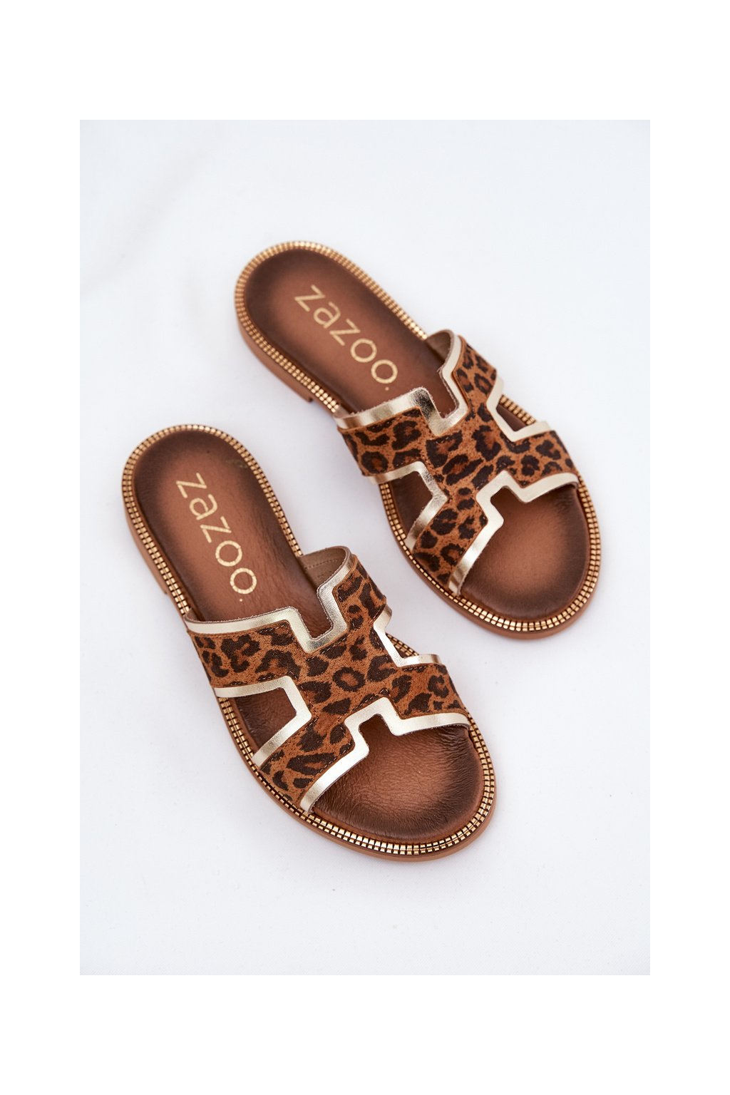 Dámske hnedé šľapky z prírodnej kože, kód 40383 BF.ZŁ+LAMP BR