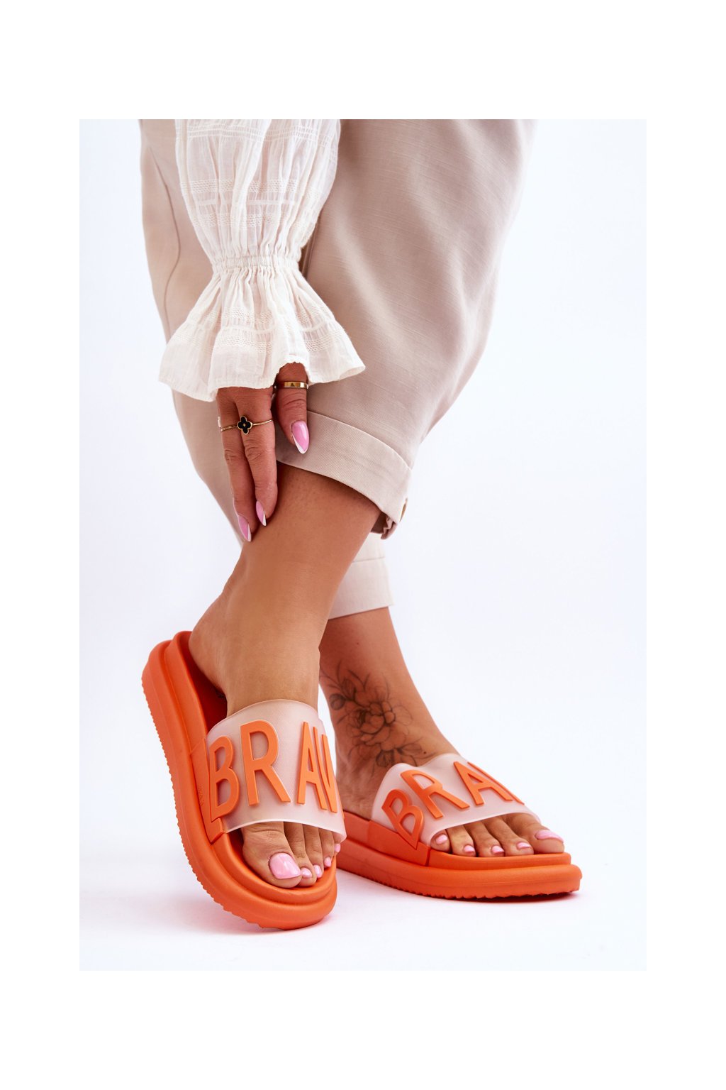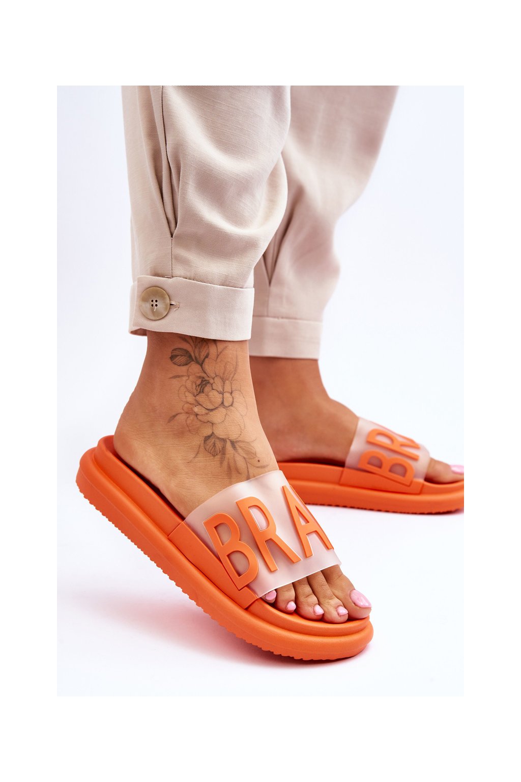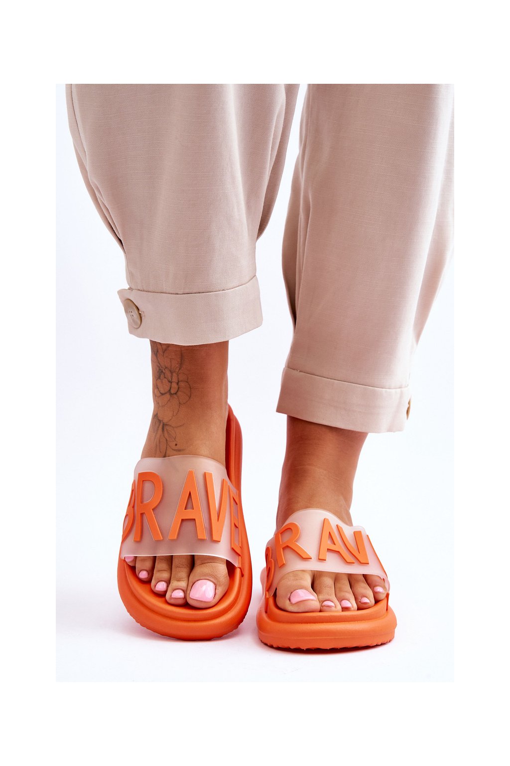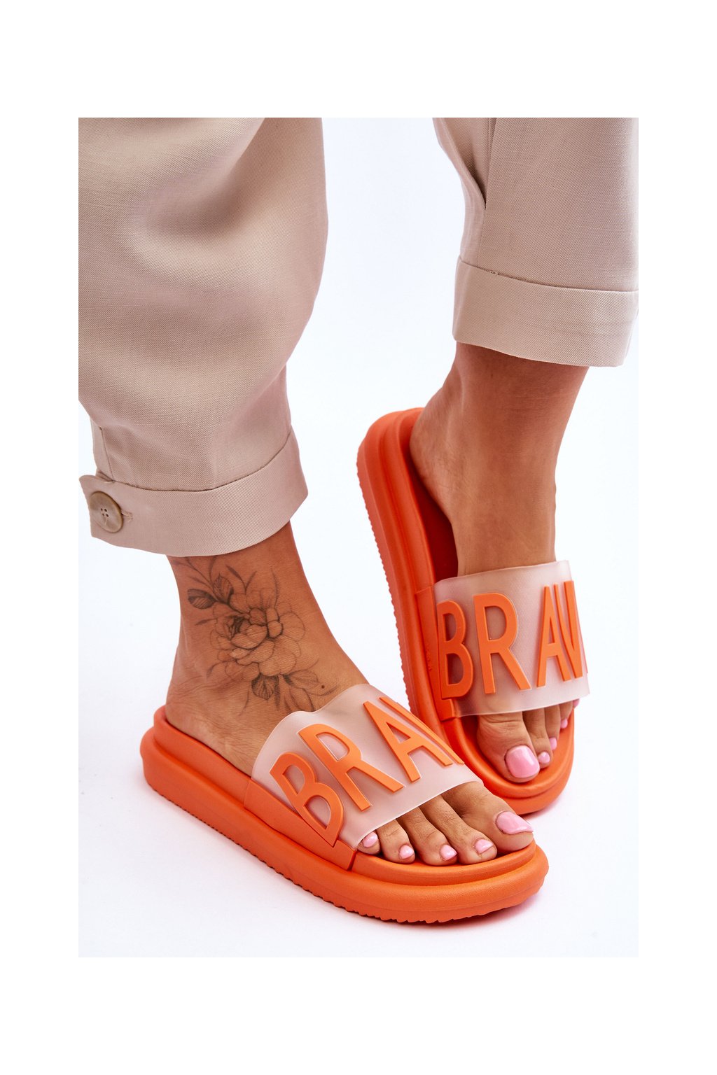Dámske papuče na platforme orange brave / 23-30178 POMARAŃCZ