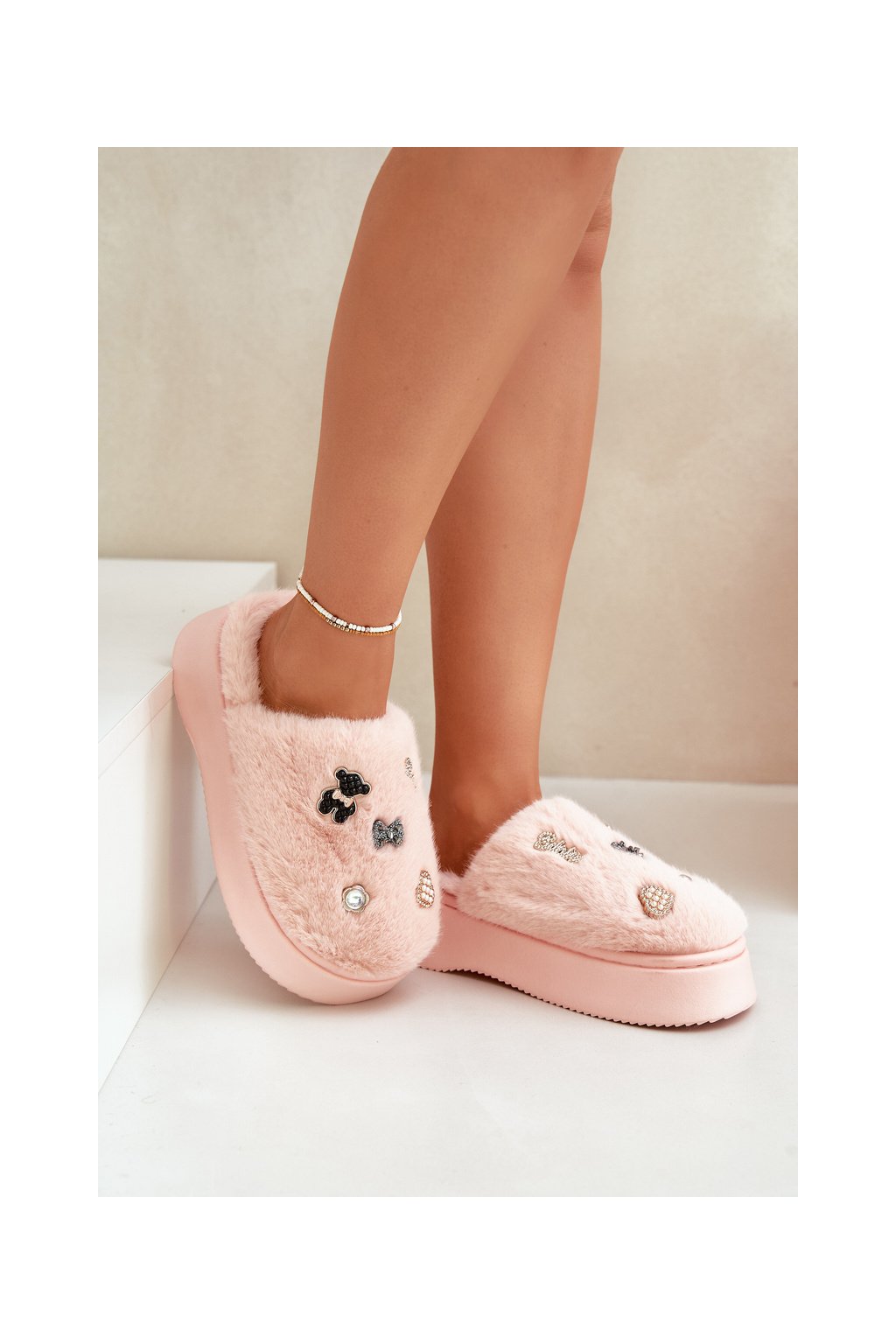 Ružové dámske papuče s hrubou kožušinou na rovnej podrážke, kód produktu FA-225 PINK