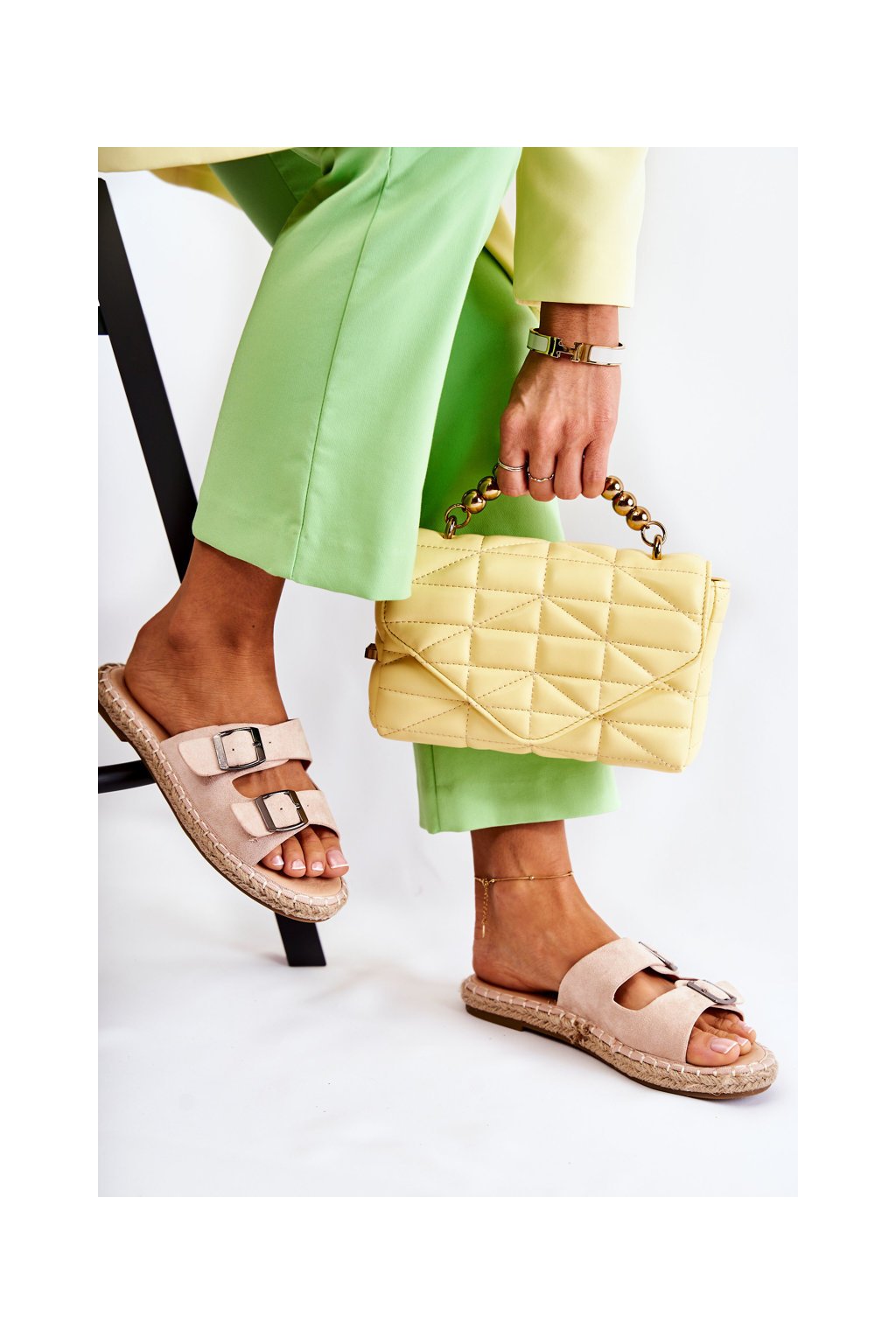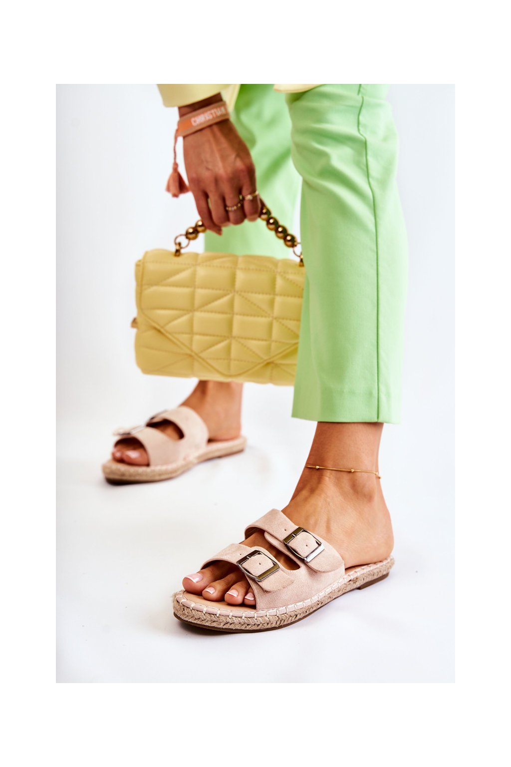 Dámske šľapky béžové kód obuvi 77-249 NUDE